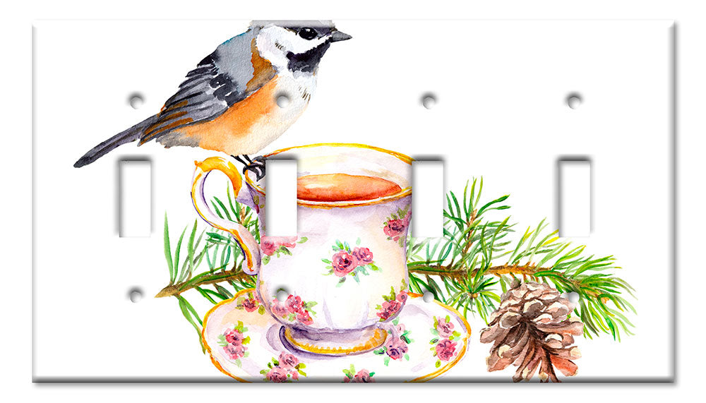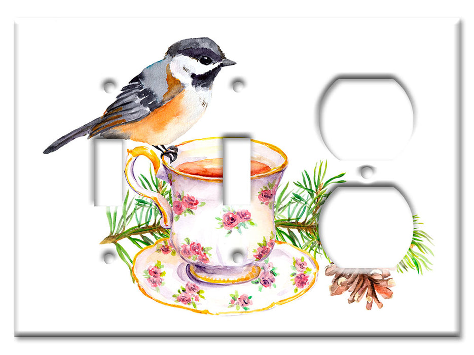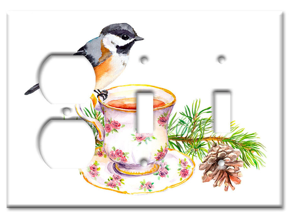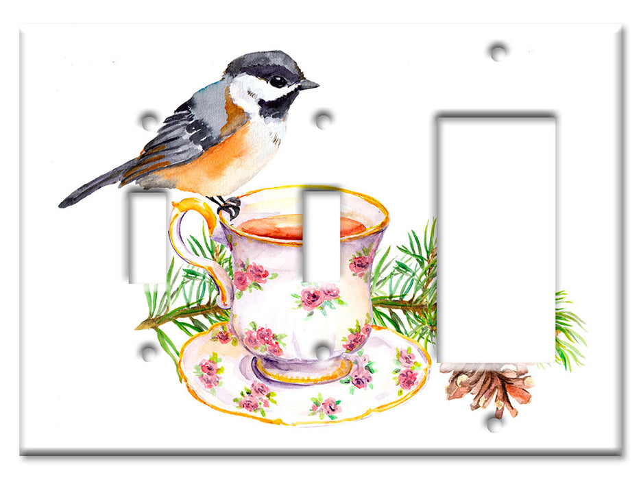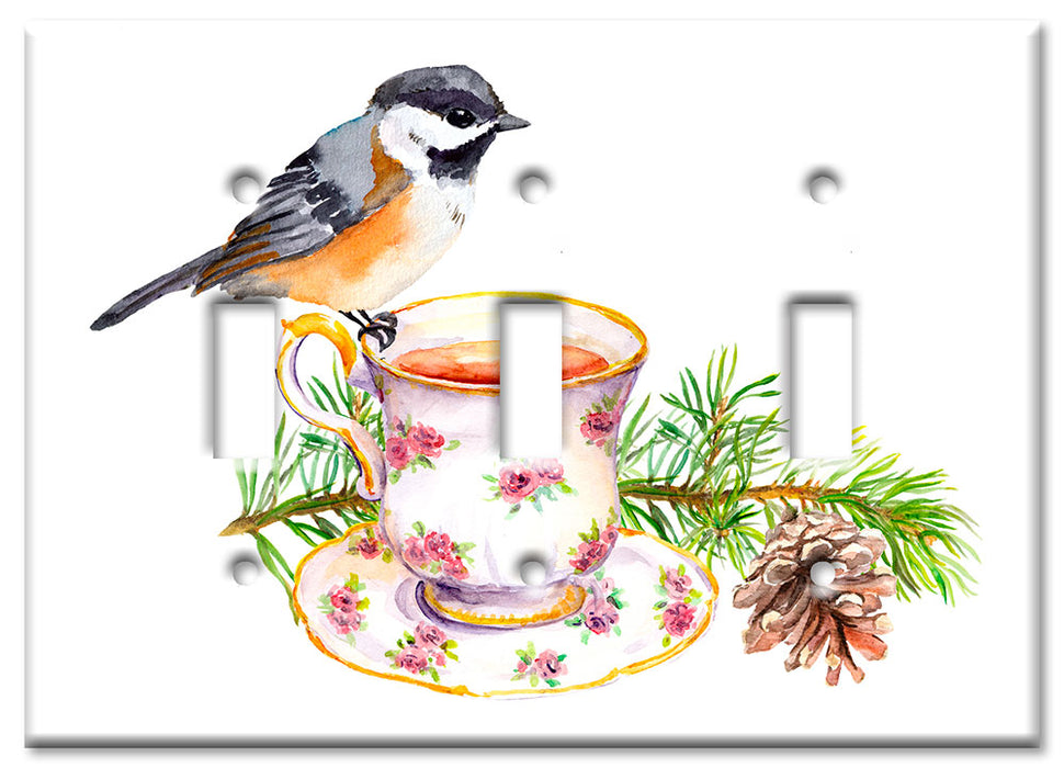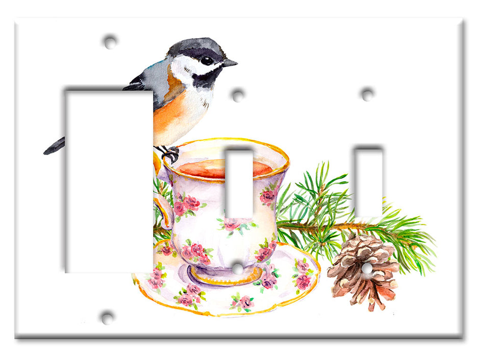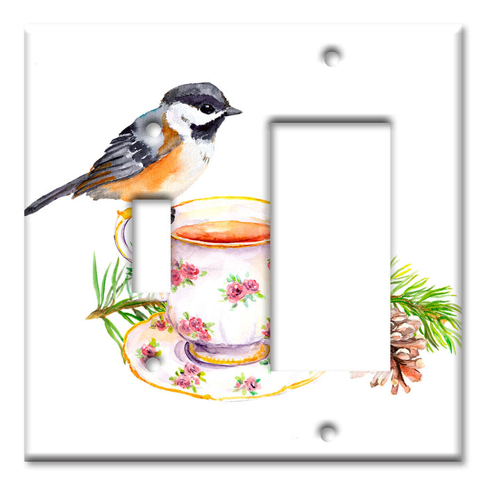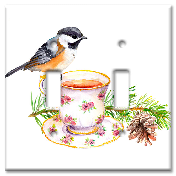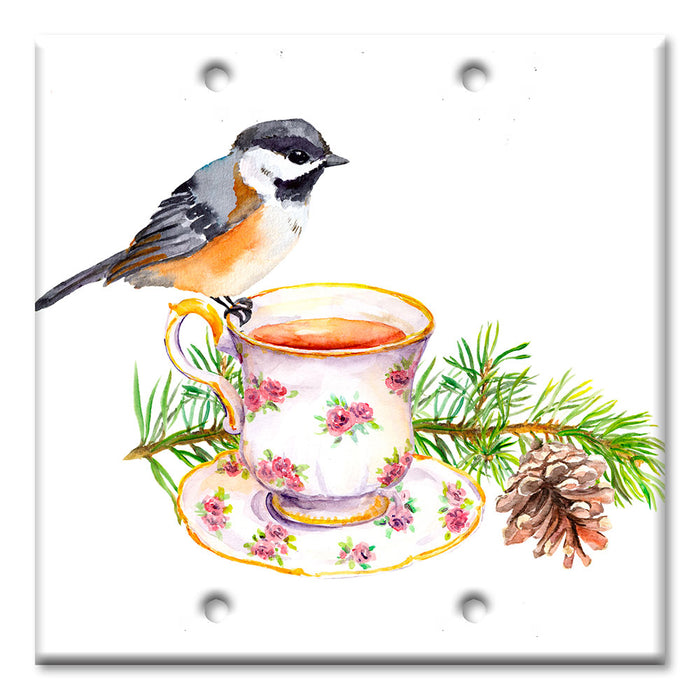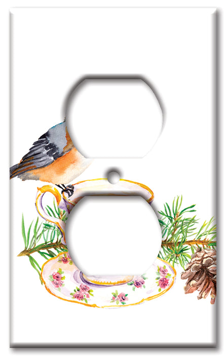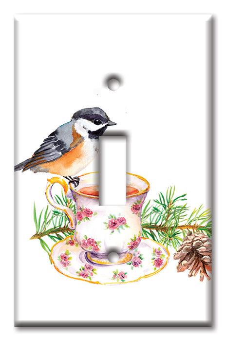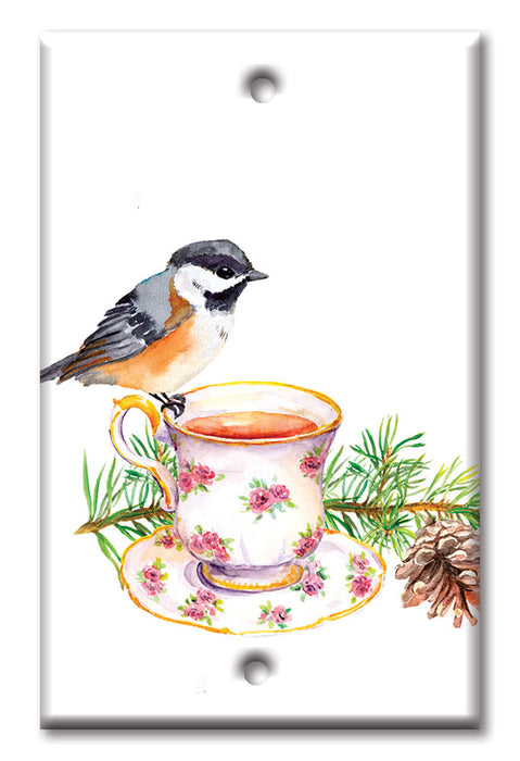 Decorative Printed OVERSIZED Switch Plate - Electrical Switch Cover JUMBO Wall Plate by Art Plates - Bird At Tea Time - 1 Gang Toggle