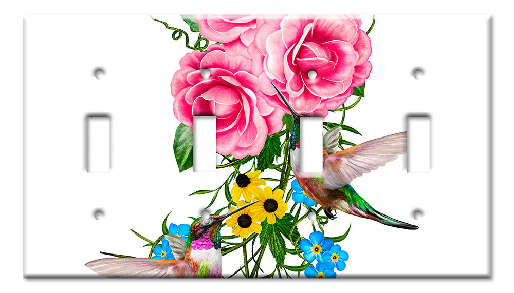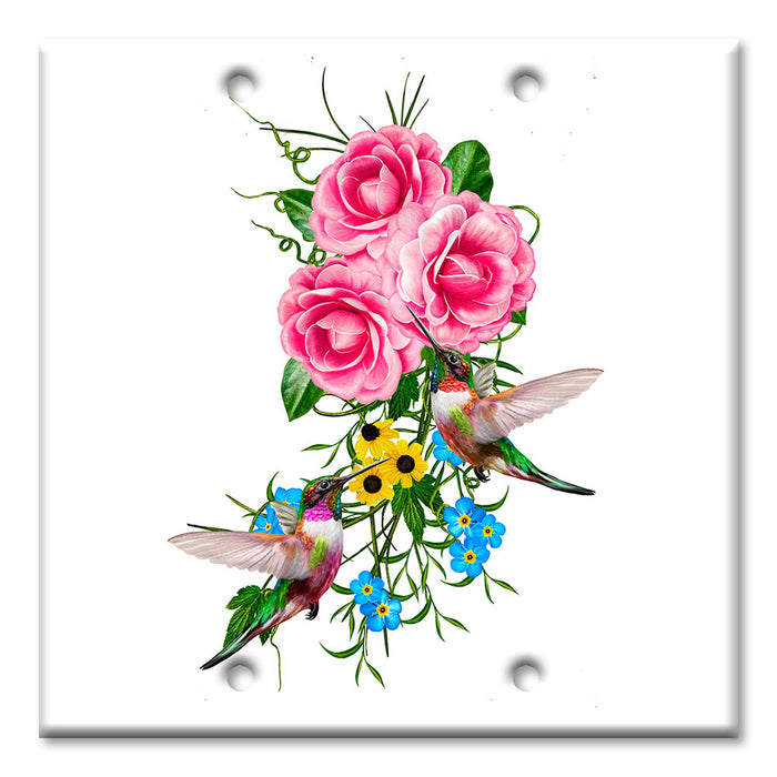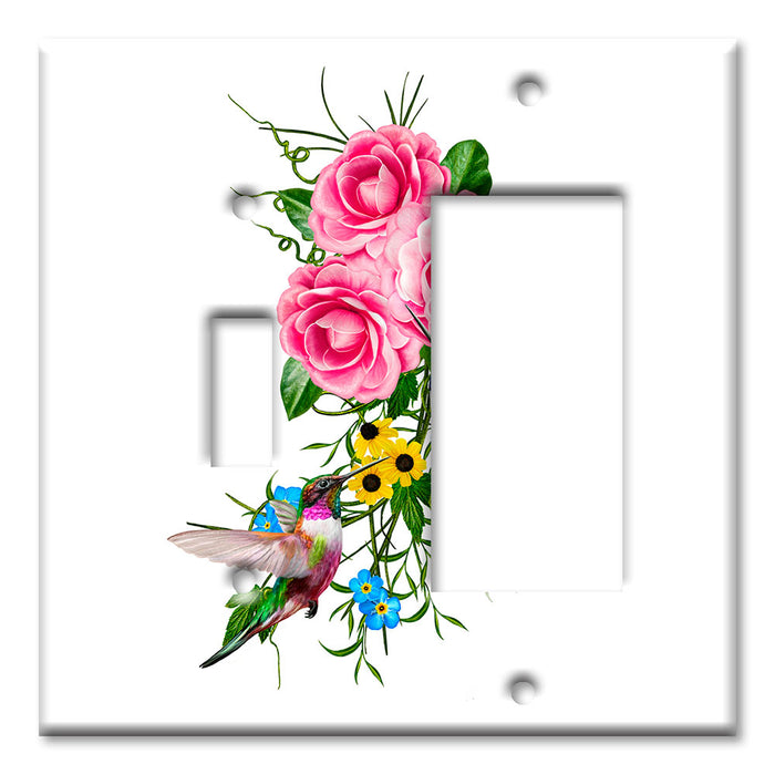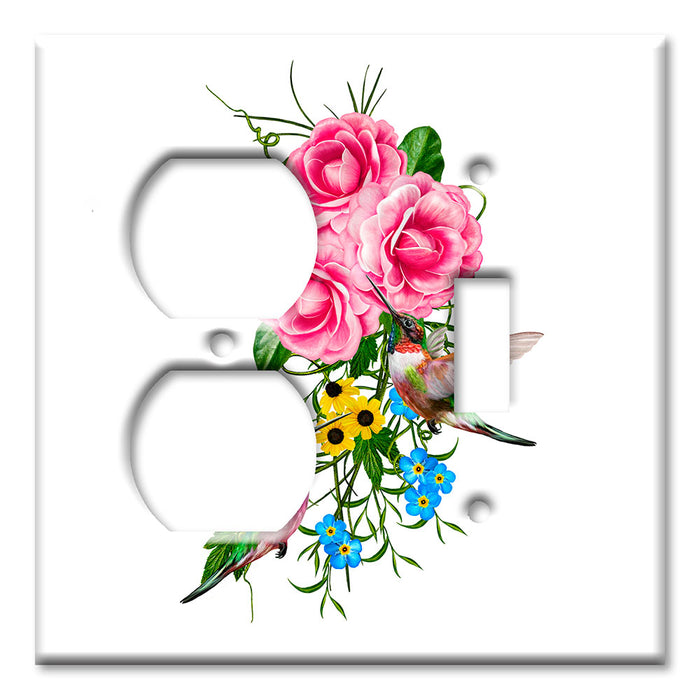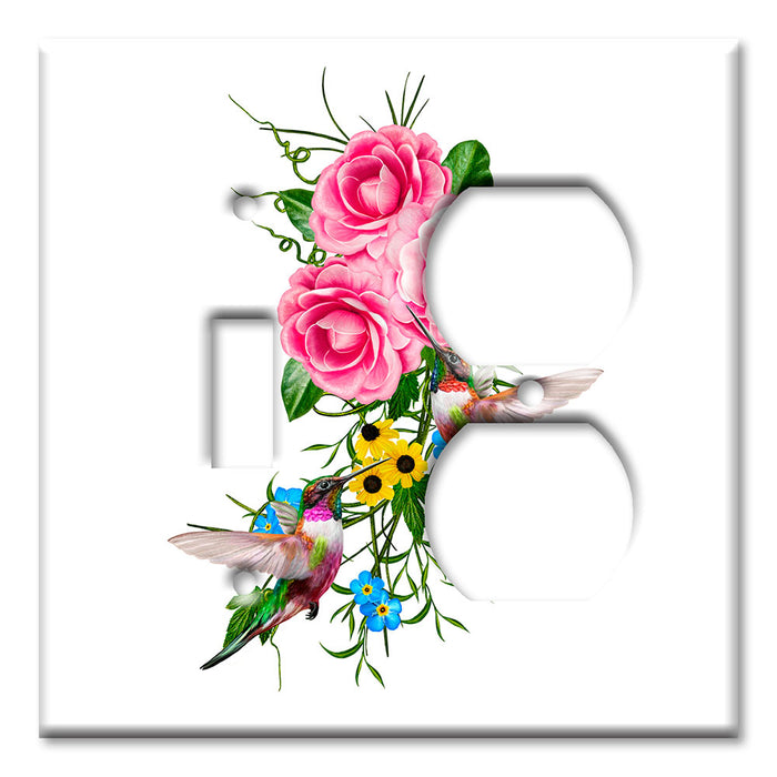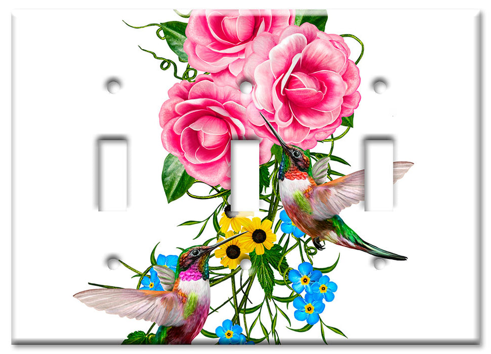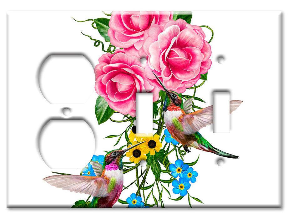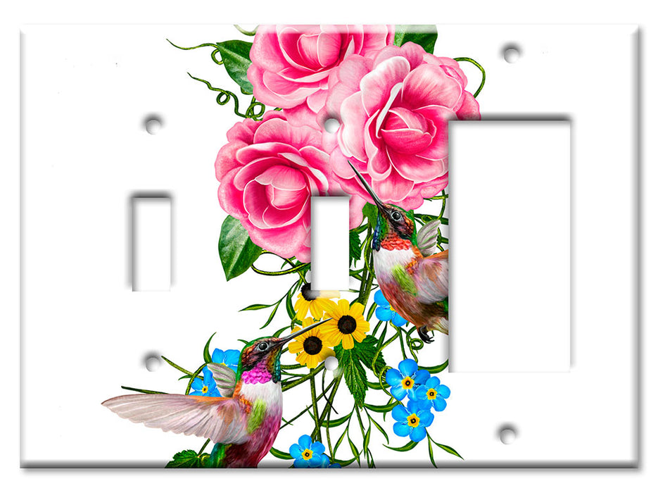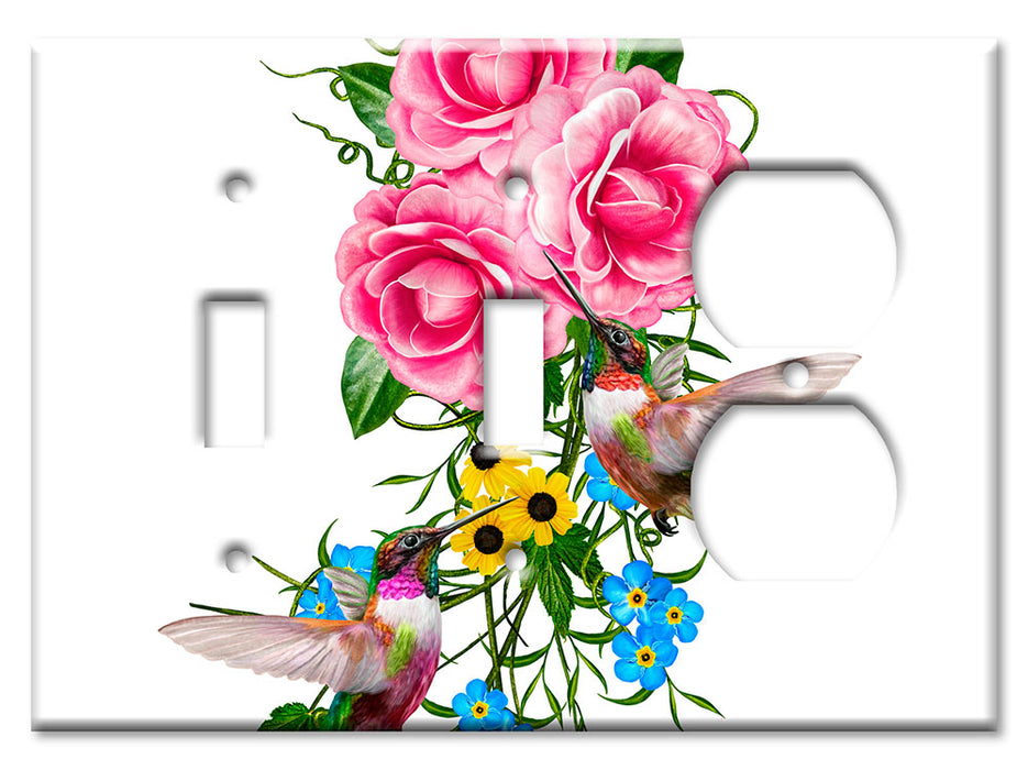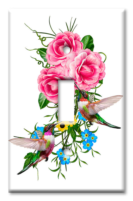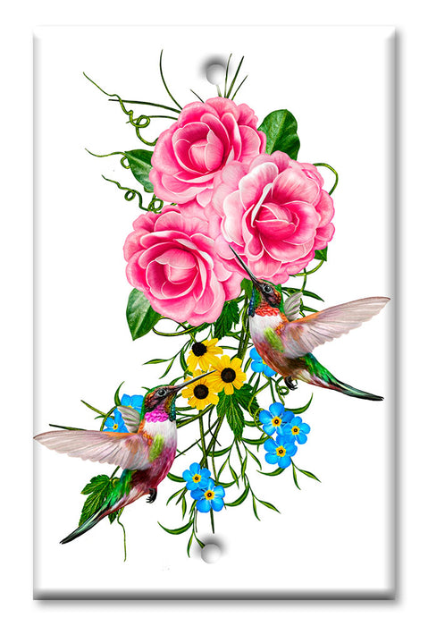 Decorative Printed OVERSIZED Switch Plate - Electrical Switch Cover JUMBO Wall Plate by Art Plates - Hummingbirds In Flowers - 1 Gang Toggle