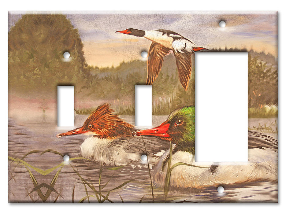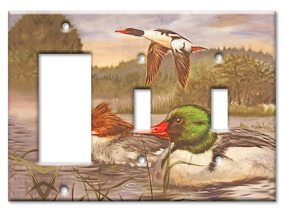 Decorative Printed OVERSIZED Switch Plate - Electrical Switch Cover JUMBO Wall Plate by Art Plates - Ducks On Water - 1 Gang Toggle