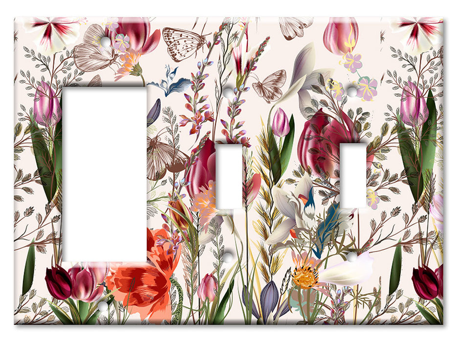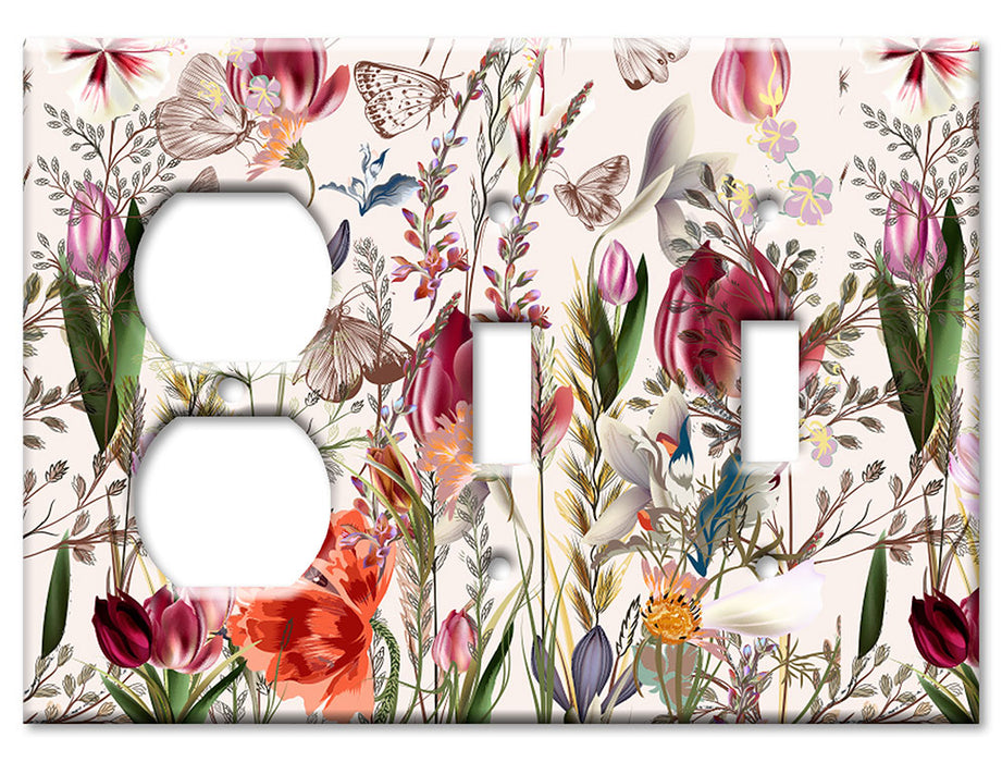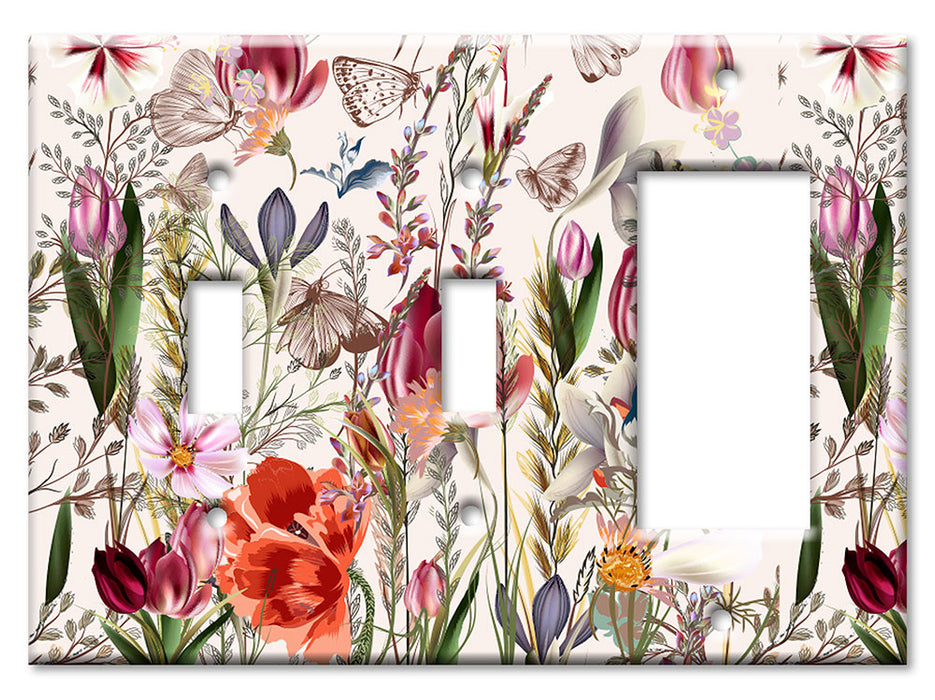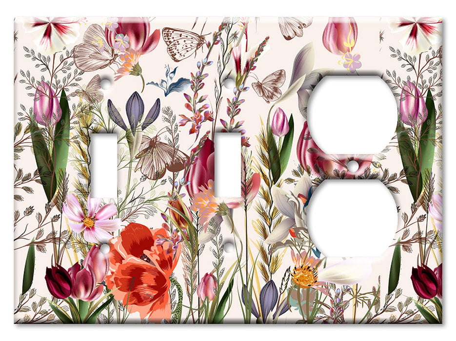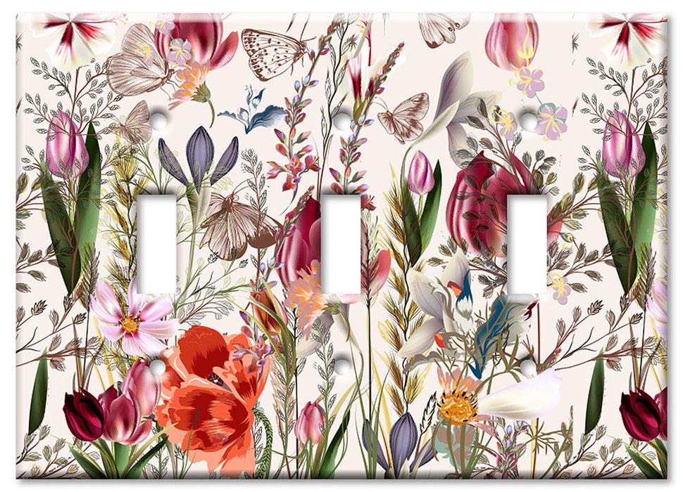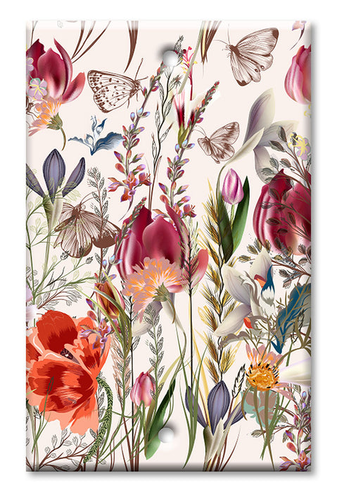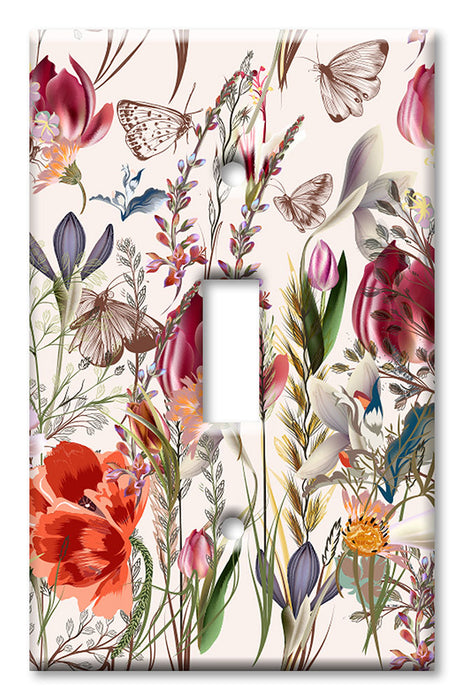 Decorative Printed OVERSIZED Switch Plate - Electrical Switch Cover JUMBO Wall Plate by Art Plates - Flowers and Butterflies - 1 Gang Toggle