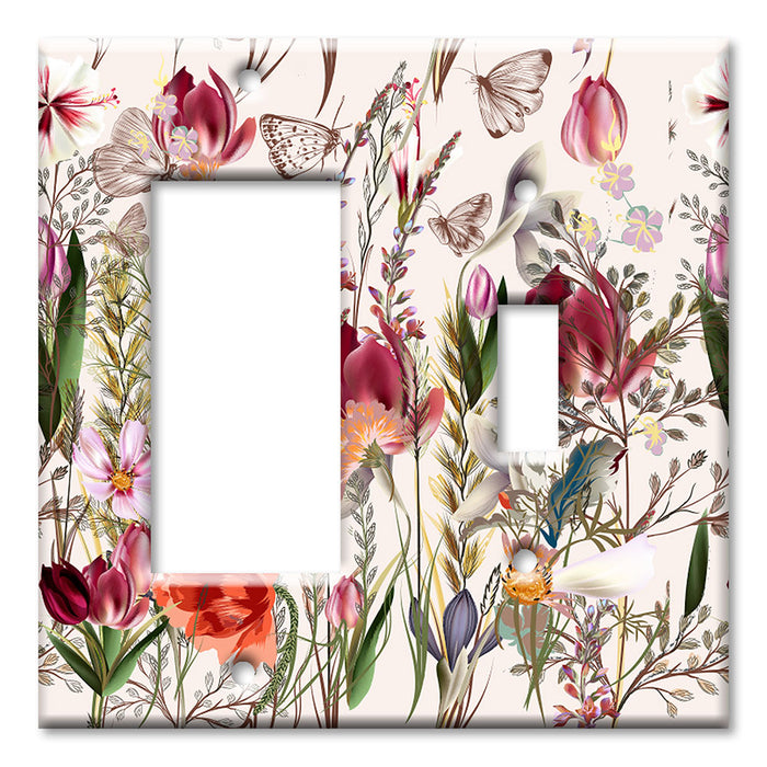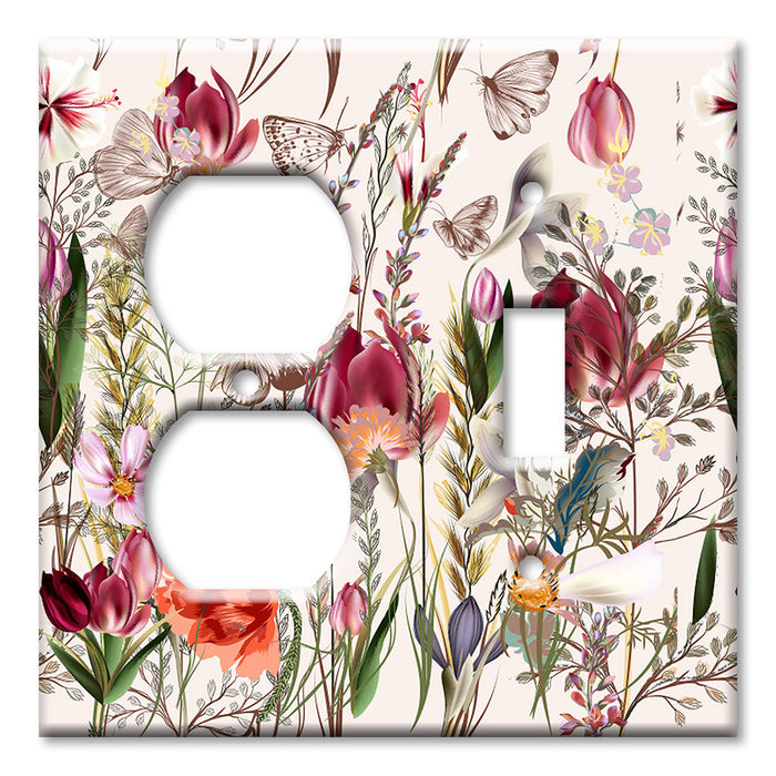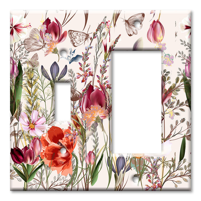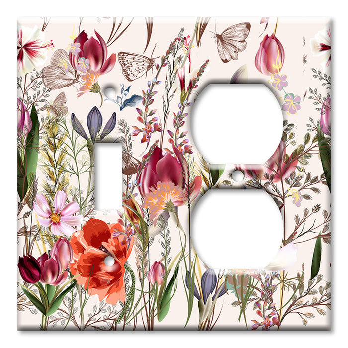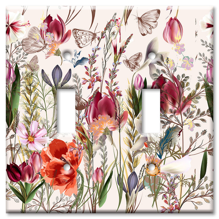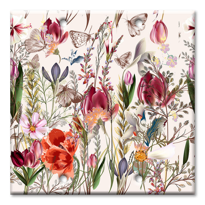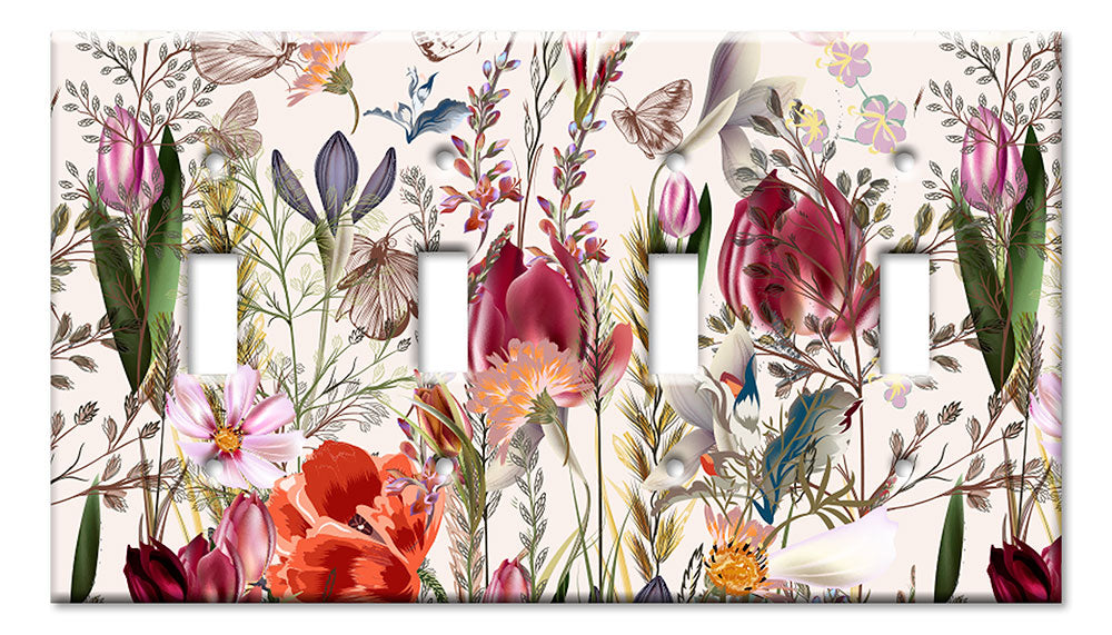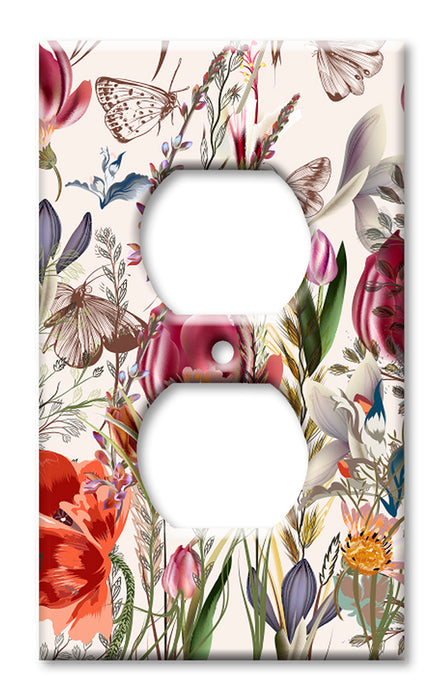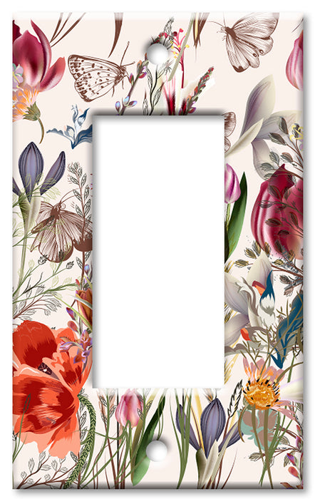 Decorative Printed OVERSIZED Switch Plate - Electrical Switch Cover JUMBO Wall Plate by Art Plates - Flowers and Butterflies - 1 Gang Toggle