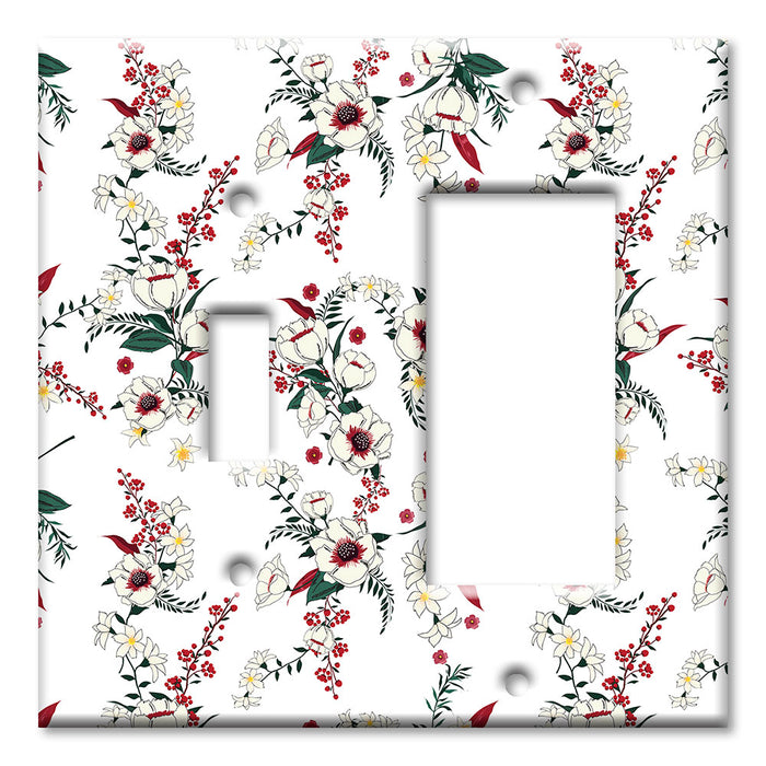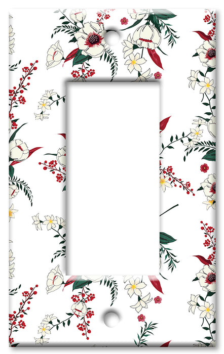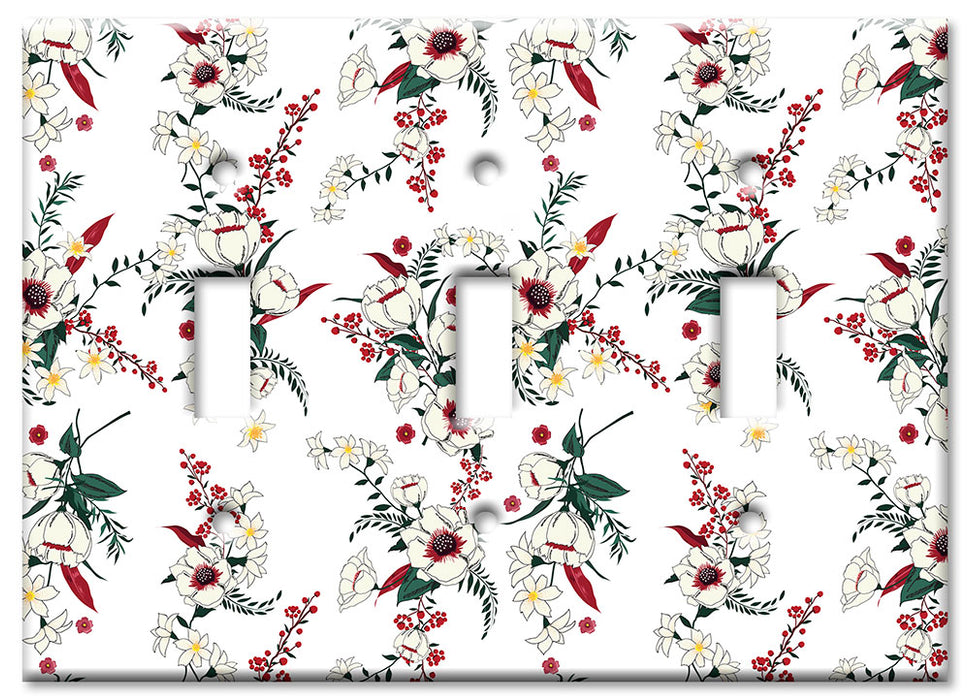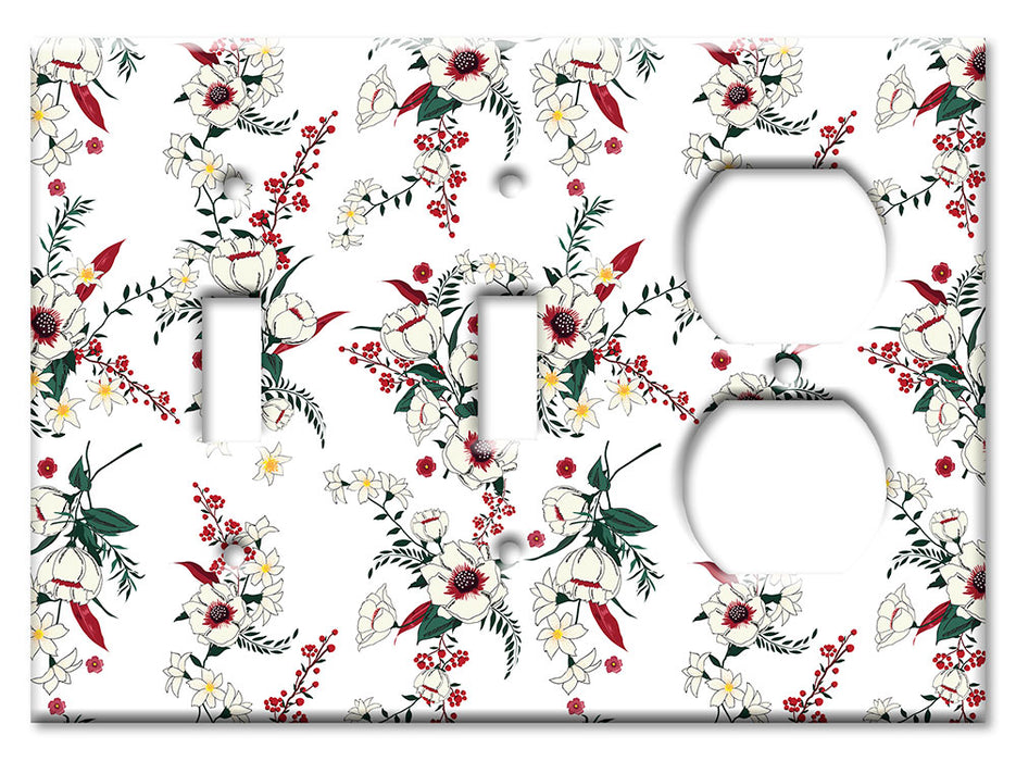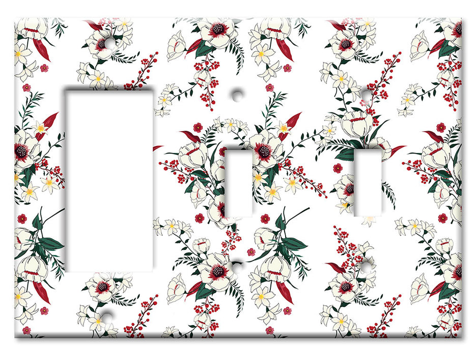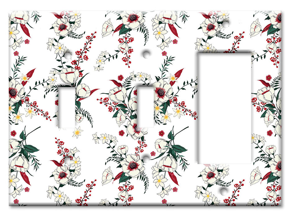 Decorative Printed OVERSIZED Switch Plate - Electrical Switch Cover JUMBO Wall Plate by Art Plates - Red and White Flower Toss - 1 Gang Toggle