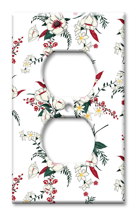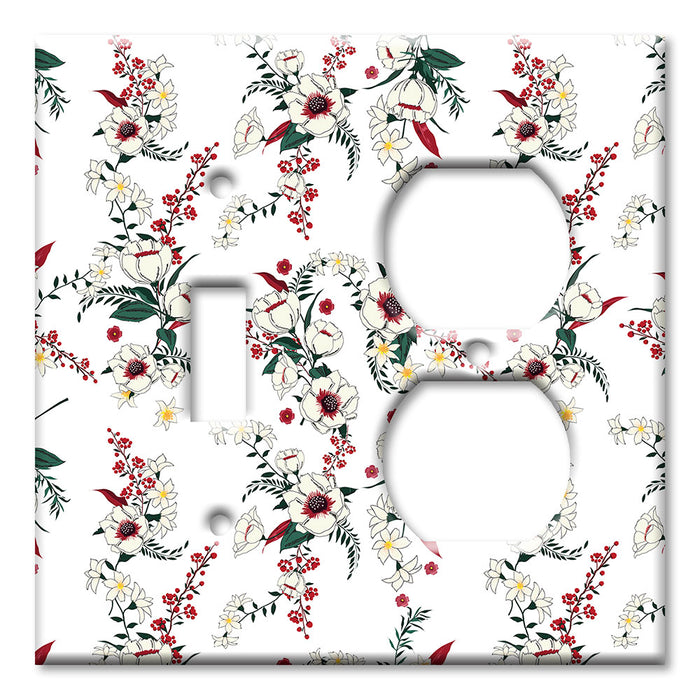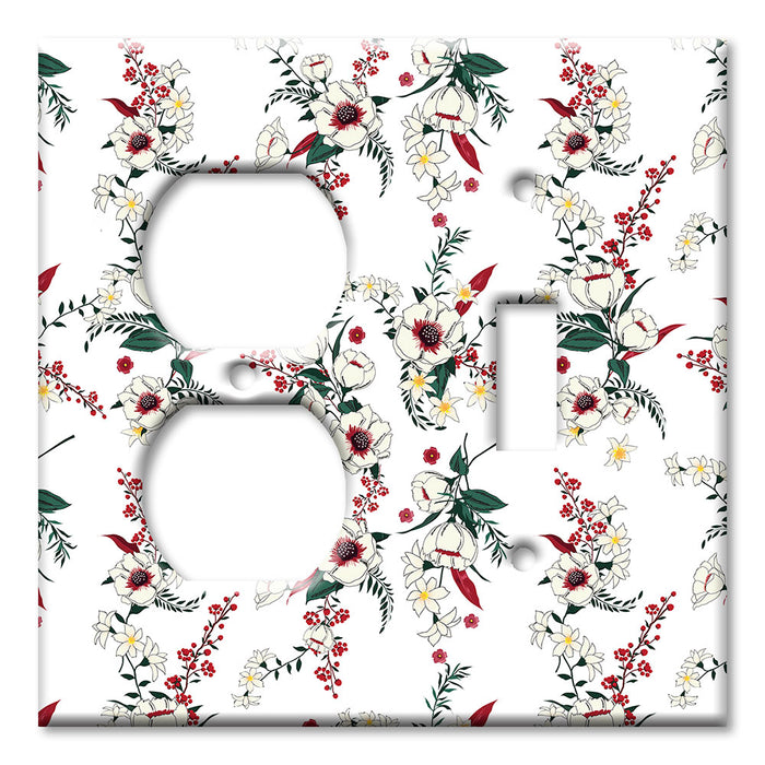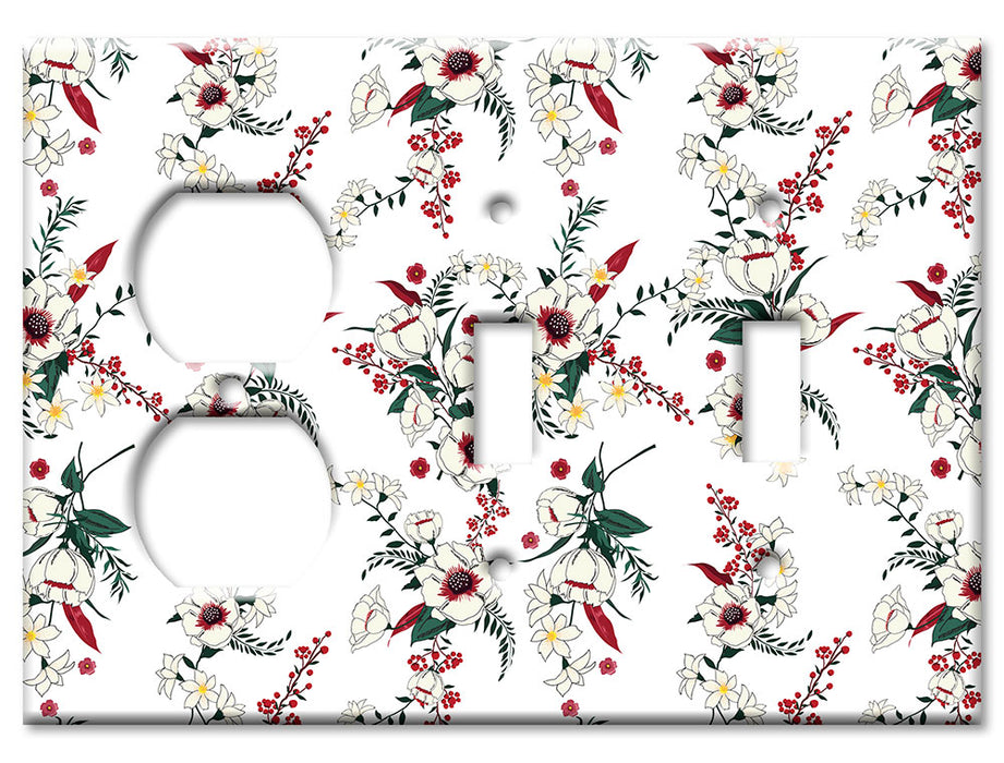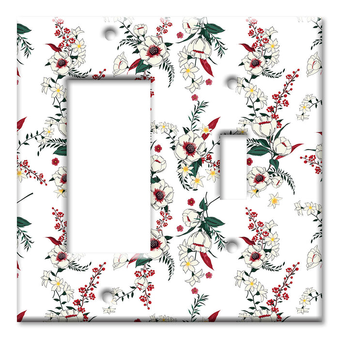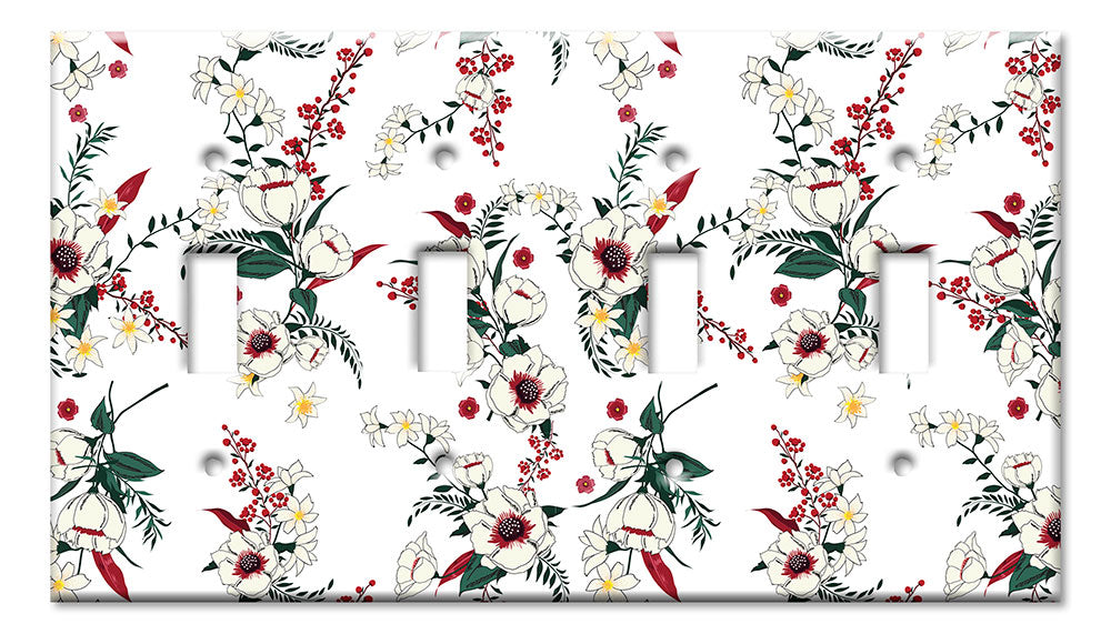 Decorative Printed OVERSIZED Switch Plate - Electrical Switch Cover JUMBO Wall Plate by Art Plates - Red and White Flower Toss - 1 Gang Toggle