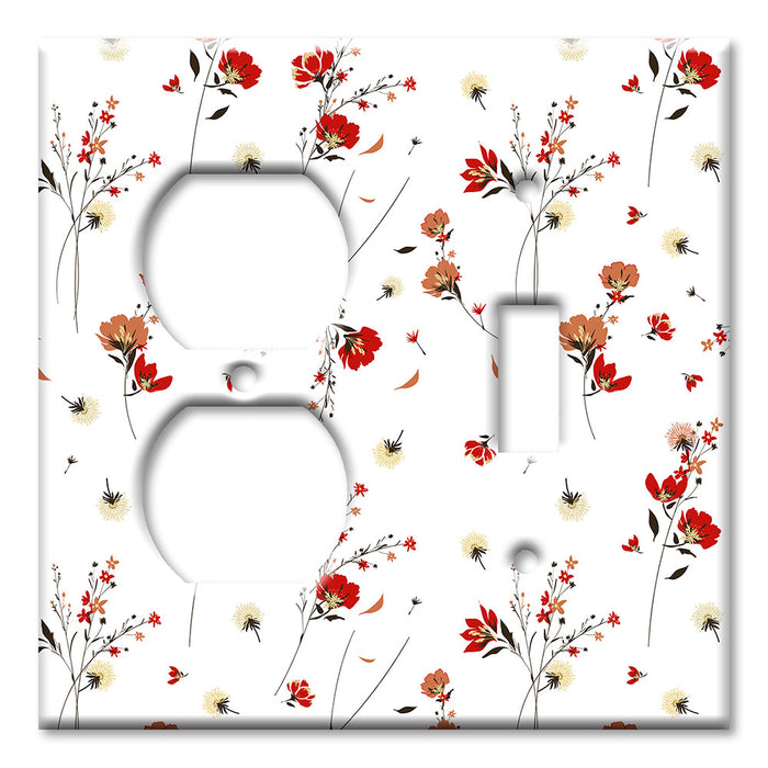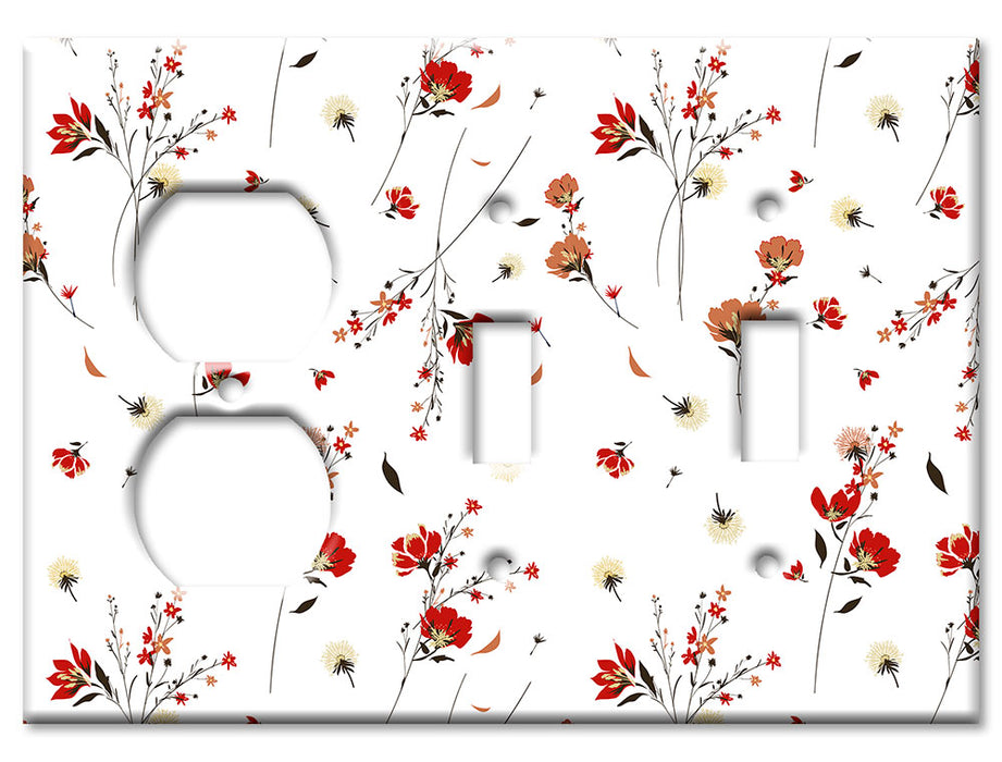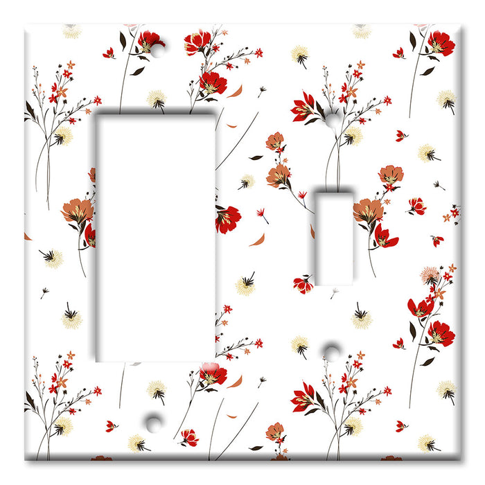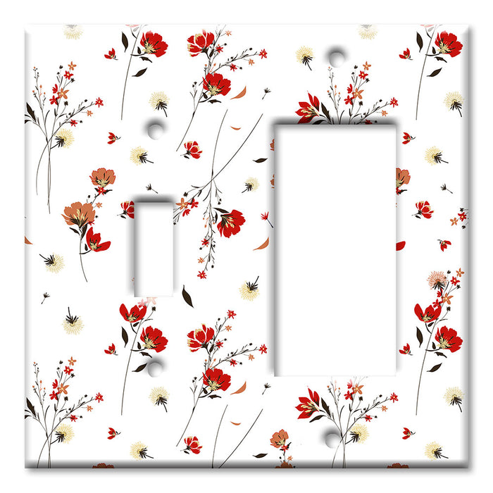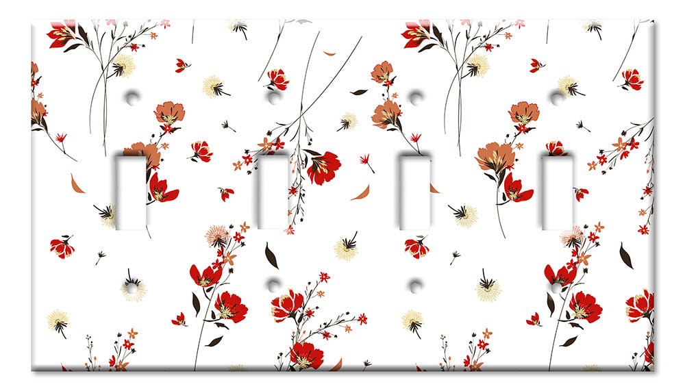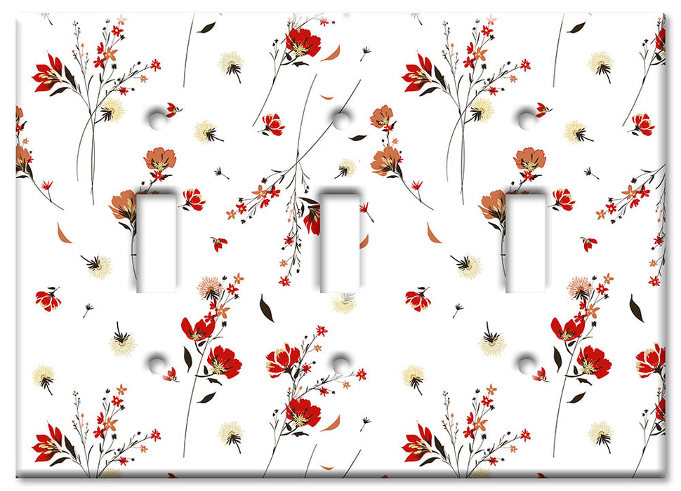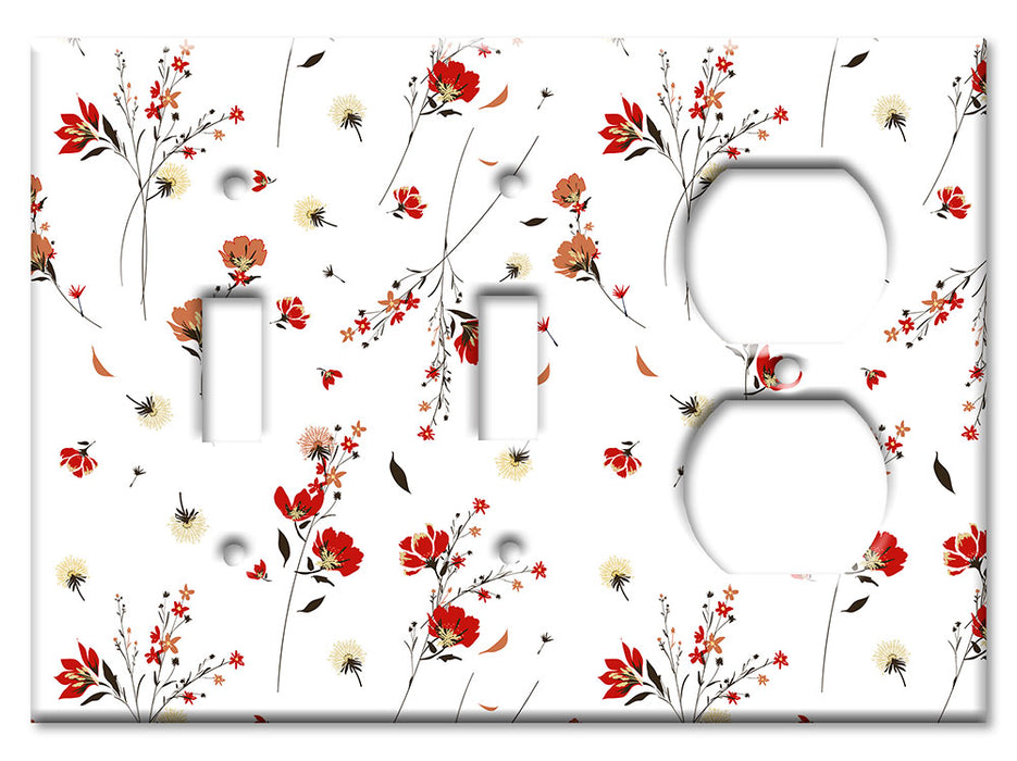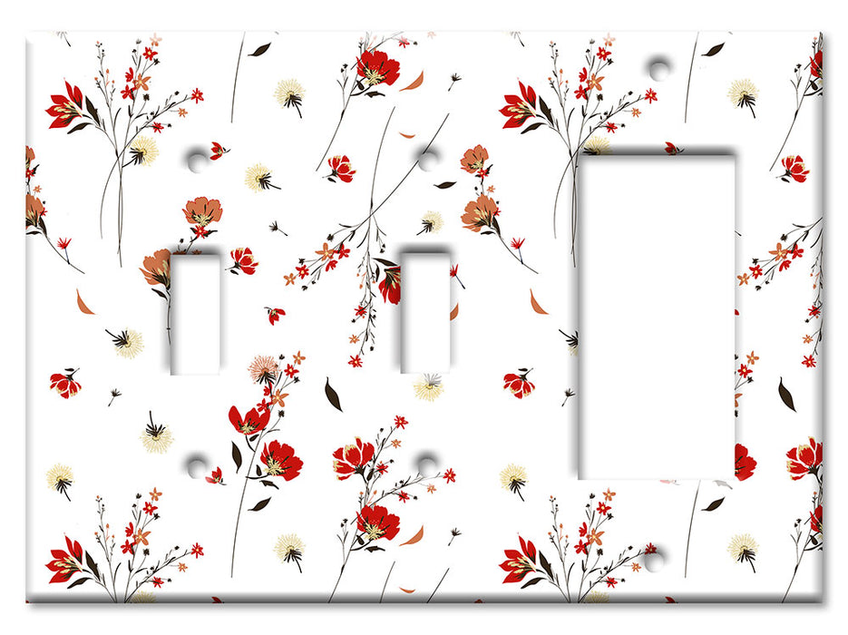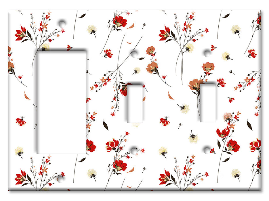 Decorative Printed OVERSIZED Switch Plate - Electrical Switch Cover JUMBO Wall Plate by Art Plates - Red and Pink Flower Toss - 1 Gang Toggle