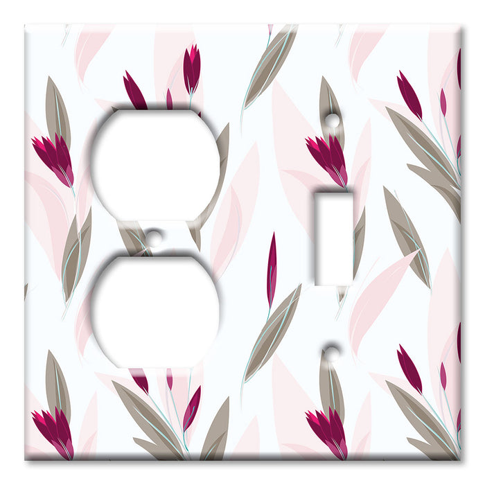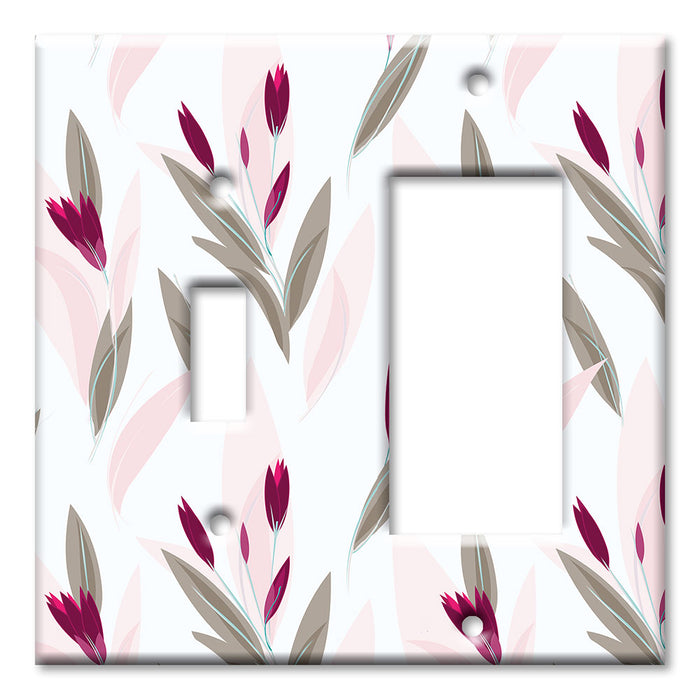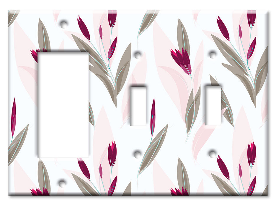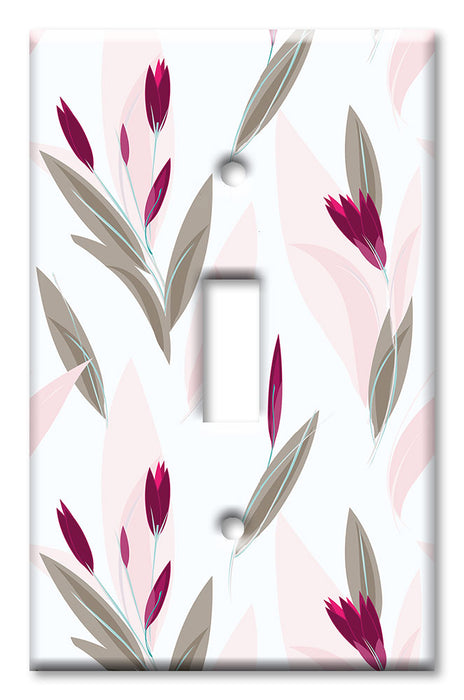Decorative Printed OVERSIZED Switch Plate - Electrical Switch Cover JUMBO Wall Plate by Art Plates - Purple and Pink Flower Toss - 1 Gang Toggle