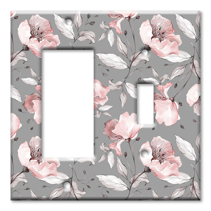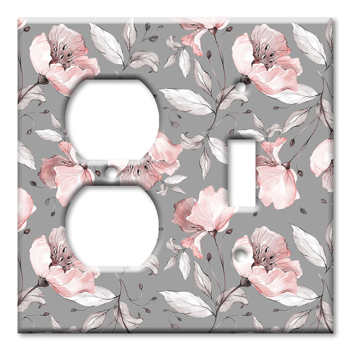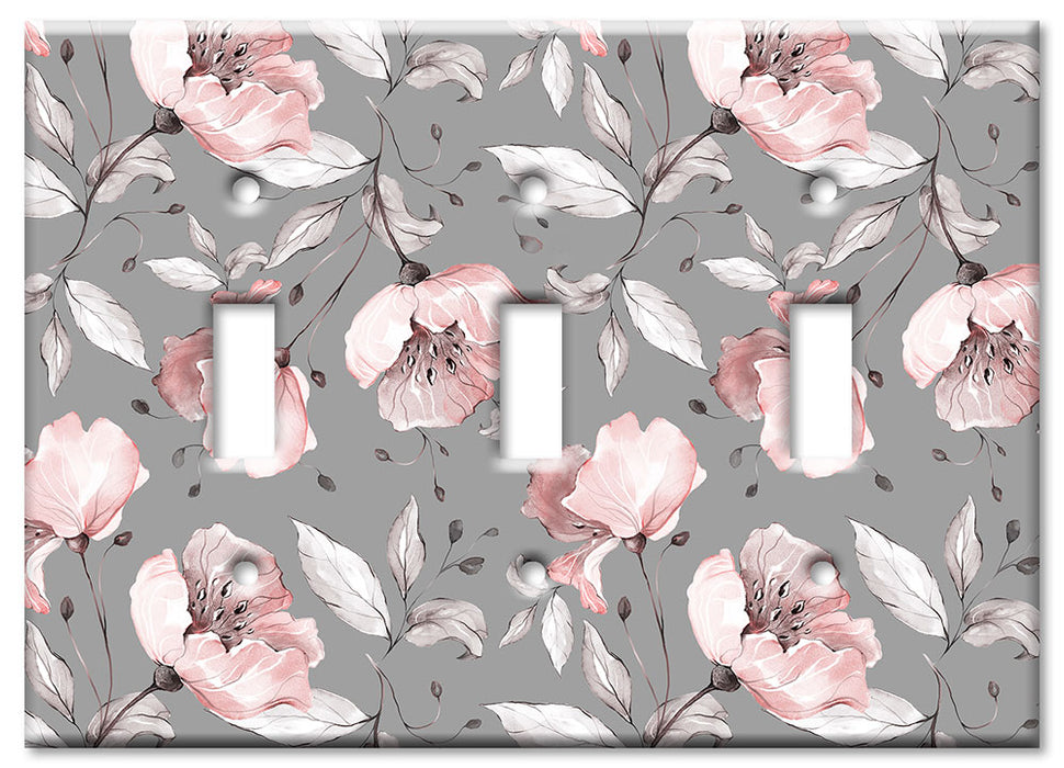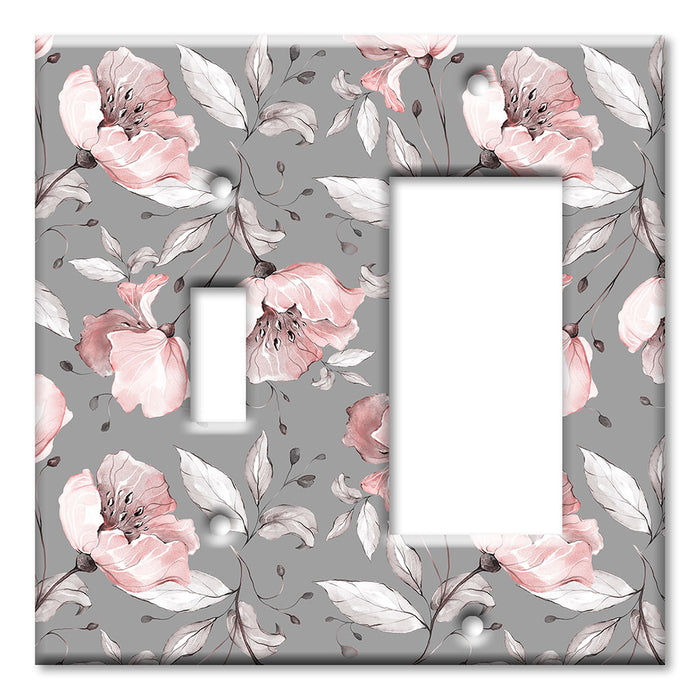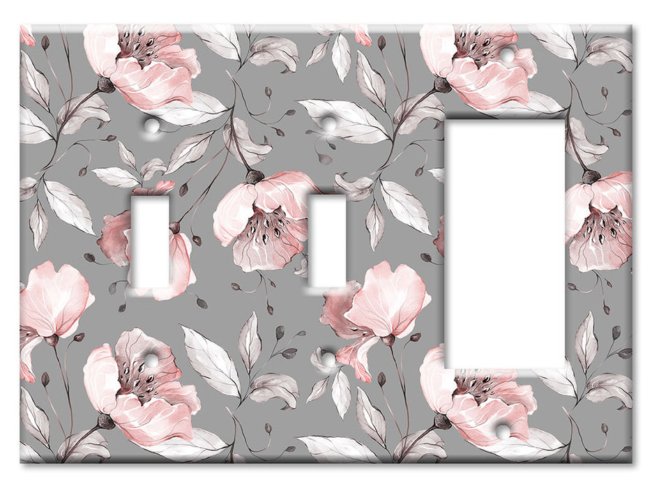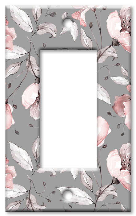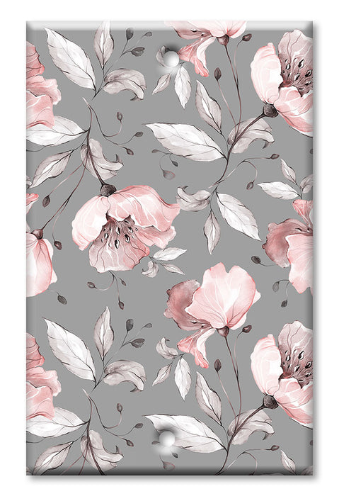 Decorative Printed OVERSIZED Switch Plate - Electrical Switch Cover JUMBO Wall Plate by Art Plates - Gray and Pink Flower Toss - 1 Gang Toggle