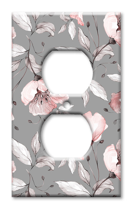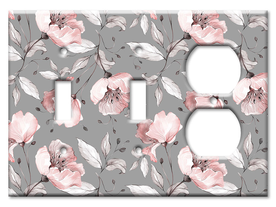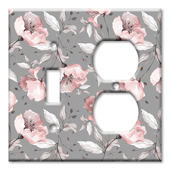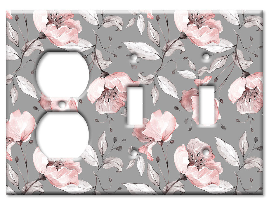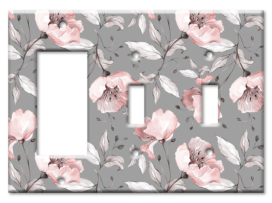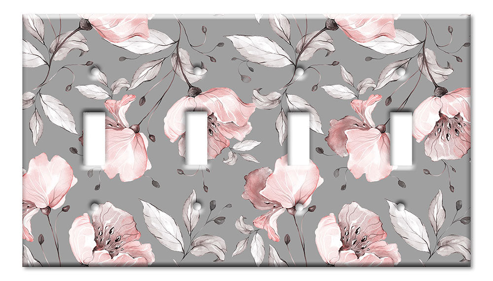 Decorative Printed OVERSIZED Switch Plate - Electrical Switch Cover JUMBO Wall Plate by Art Plates - Gray and Pink Flower Toss - 1 Gang Toggle