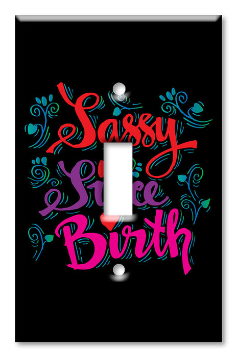 Decorative Printed OVERSIZED Switch Plate - Electrical Switch Cover JUMBO Wall Plate by Art Plates - Sassy Since Birth - 1 Gang Toggle
