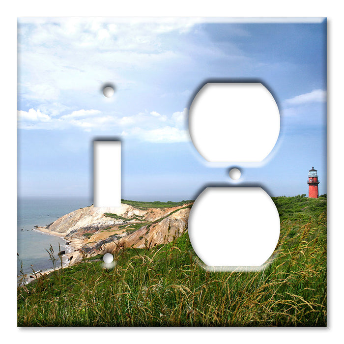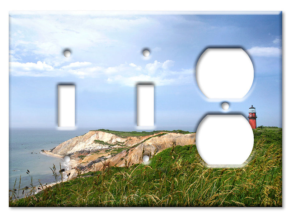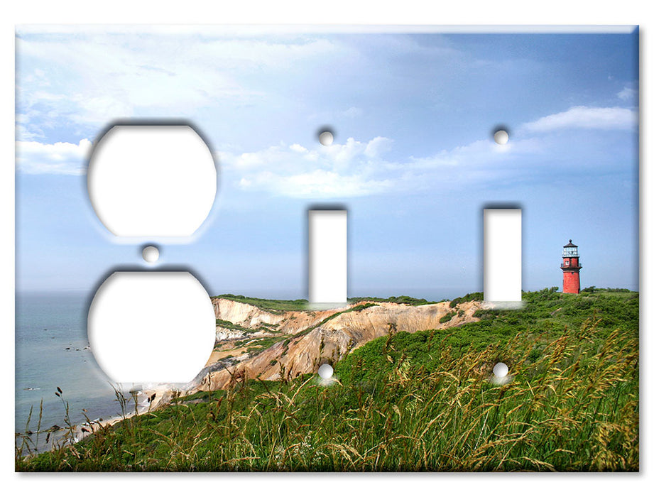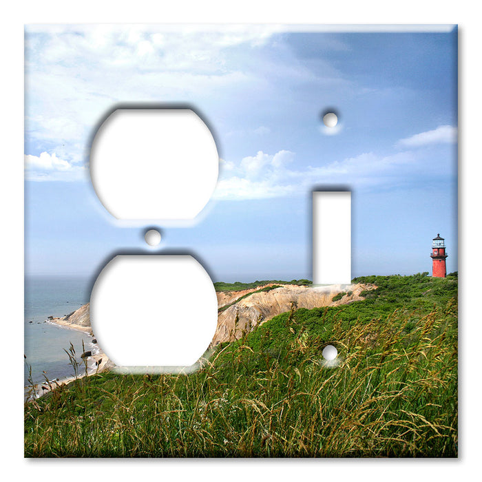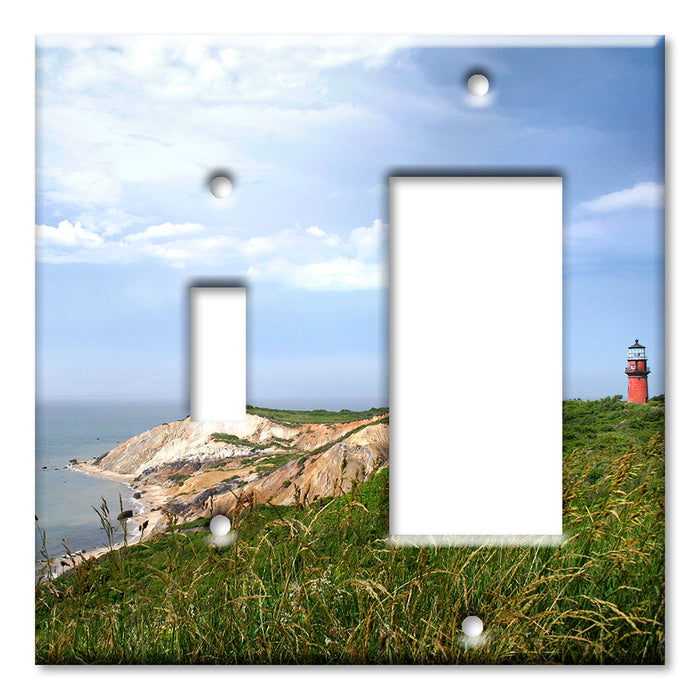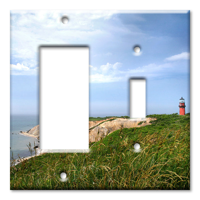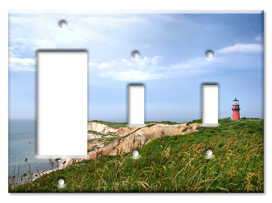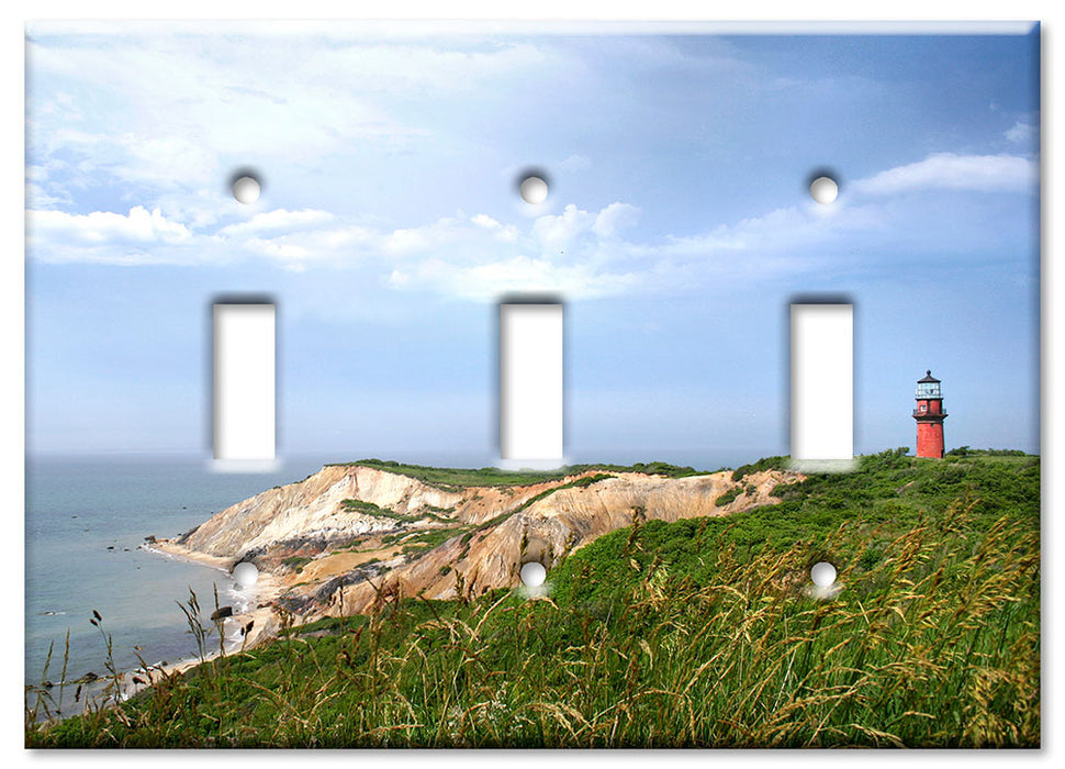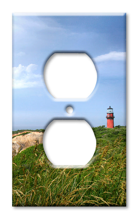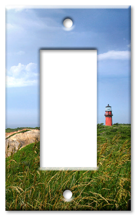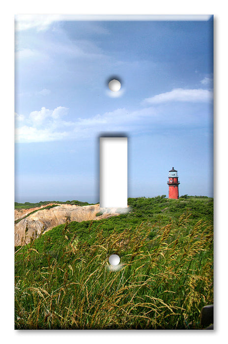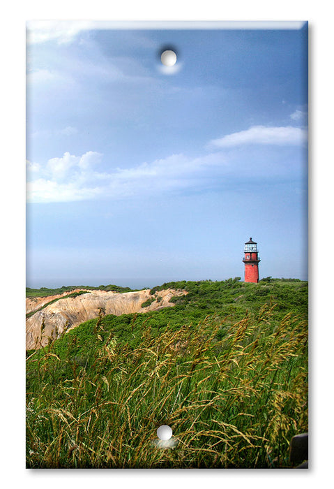 Decorative Printed OVERSIZED Switch Plate - Electrical Switch Cover JUMBO Wall Plate by Art Plates - Red Lighthouse in The Grass - 1 Gang Toggle