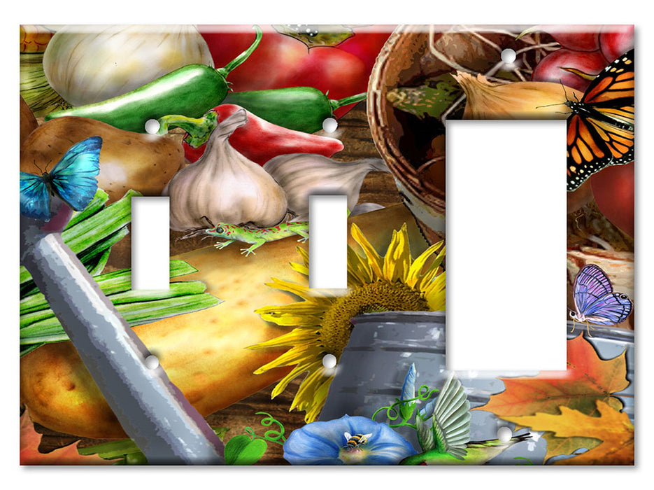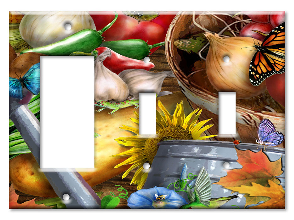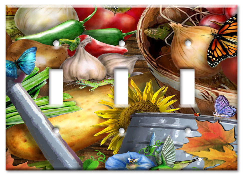 Art Plates - 1 Gang Toggle Jumbo Wall Plate / Switch Plate with colorful printed image. Art Plates Oversize switch plates are ideal for changing out boring plastic switch plates. Art Plates Jumbo switch plates and outlet covers are created using a special, high resolution, ultra violet printer that prints directly on our American made, heavy duty, metal switch plates. There simply are no other decorated switch plates available that can compare to the richness of color and resolution that Art Plates can achieve. Every oversize switch plate has a final UV cured high gloss finish. This creates an extremely durable shiny finish that also helps protect it from abrasions and scratches. Every over size switch plate comes color matched screws. All of our items are made in the USA.