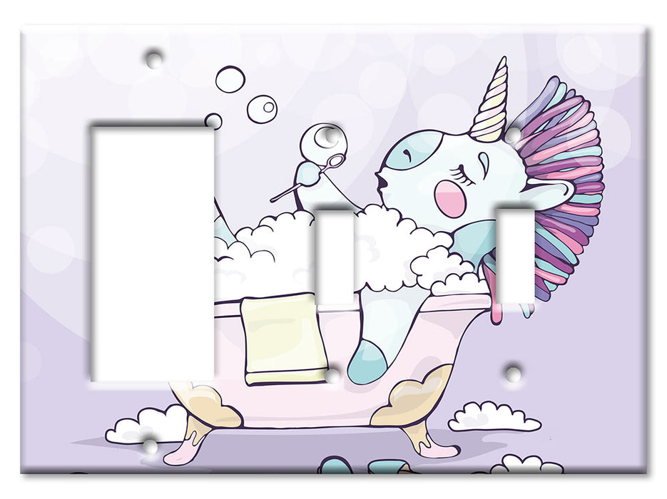 Decorative Printed OVERSIZED Switch Plate - Electrical Switch Cover JUMBO Wall Plate by Art Plates - Unicorn in the Tub - 1 Gang Toggle