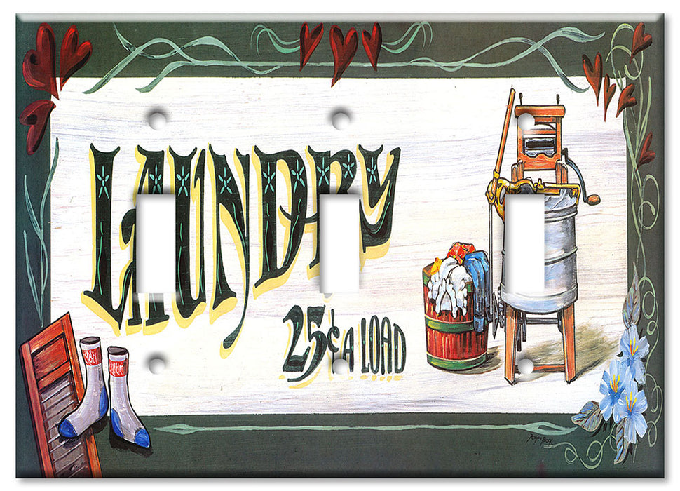 Decorative Printed OVERSIZED Switch Plate - Electrical Switch Cover JUMBO Wall Plate by Art Plates - Laundry - 1 Gang Toggle