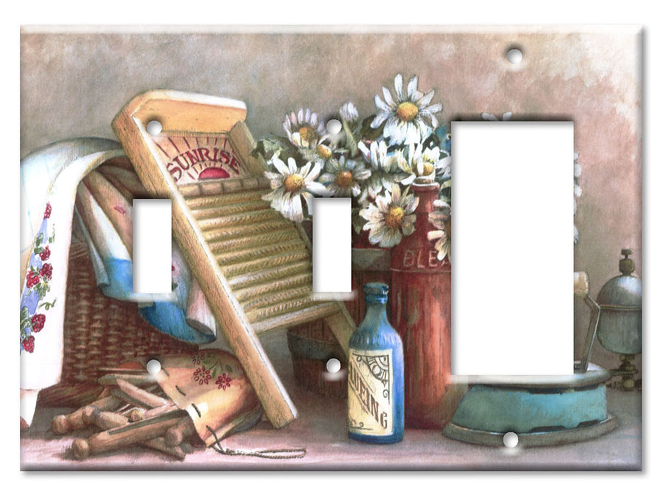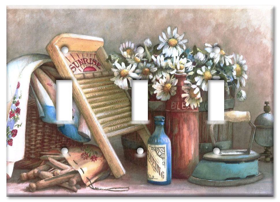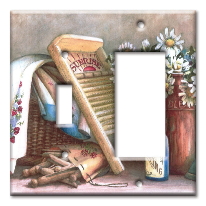 Decorative Printed OVERSIZED Switch Plate - Electrical Switch Cover JUMBO Wall Plate by Art Plates - Clothes Pins - 1 Gang Toggle