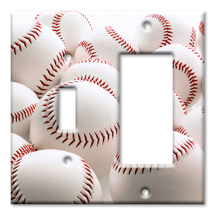 Decorative Printed OVERSIZED Switch Plate - Electrical Switch Cover JUMBO Wall Plate by Art Plates - White Baseballs - 1 Gang Toggle