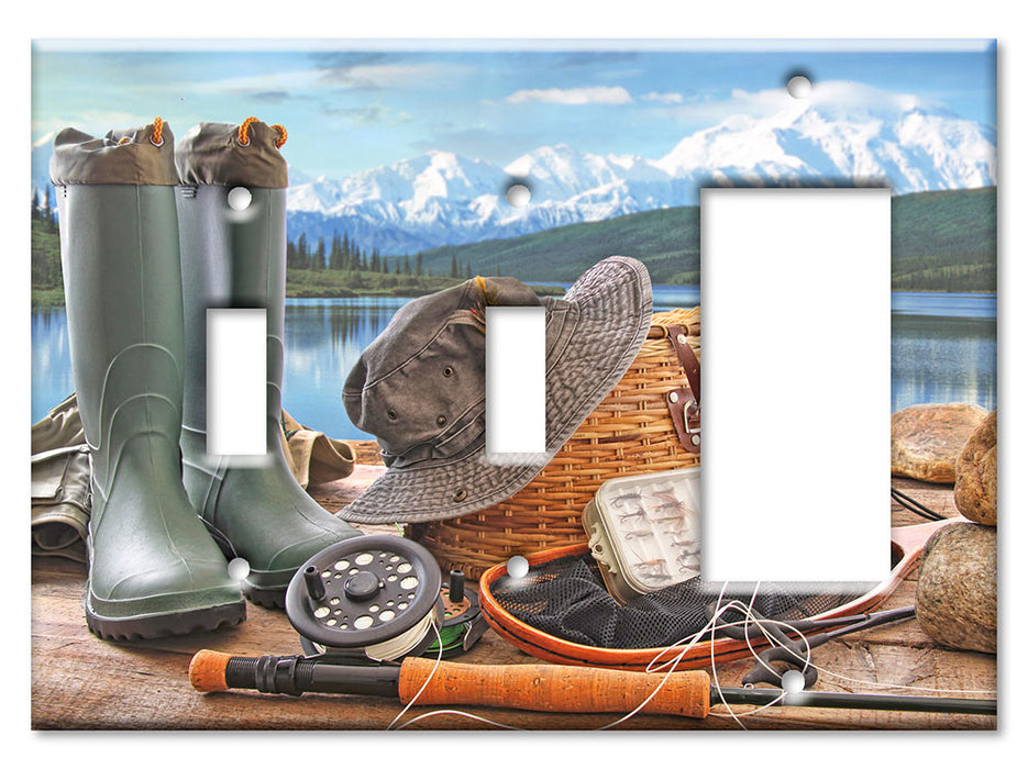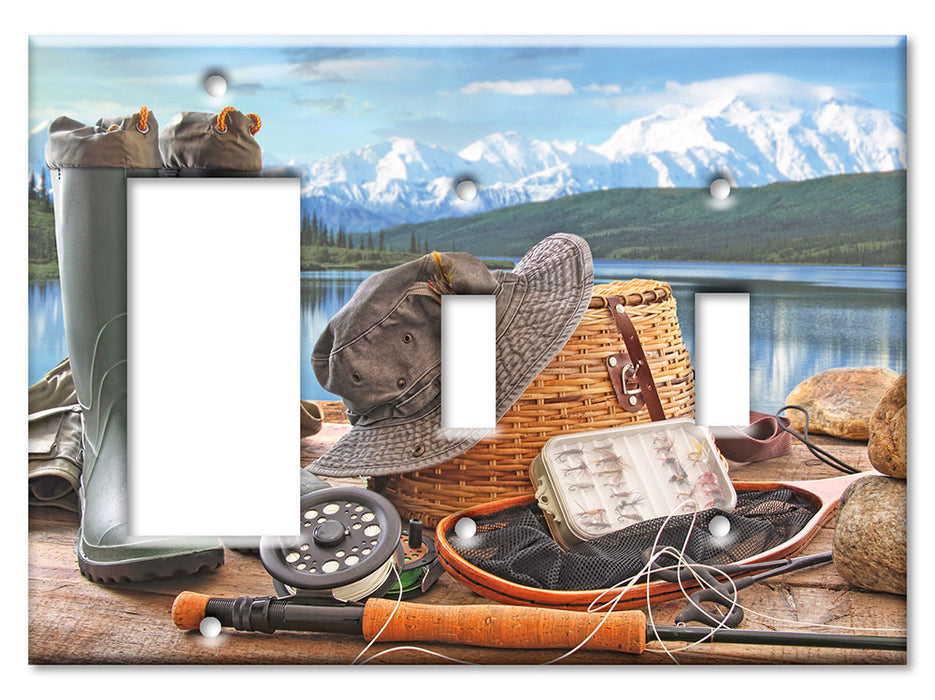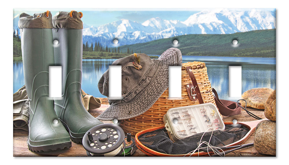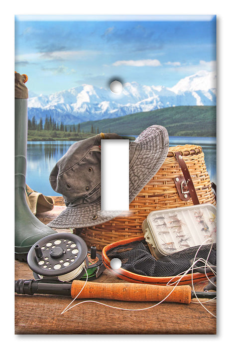 Decorative Printed OVERSIZED Switch Plate - Electrical Switch Cover JUMBO Wall Plate by Art Plates - Fly Fishing Gear - 1 Gang Toggle