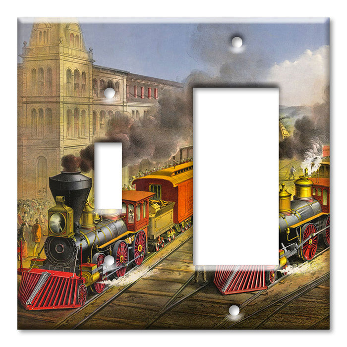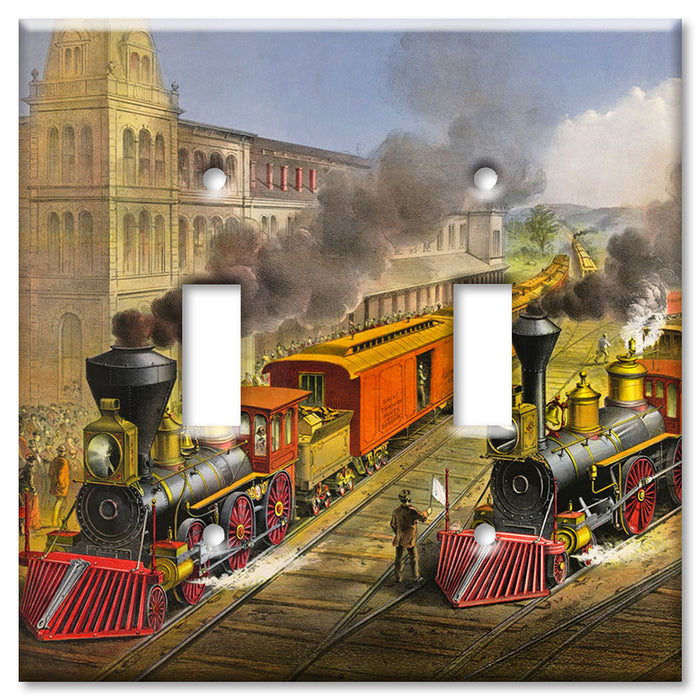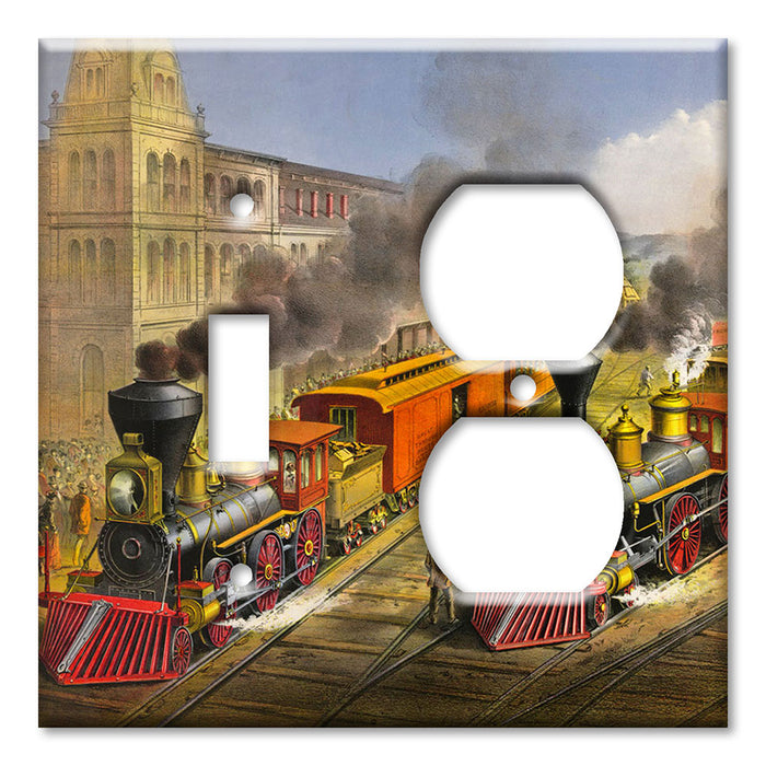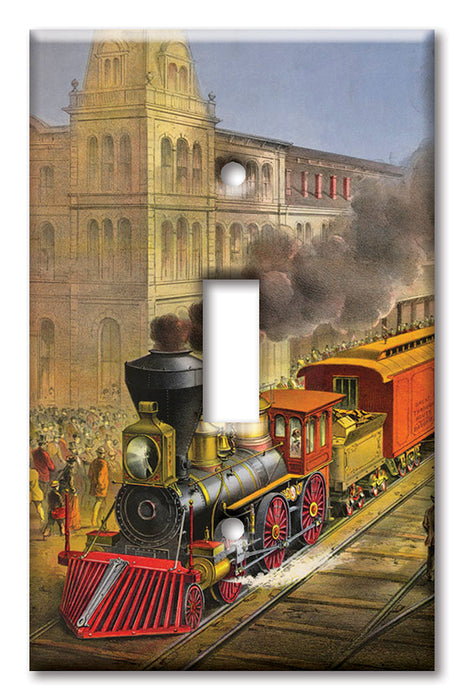 Decorative Printed OVERSIZED Switch Plate - Electrical Switch Cover JUMBO Wall Plate by Art Plates - Currier and Ives Train - 1 Gang Toggle