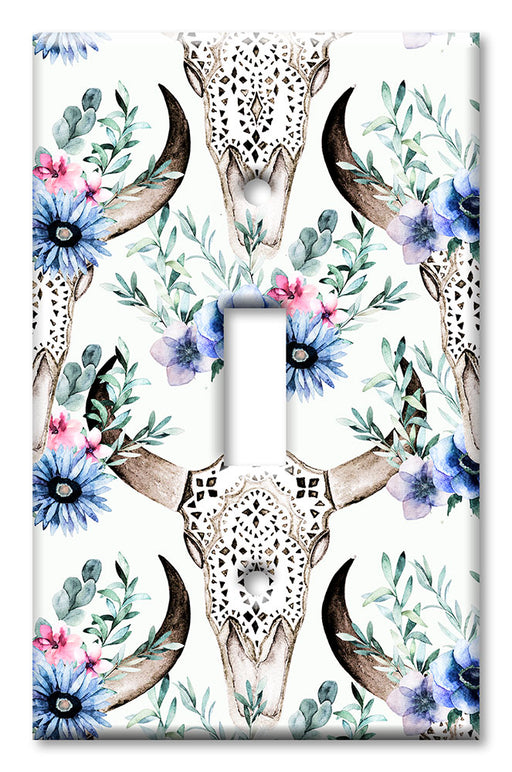 View full detailsDecorative Printed OVERSIZED Switch Plate - Electrical Switch Cover JUMBO Wall Plate by Art Plates - Bull Skull and Blue Flowers