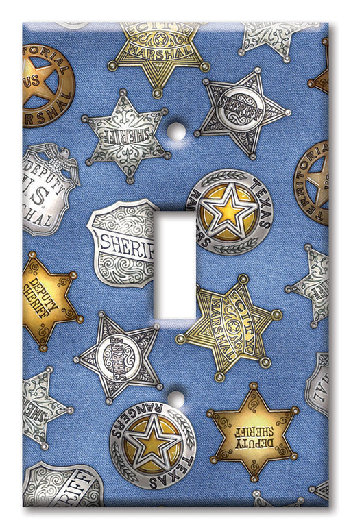 View full detailsDecorative Printed OVERSIZED Switch Plate - Electrical Switch Cover JUMBO Wall Plate by Art Plates - Sheriff Badges (Denim) - Image by Dan Morris