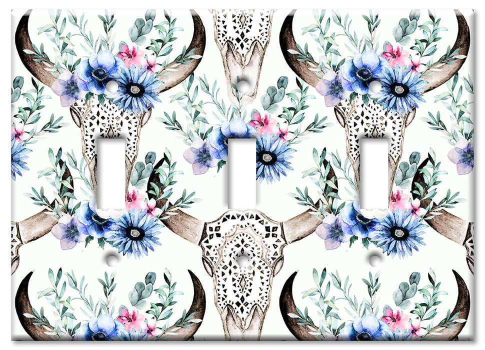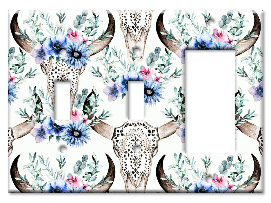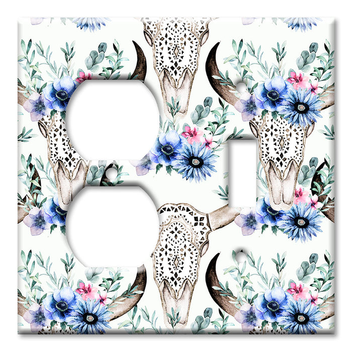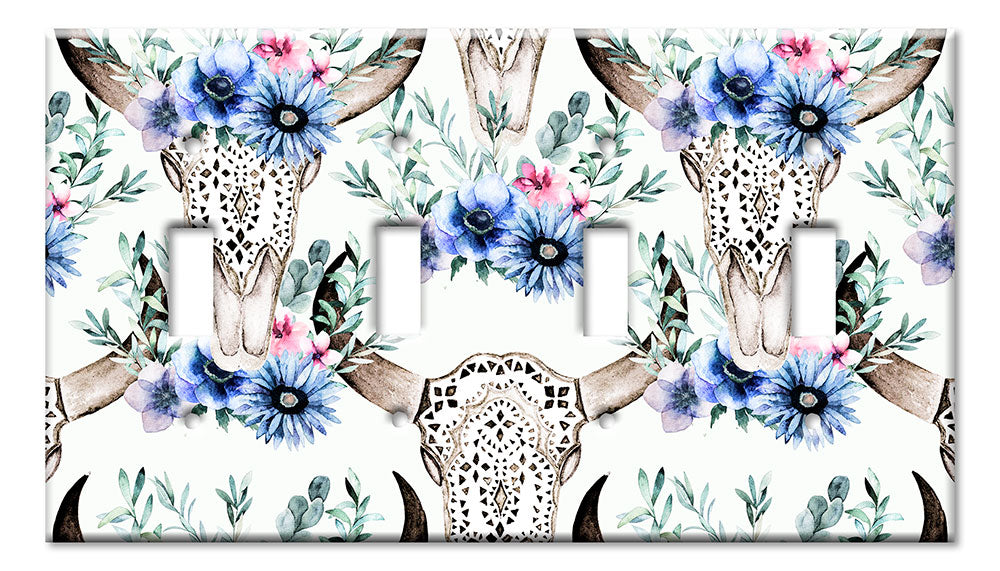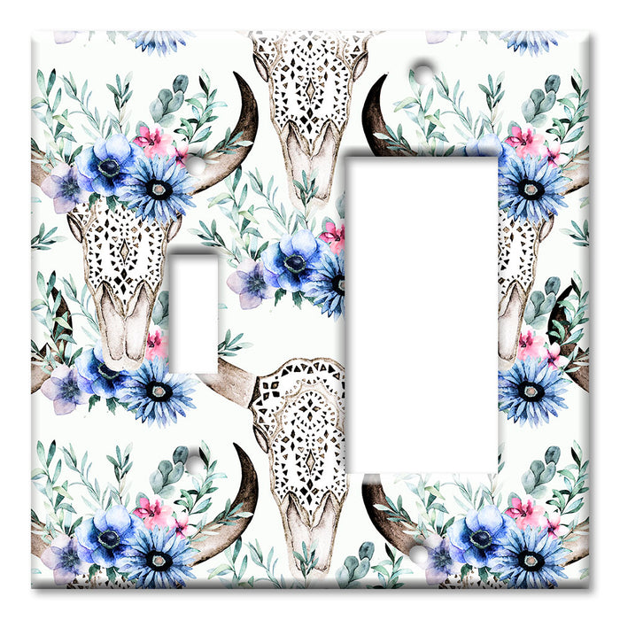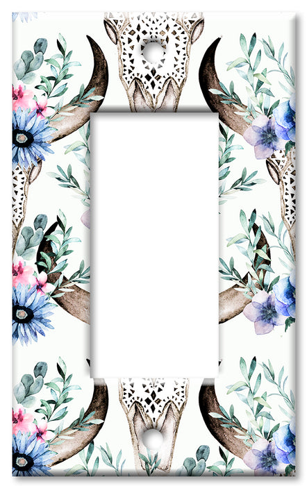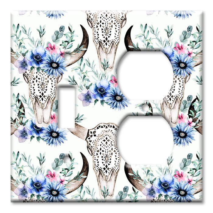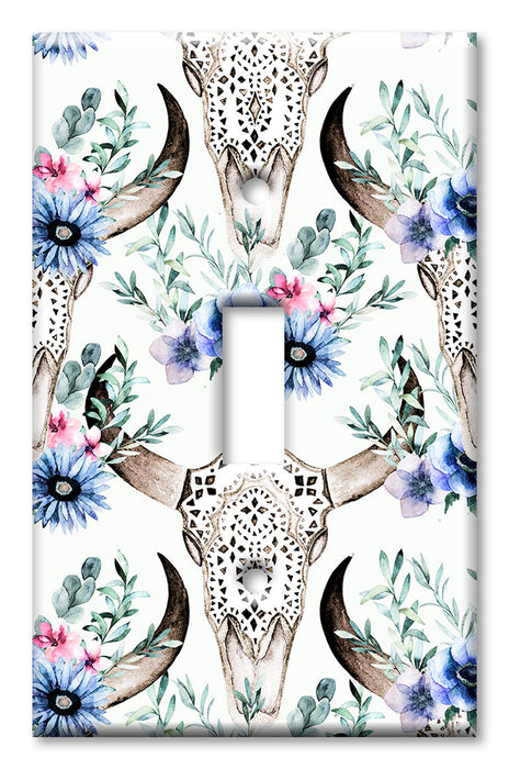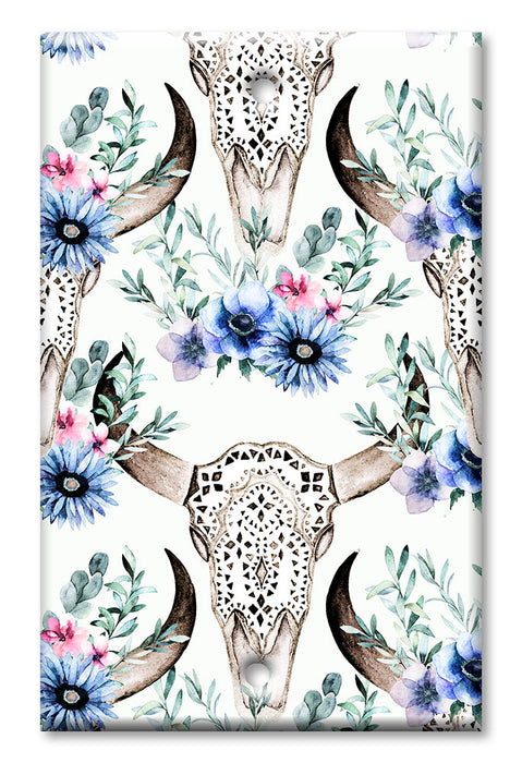 Decorative Printed OVERSIZED Switch Plate - Electrical Switch Cover JUMBO Wall Plate by Art Plates - Bull Skull and Blue Flowers - 1 Gang Toggle