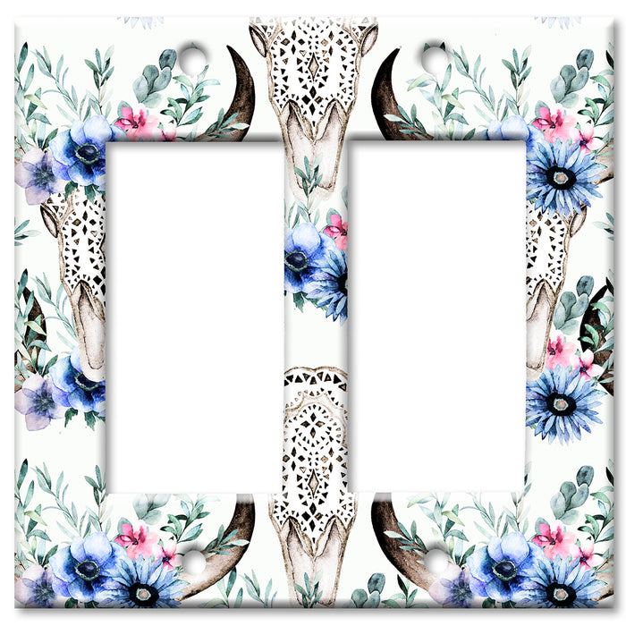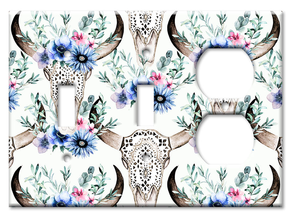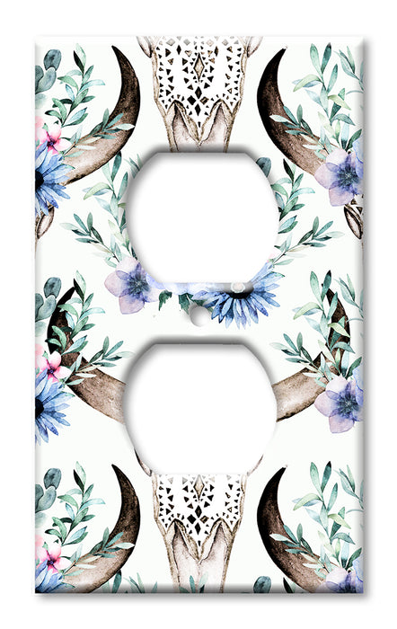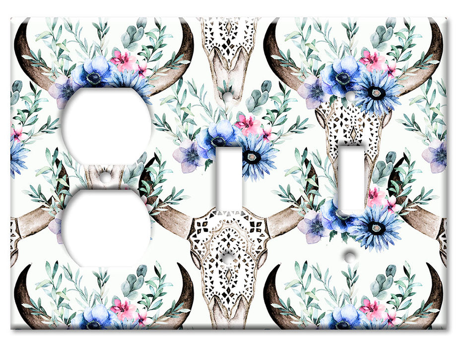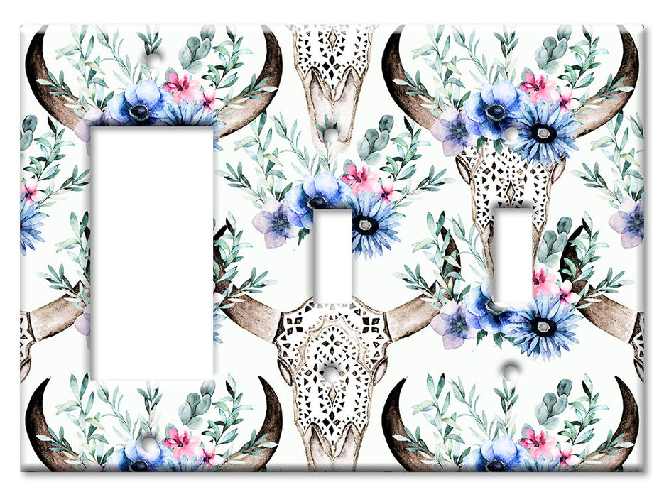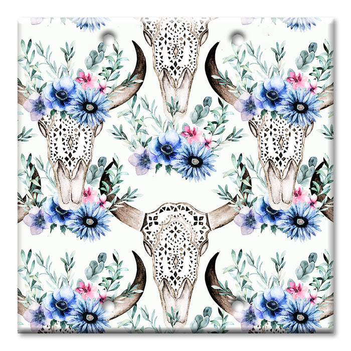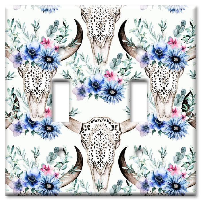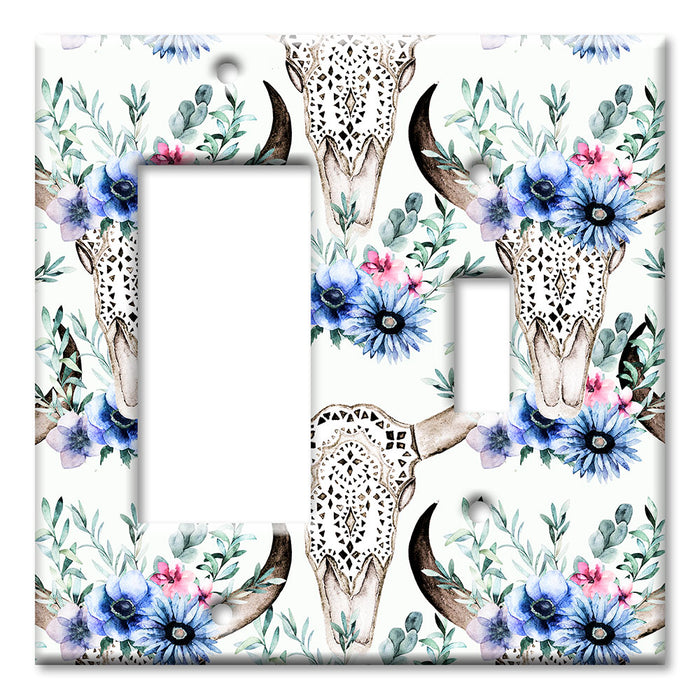 Decorative Printed OVERSIZED Switch Plate - Electrical Switch Cover JUMBO Wall Plate by Art Plates - Bull Skull and Blue Flowers - 1 Gang Toggle