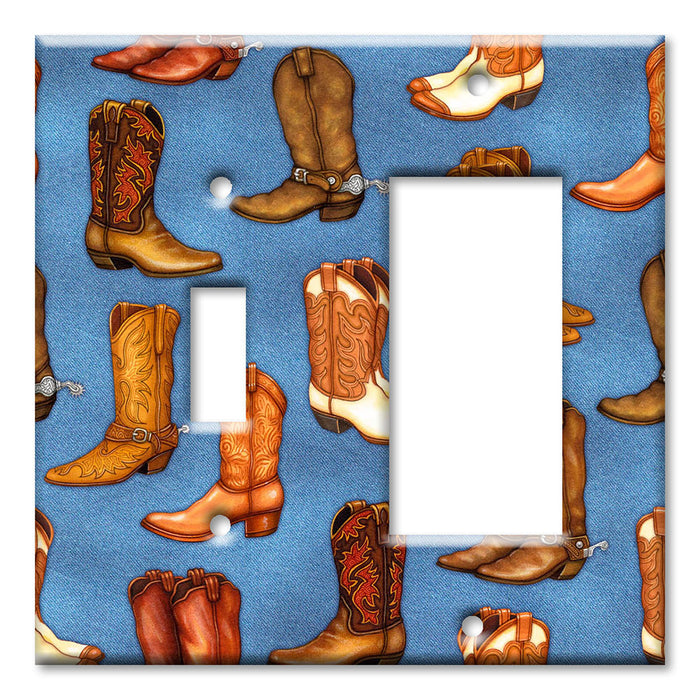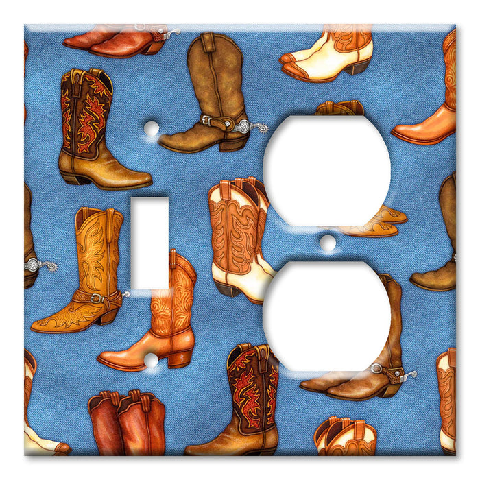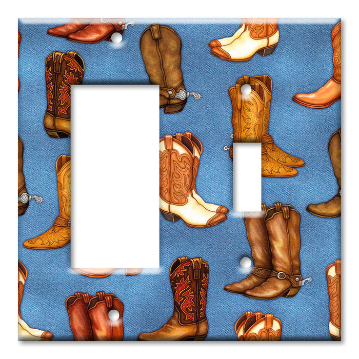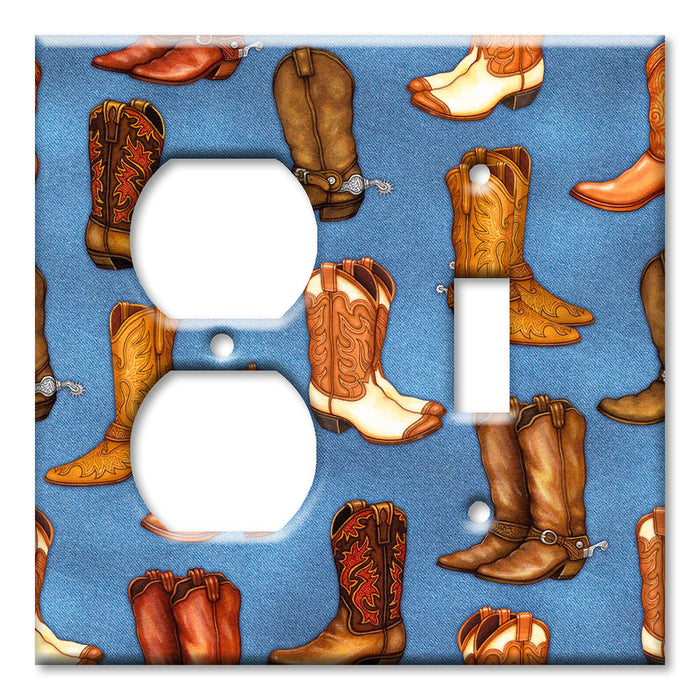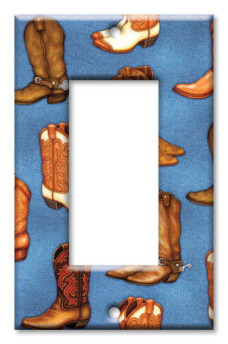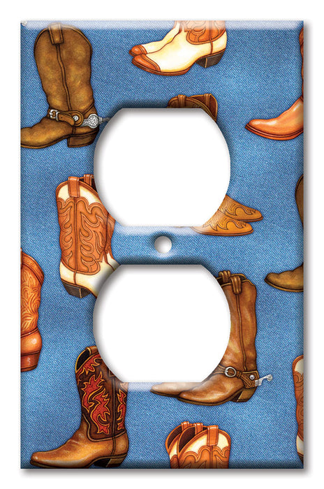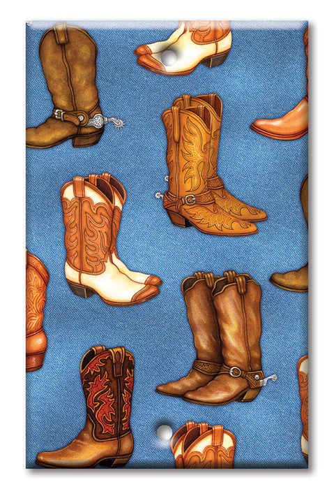 Decorative Printed OVERSIZED Switch Plate - Electrical Switch Cover JUMBO Wall Plate by Art Plates - Cowboy Boots (Denim) - Image by Dan Morris - 1 Gang Toggle