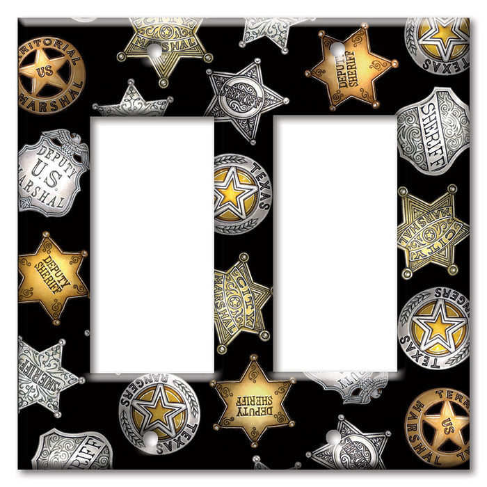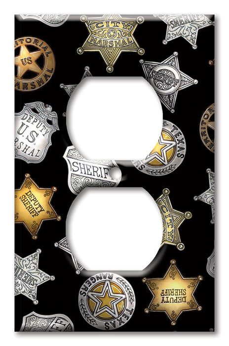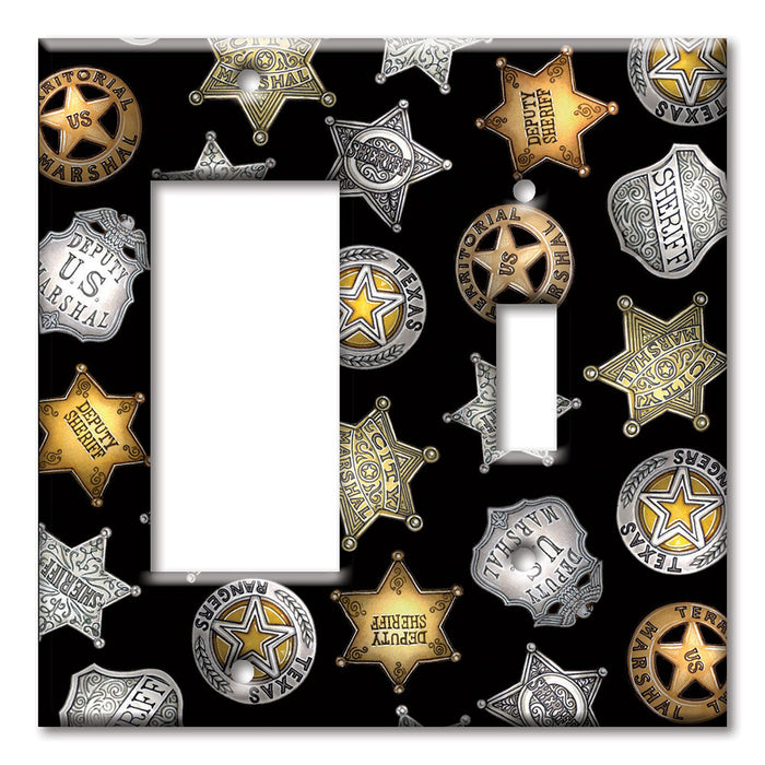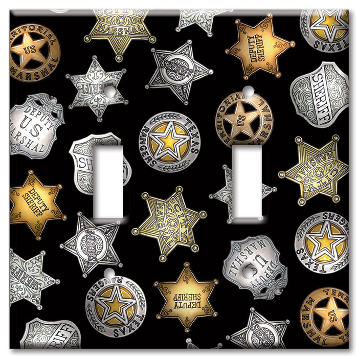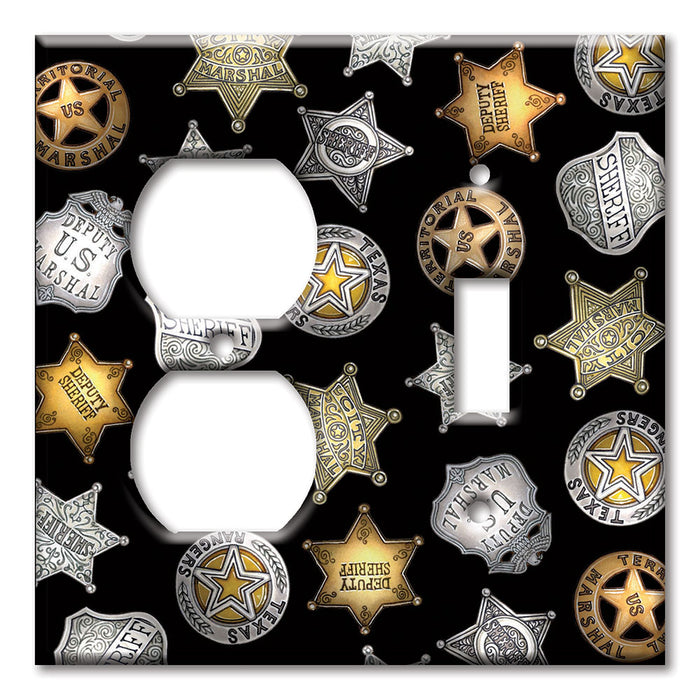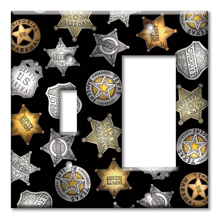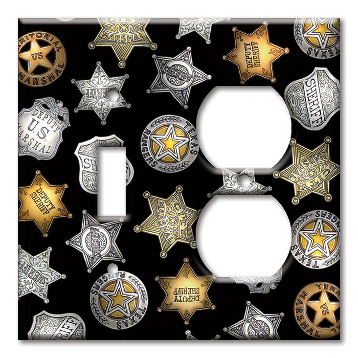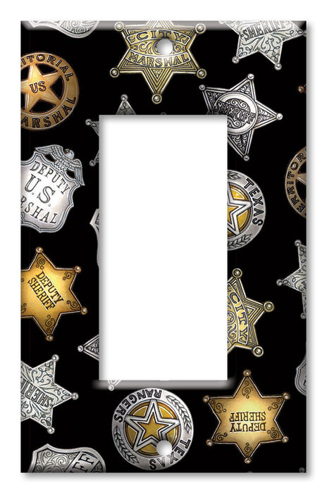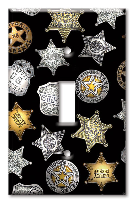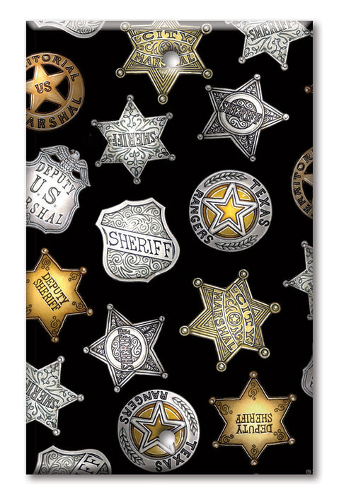 Decorative Printed OVERSIZED Switch Plate - Electrical Switch Cover JUMBO Wall Plate by Art Plates - Sheriff Badges (Black) - Image by Dan Morris - 1 Gang Toggle