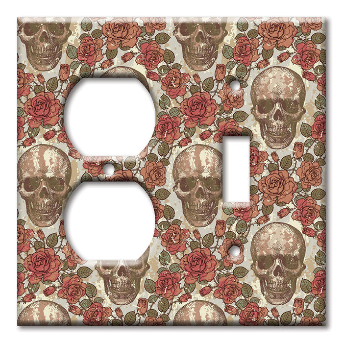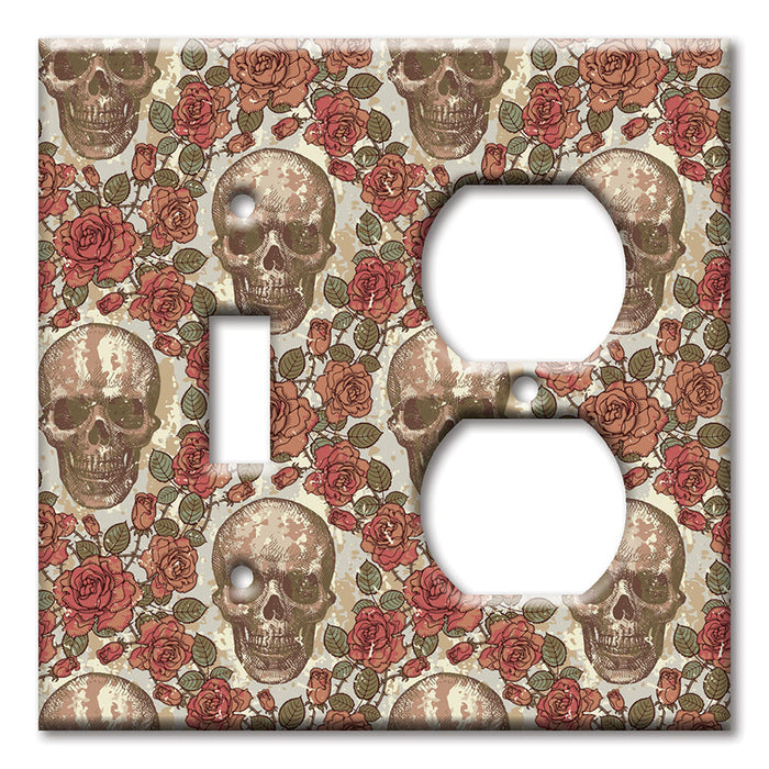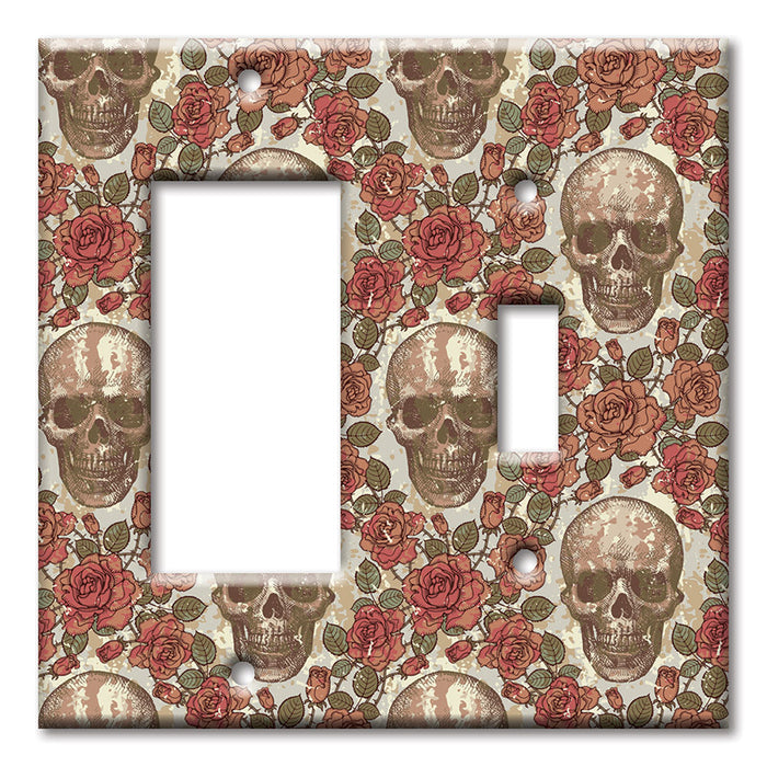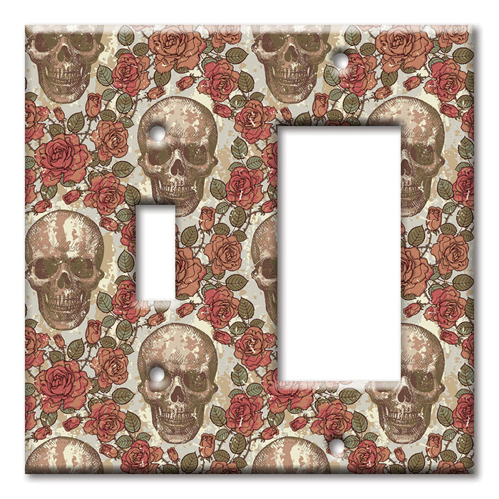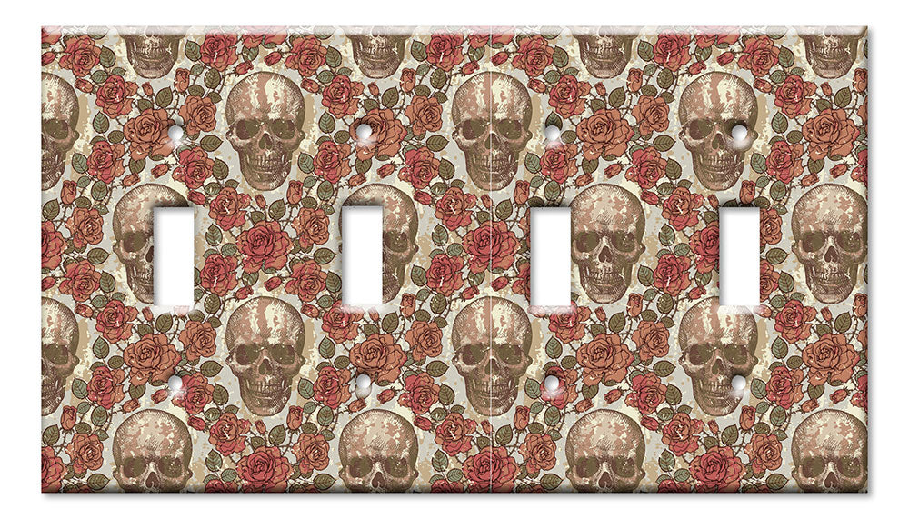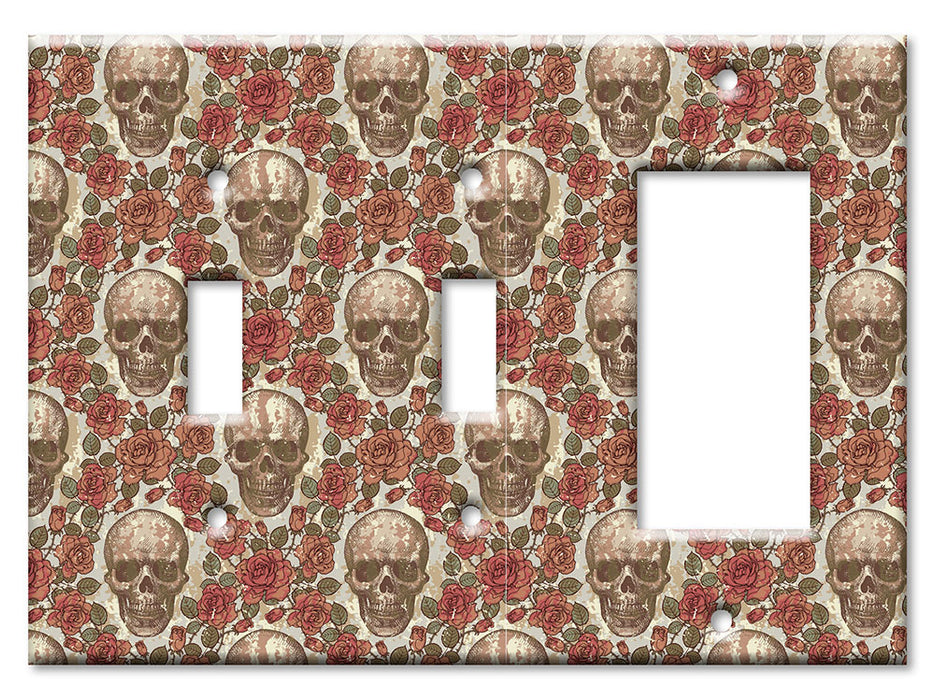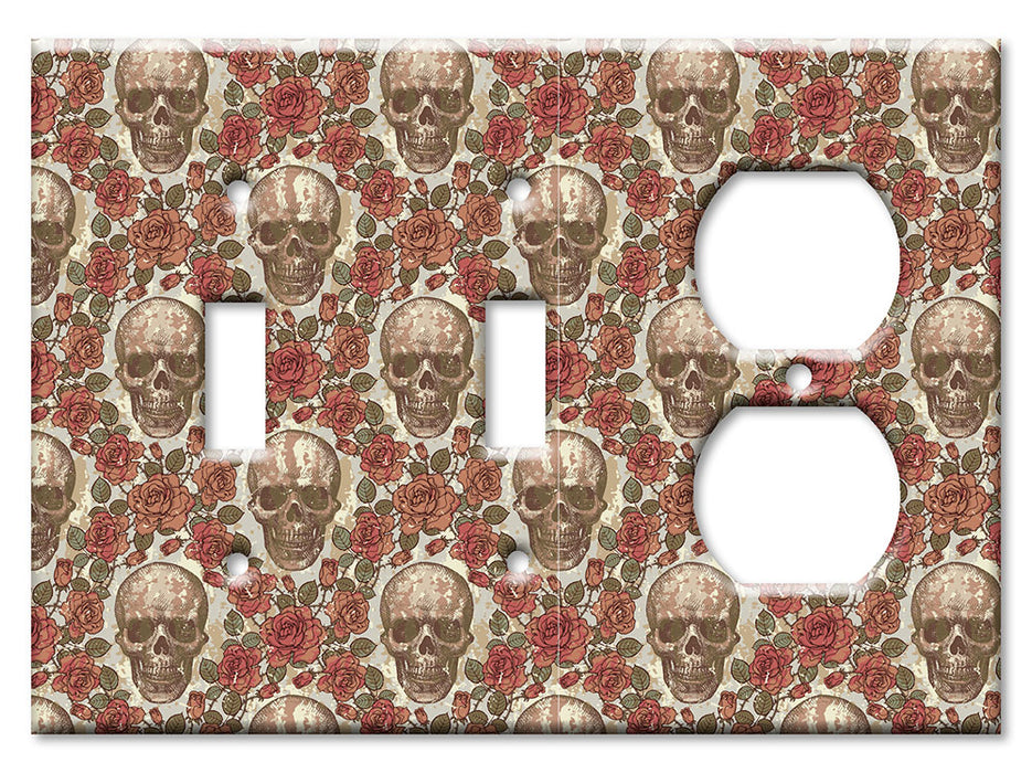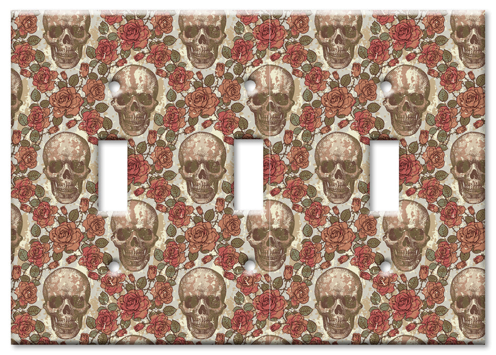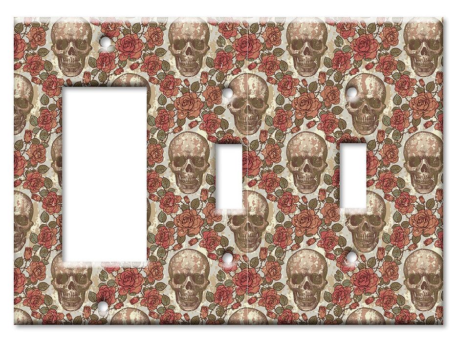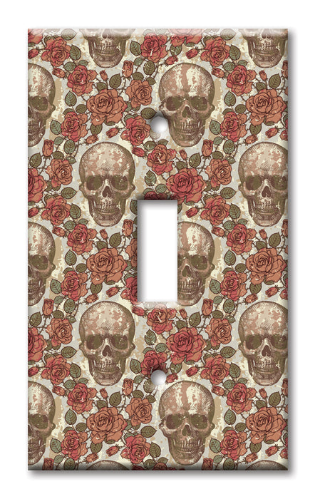 Decorative Printed OVERSIZED Switch Plate - Electrical Switch Cover JUMBO Wall Plate by Art Plates - Skulls and Roses - 1 Gang Toggle