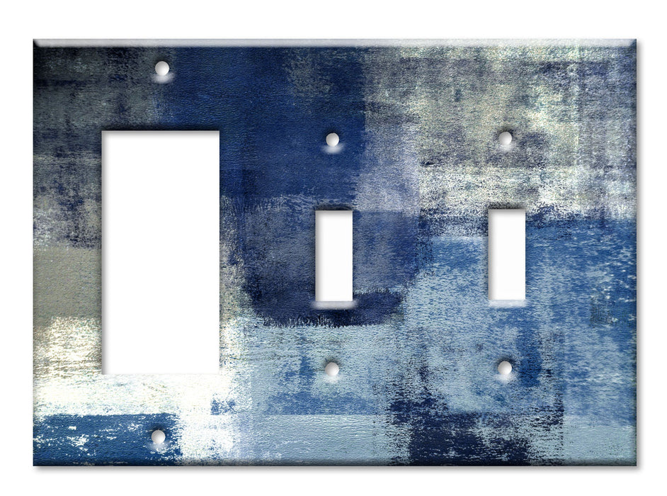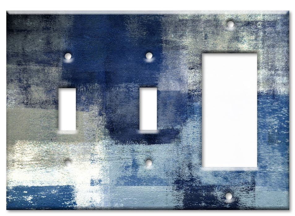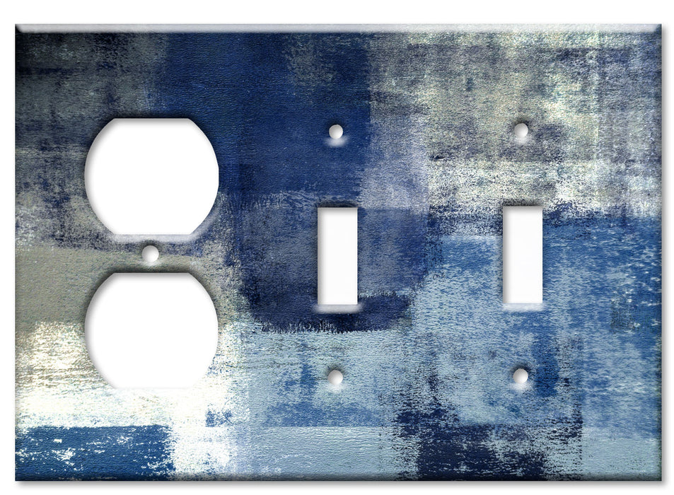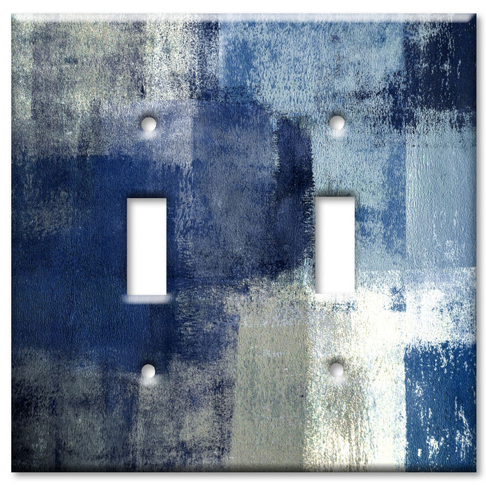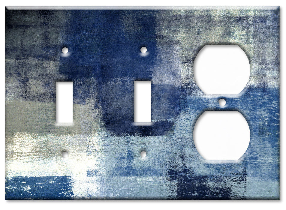 Decorative Printed OVERSIZED Switch Plate - Electrical Switch Cover JUMBO Wall Plate by Art Plates - Blue and Grey Abstract Art - 2 Gang Toggle