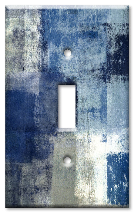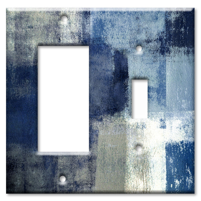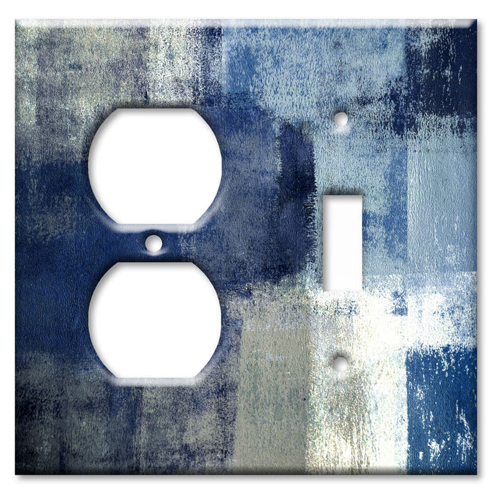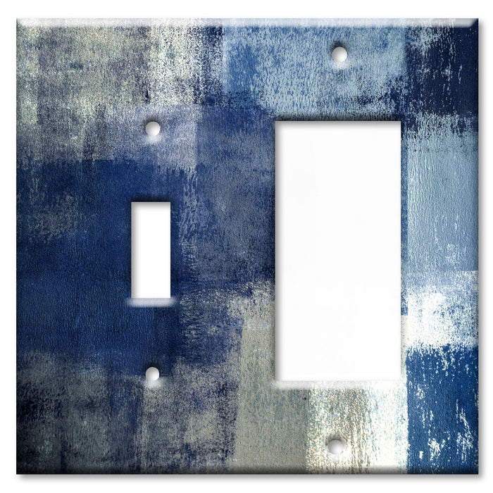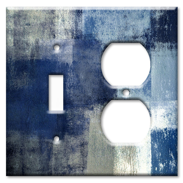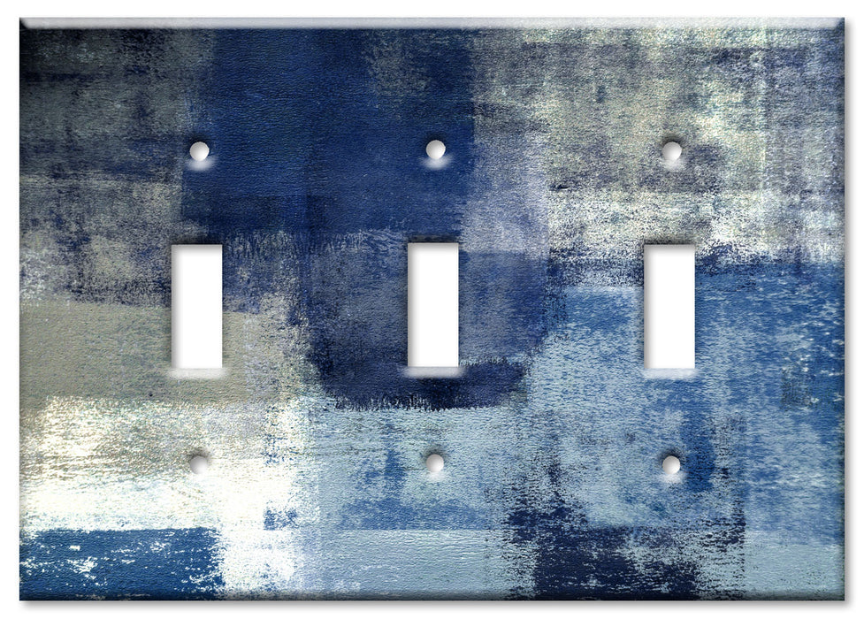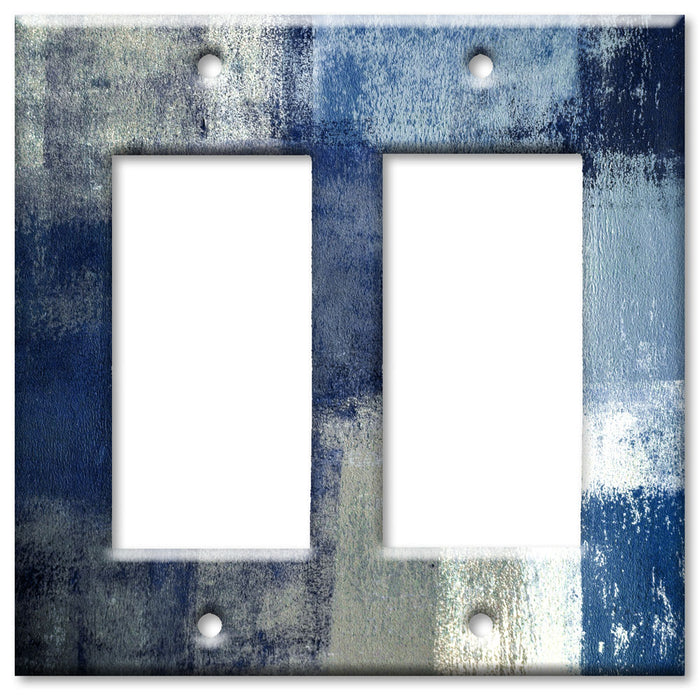 Decorative Printed OVERSIZED Switch Plate - Electrical Switch Cover JUMBO Wall Plate by Art Plates - Blue and Grey Abstract Art - 2 Gang Toggle