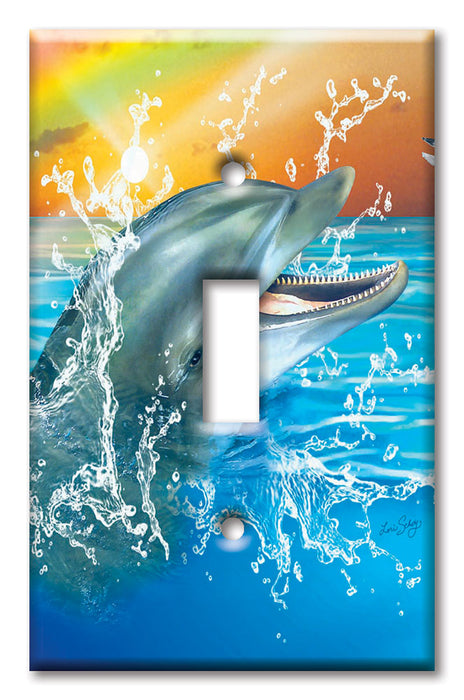 Decorative Printed OVERSIZED Switch Plate - Electrical Switch Cover JUMBO Wall Plate by Art Plates - Dolphin - 1 Gang Toggle