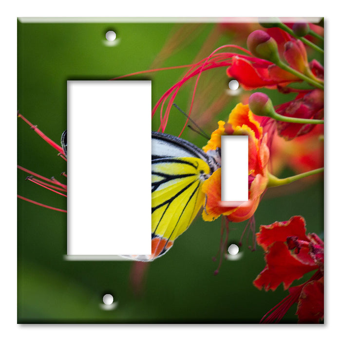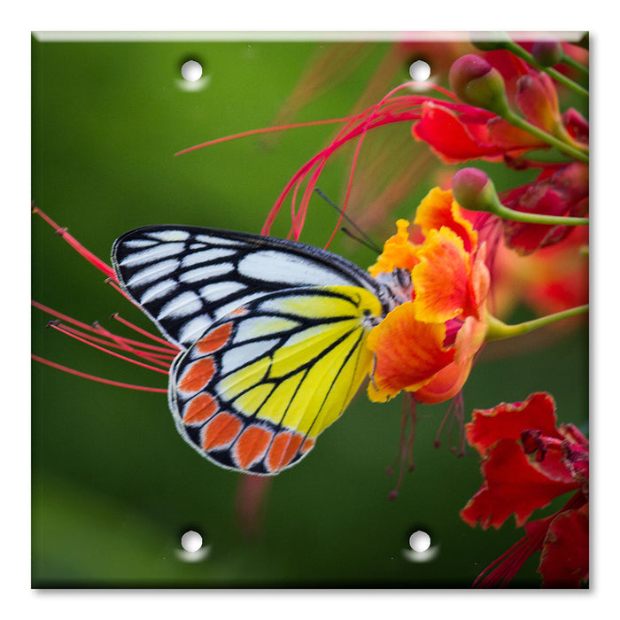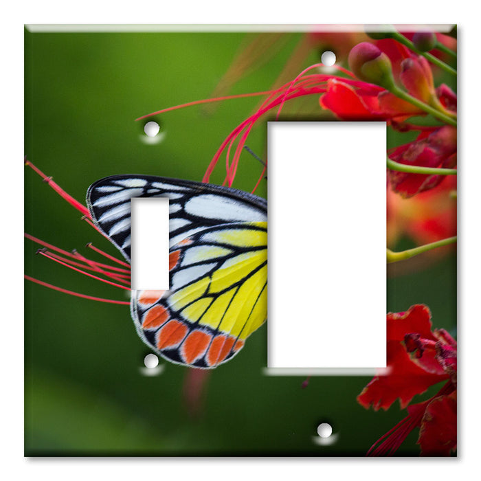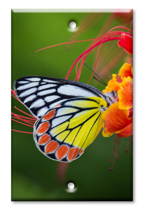 Decorative Printed OVERSIZED Switch Plate - Electrical Switch Cover JUMBO Wall Plate by Art Plates - Yellow and White Butterfly - 1 Gang Toggle