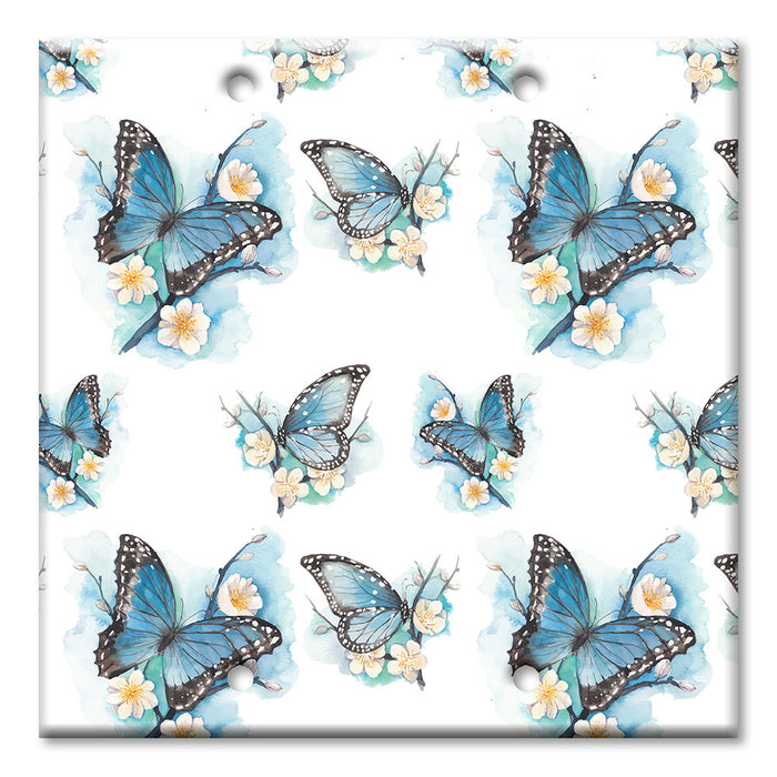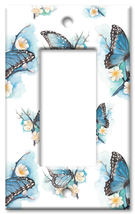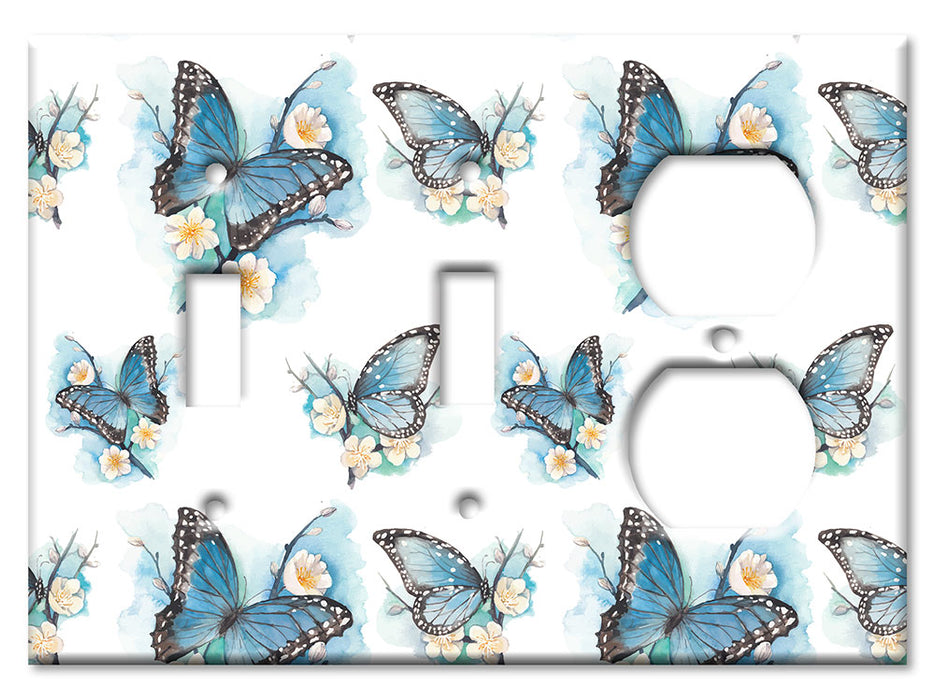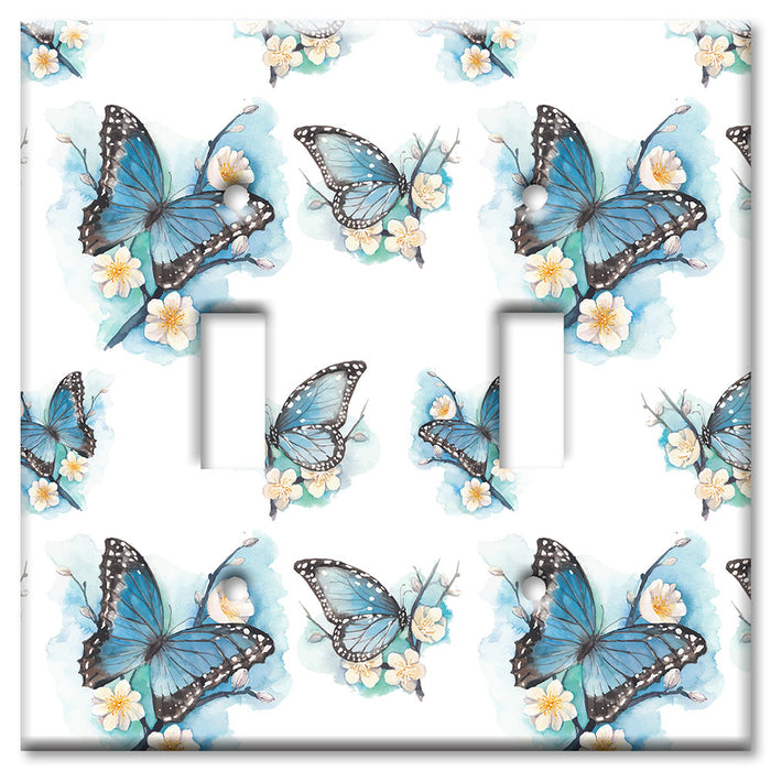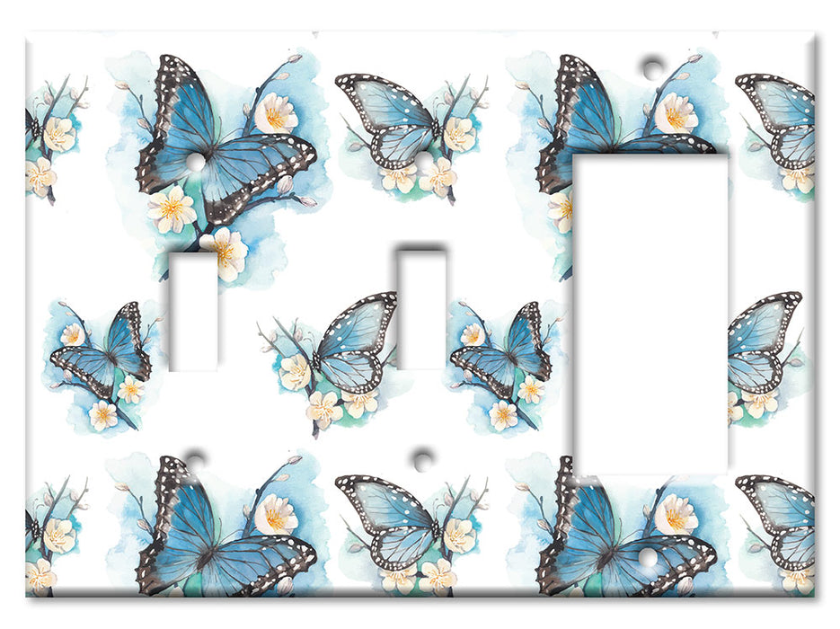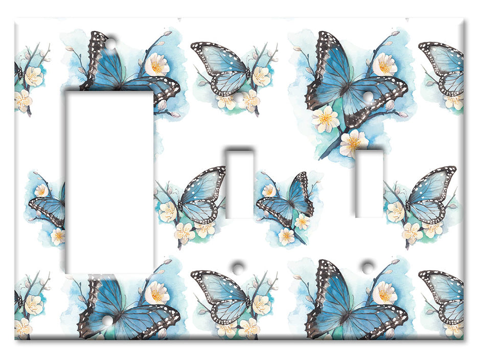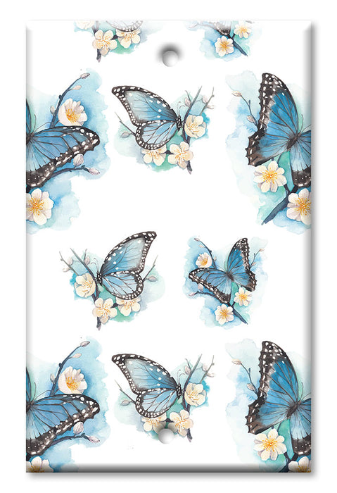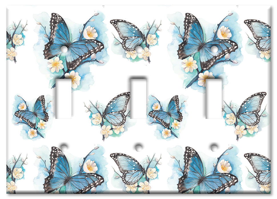Decorative Printed OVERSIZED Switch Plate - Electrical Switch Cover JUMBO Wall Plate by Art Plates - Blue Butterflies on White Flowers - 1 Gang Toggle