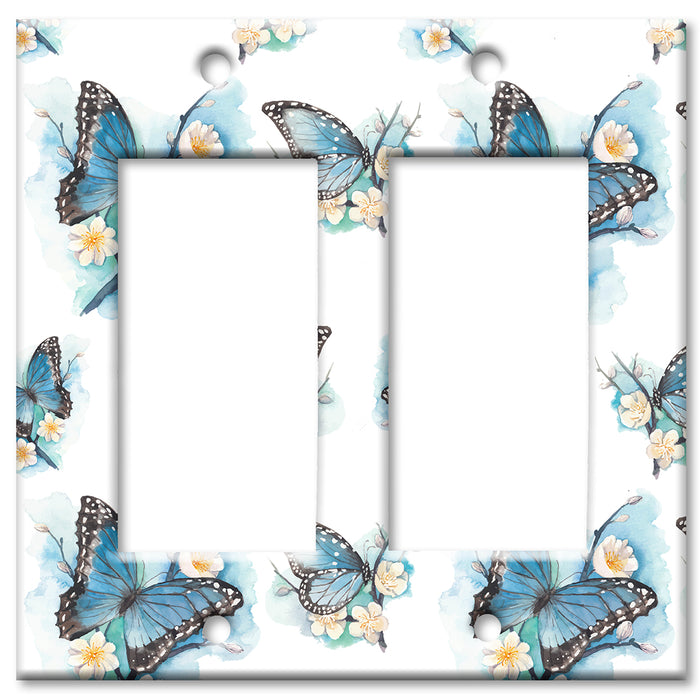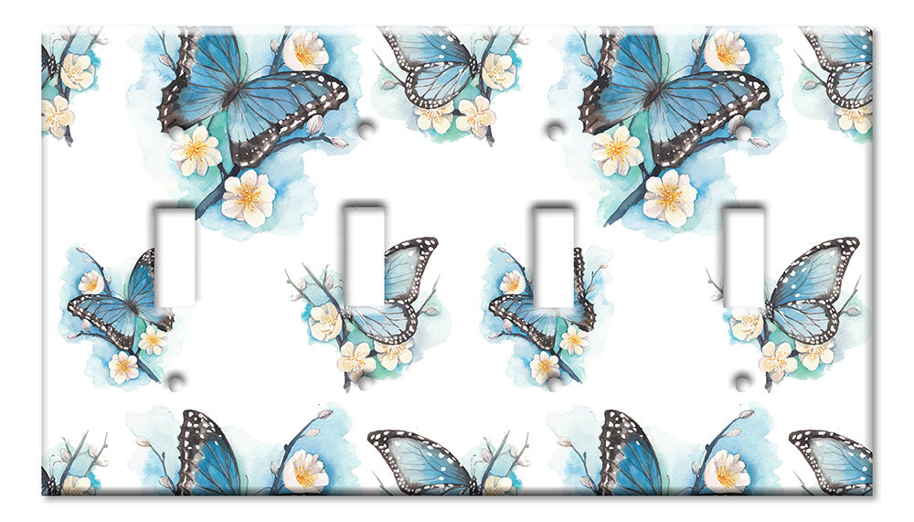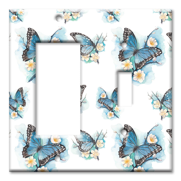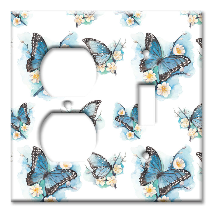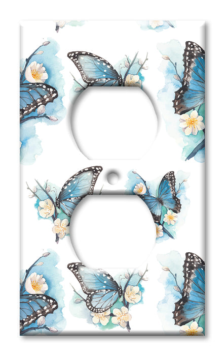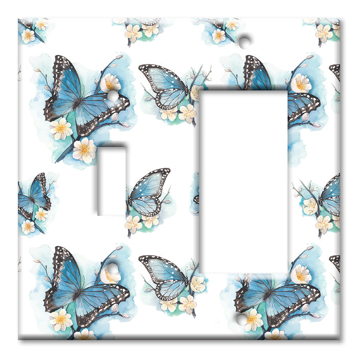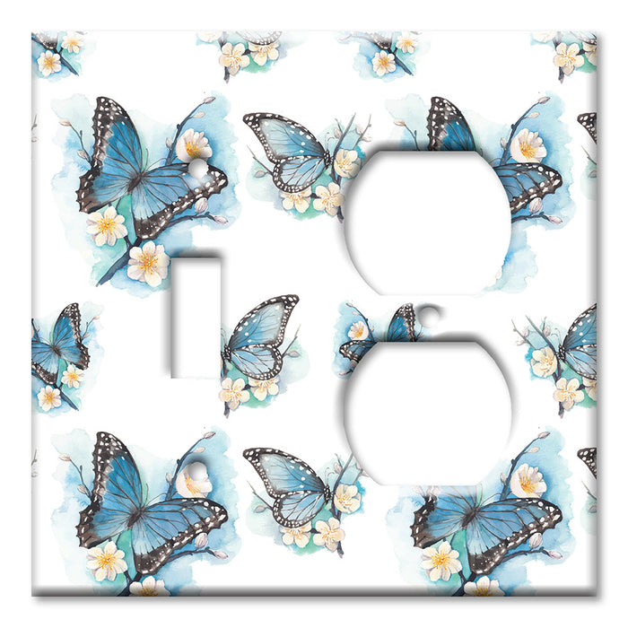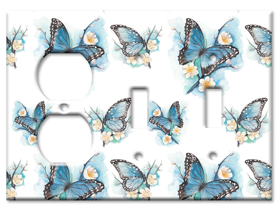 Decorative Printed OVERSIZED Switch Plate - Electrical Switch Cover JUMBO Wall Plate by Art Plates - Blue Butterflies on White Flowers - 1 Gang Toggle