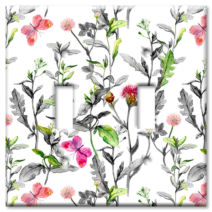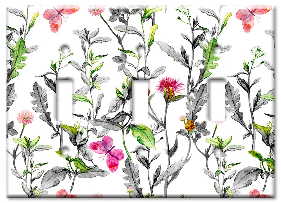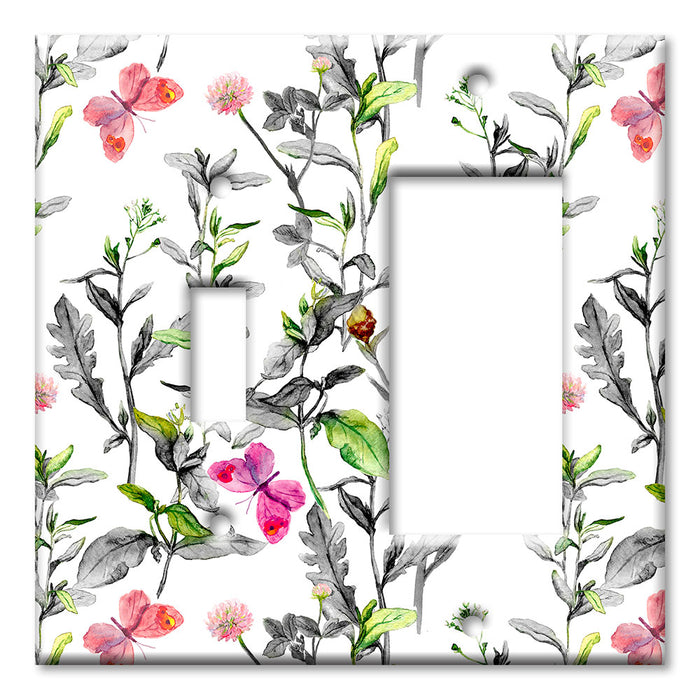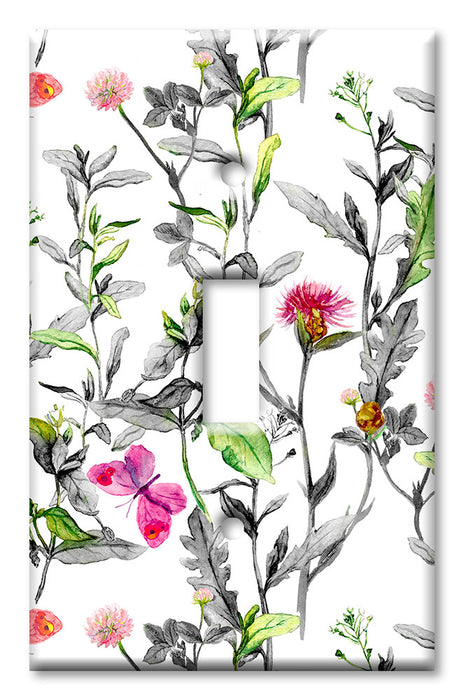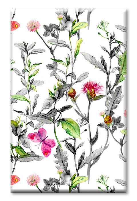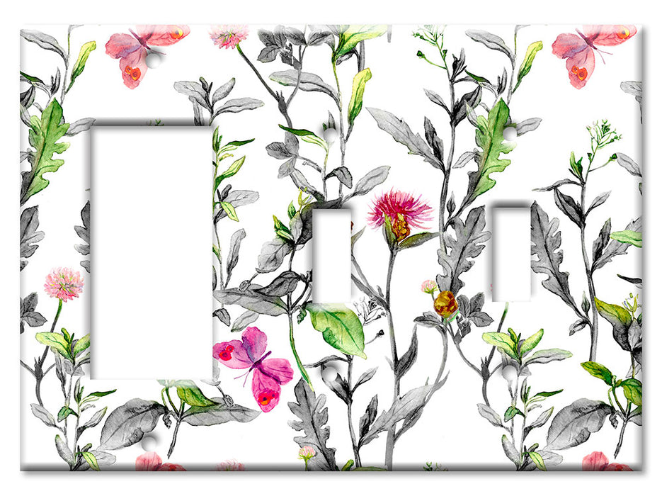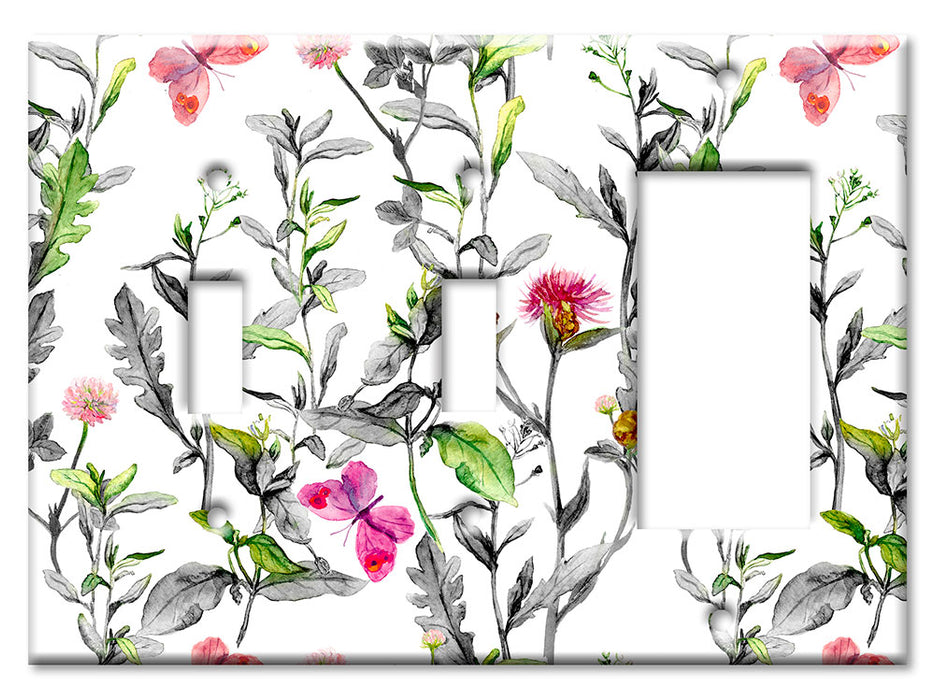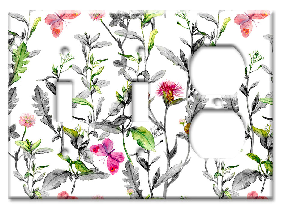 Decorative Printed OVERSIZED Switch Plate - Electrical Switch Cover JUMBO Wall Plate by Art Plates - Pink Butterflies on leaves - 1 Gang Toggle