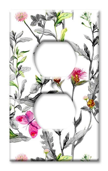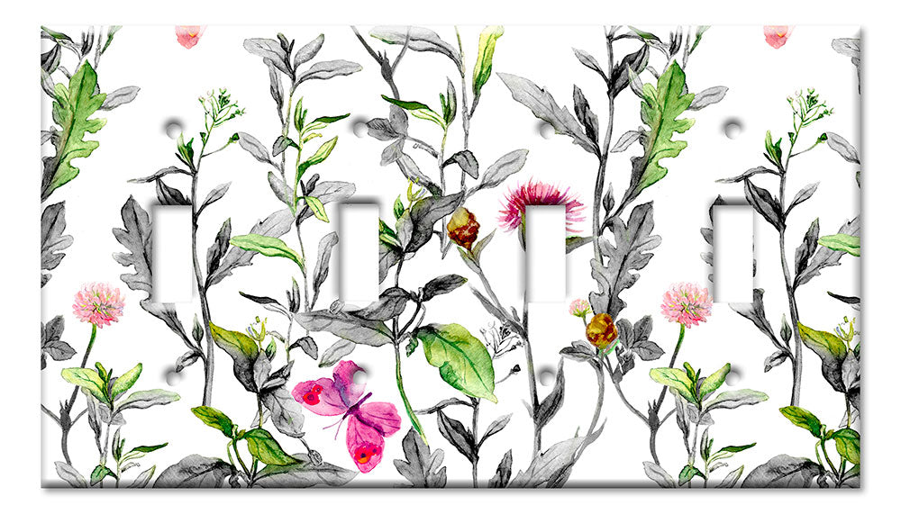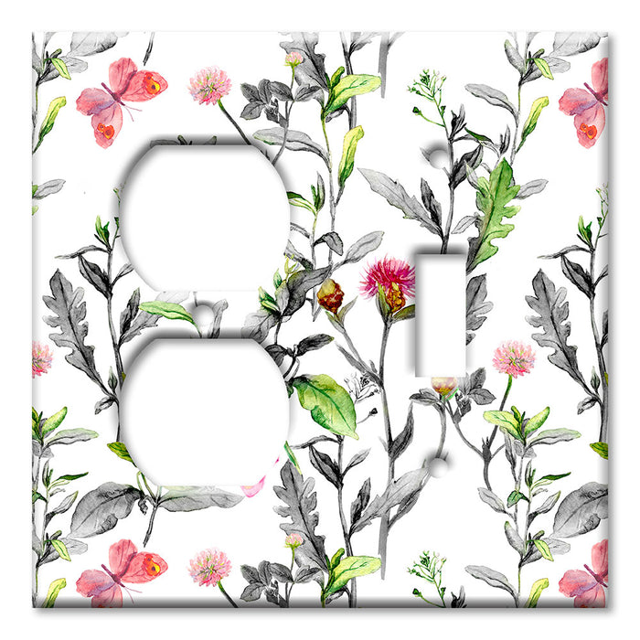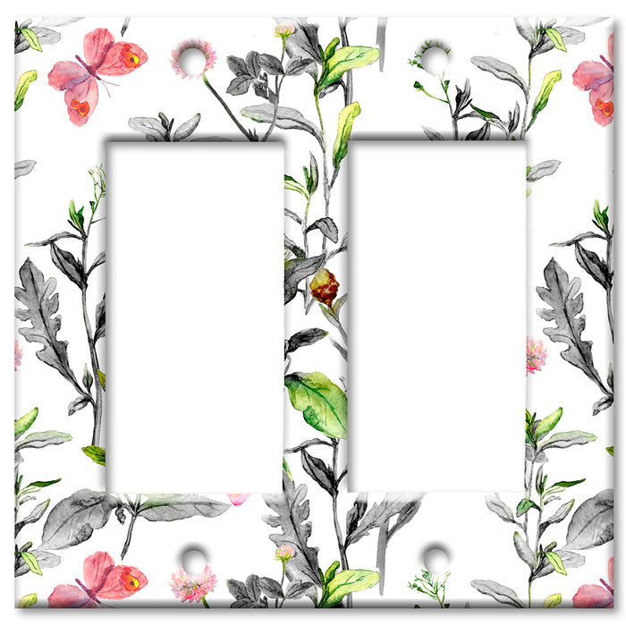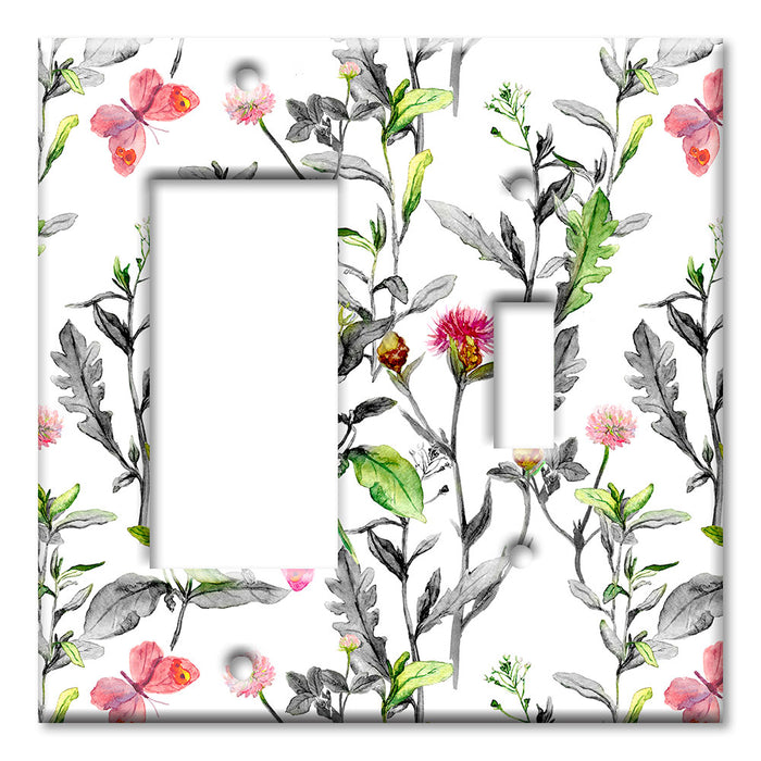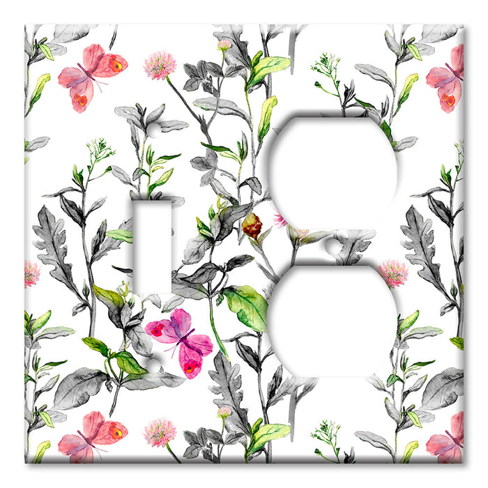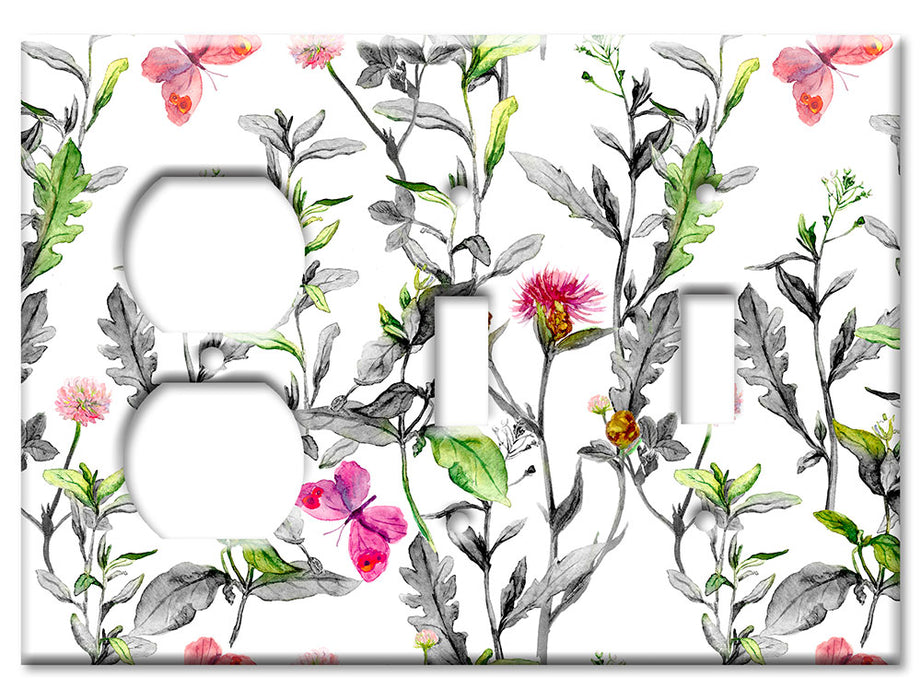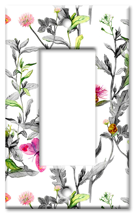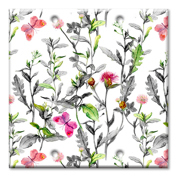 Decorative Printed OVERSIZED Switch Plate - Electrical Switch Cover JUMBO Wall Plate by Art Plates - Pink Butterflies on leaves - 1 Gang Toggle