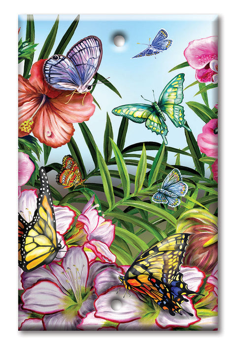 Art Plates - 1 Gang Toggle Jumbo Wall Plate / Switch Plate with colorful printed image. Art Plates Oversize switch plates are ideal for changing out boring plastic switch plates. Art Plates Jumbo switch plates and outlet covers are created using a special, high resolution, ultra violet printer that prints directly on our American made, heavy duty, metal switch plates. There simply are no other decorated switch plates available that can compare to the richness of color and resolution that Art Plates can achieve. Every oversize switch plate has a final UV cured high gloss finish. This creates an extremely durable shiny finish that also helps protect it from abrasions and scratches. Every over size switch plate comes color matched screws. All of our items are made in the USA.