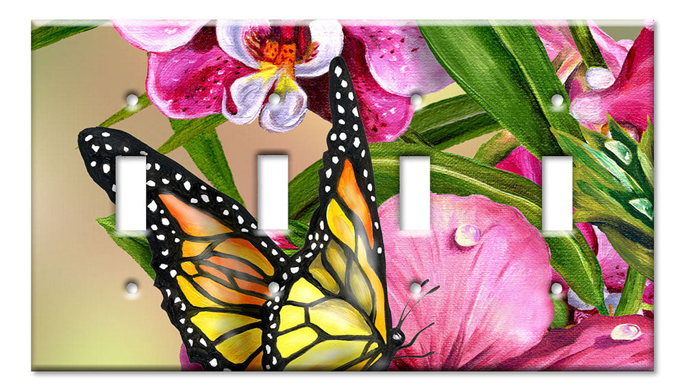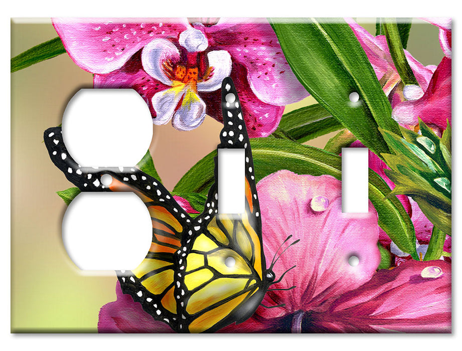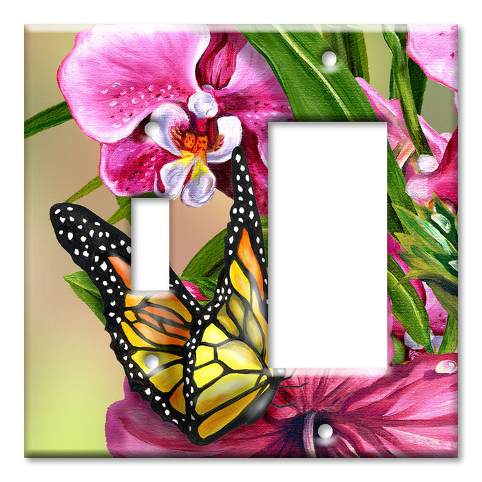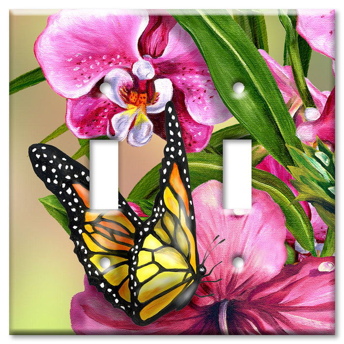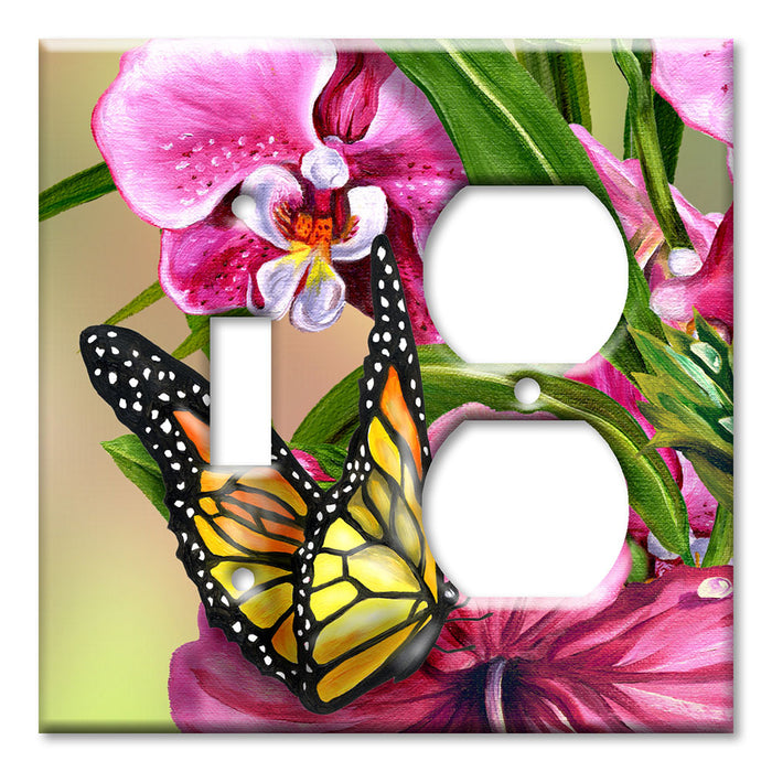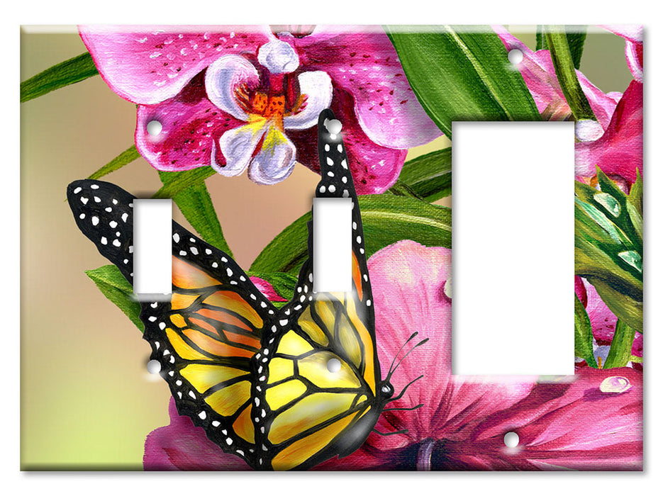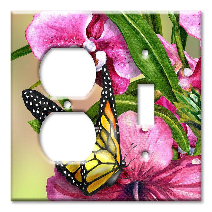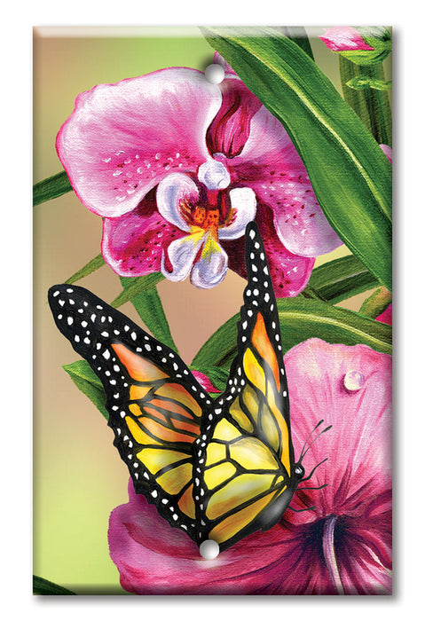 Decorative Printed OVERSIZED Switch Plate - Electrical Switch Cover JUMBO Wall Plate by Art Plates - Monarch and Flowers - 1 Gang Toggle