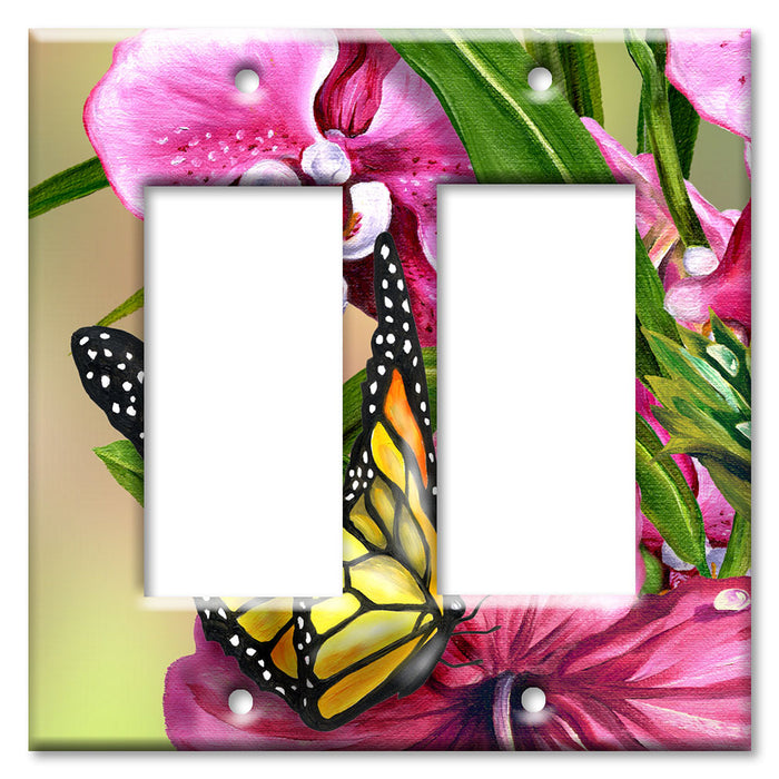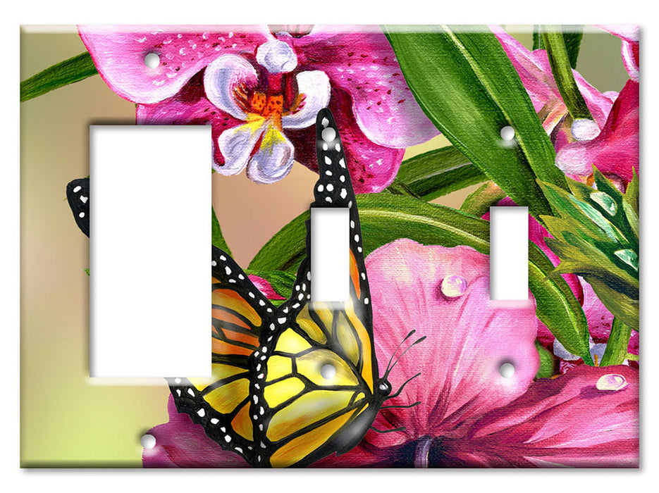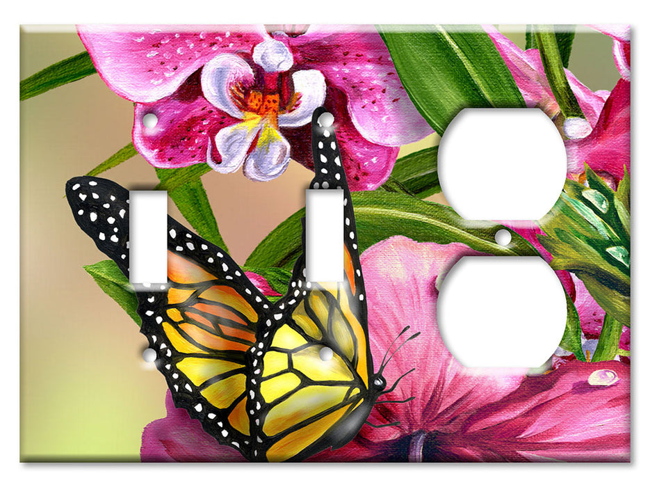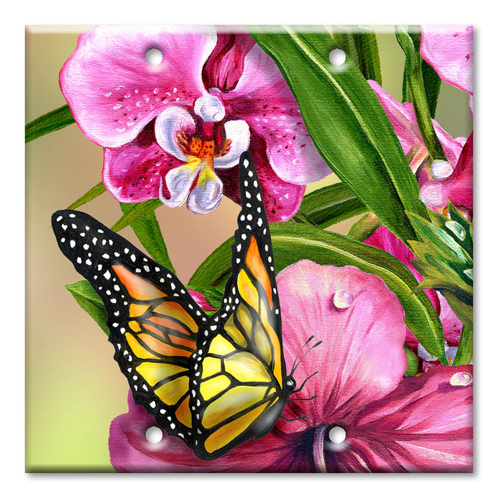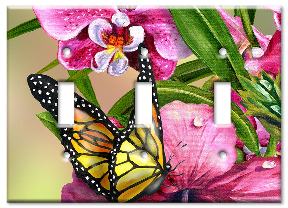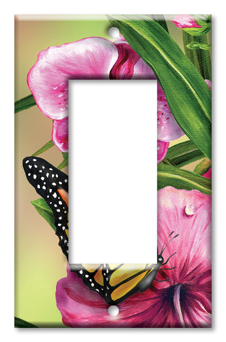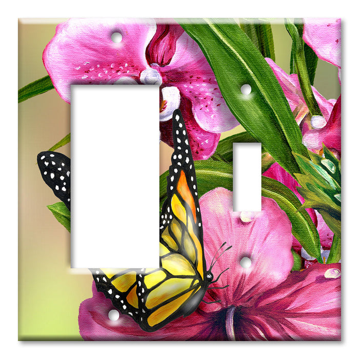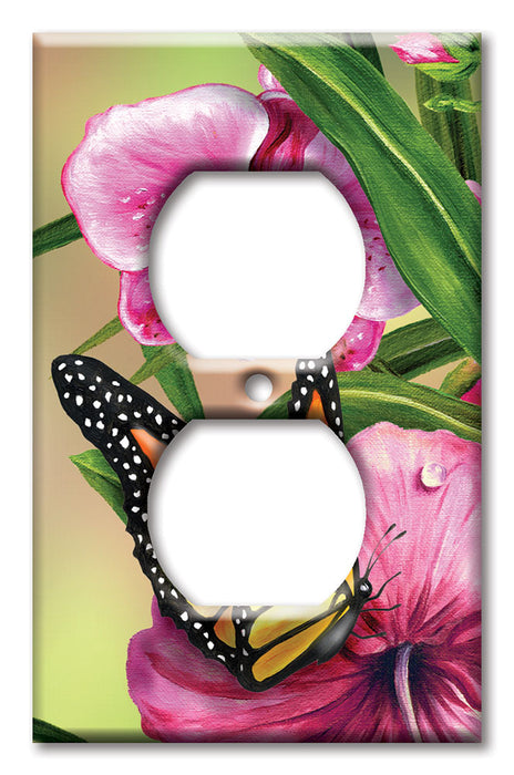 Decorative Printed OVERSIZED Switch Plate - Electrical Switch Cover JUMBO Wall Plate by Art Plates - Monarch and Flowers - 1 Gang Toggle