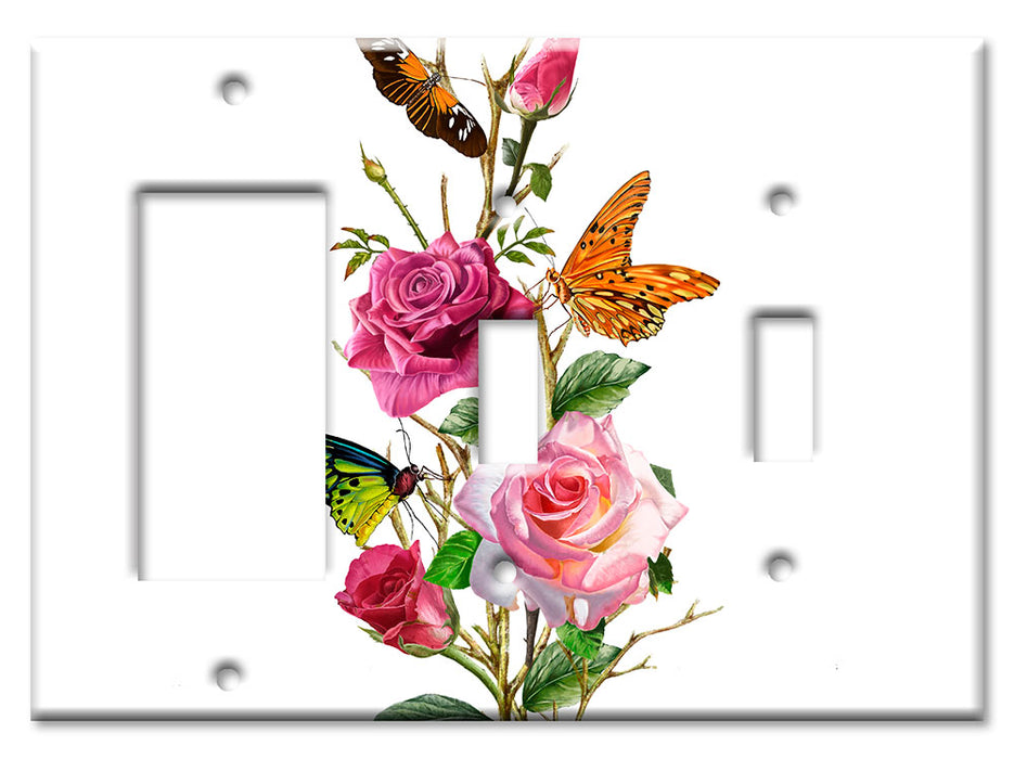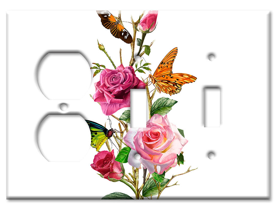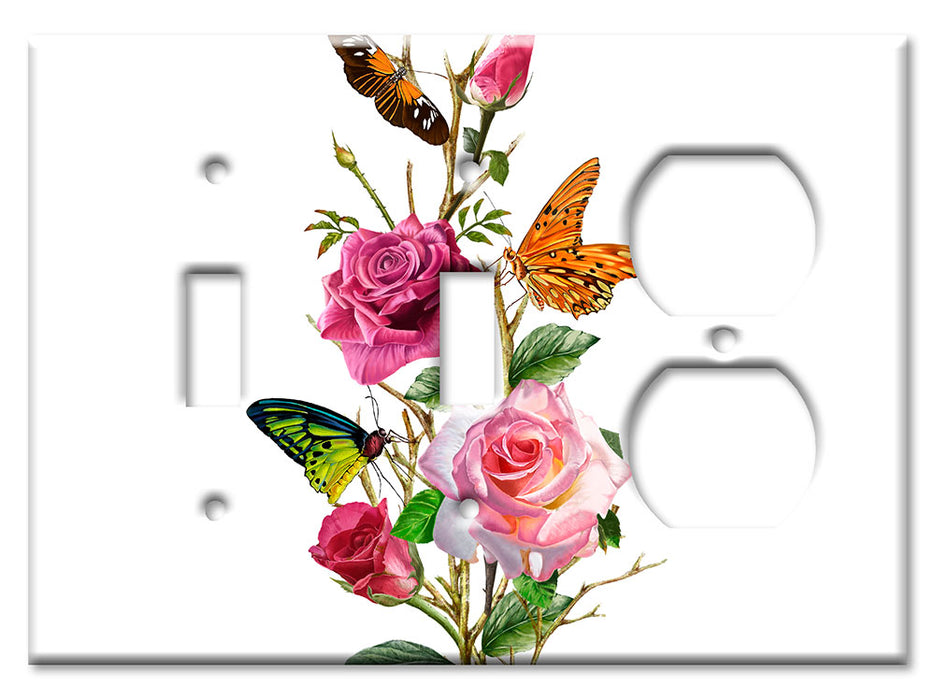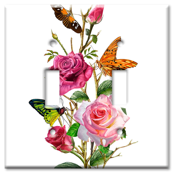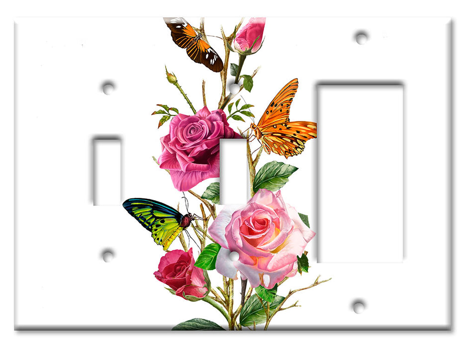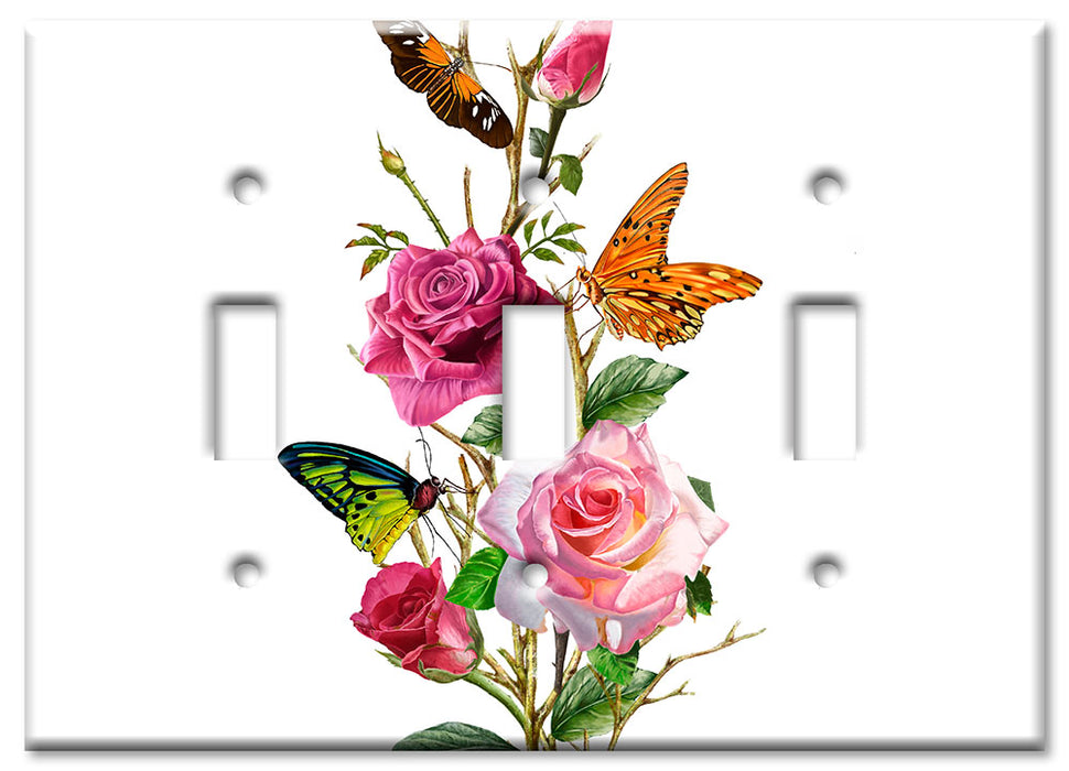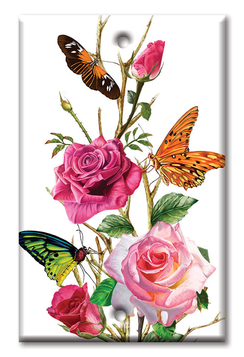 Decorative Printed OVERSIZED Switch Plate - Electrical Switch Cover JUMBO Wall Plate by Art Plates - Butterflies on Roses - 1 Gang Toggle
