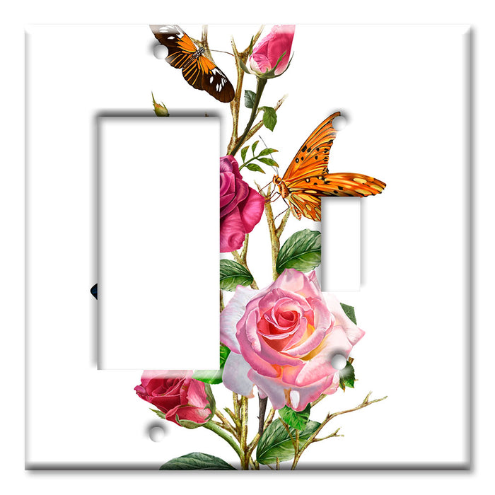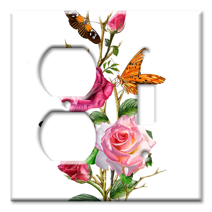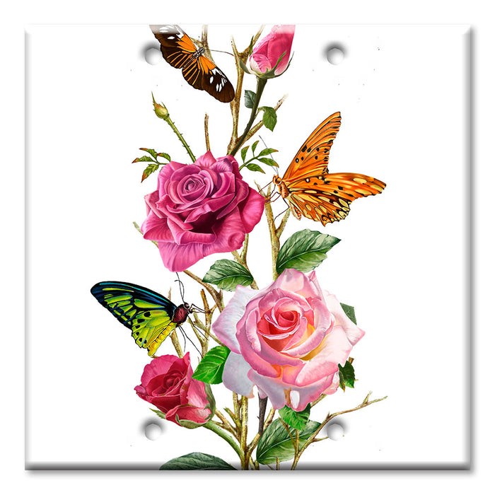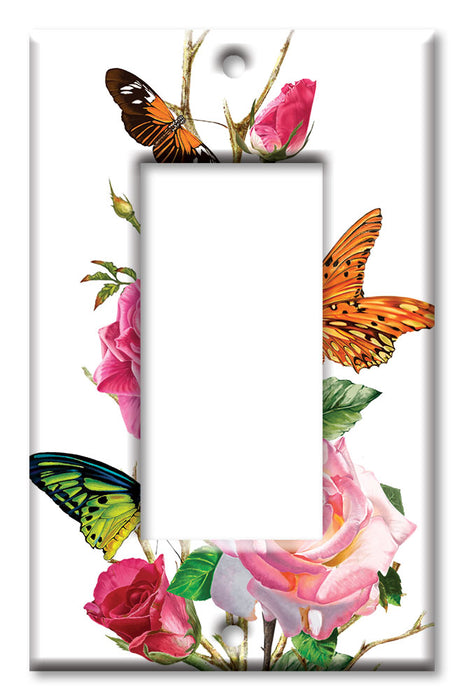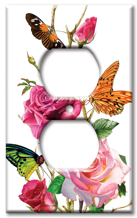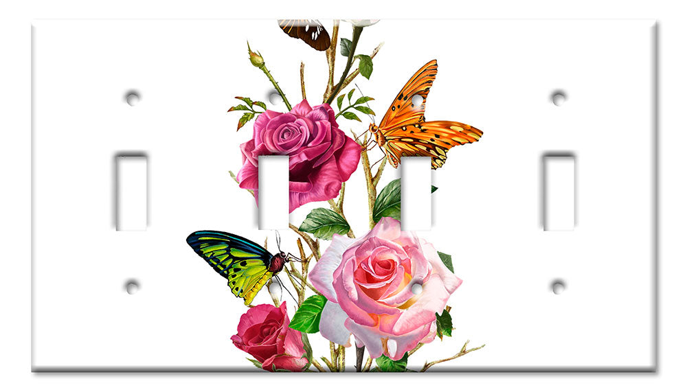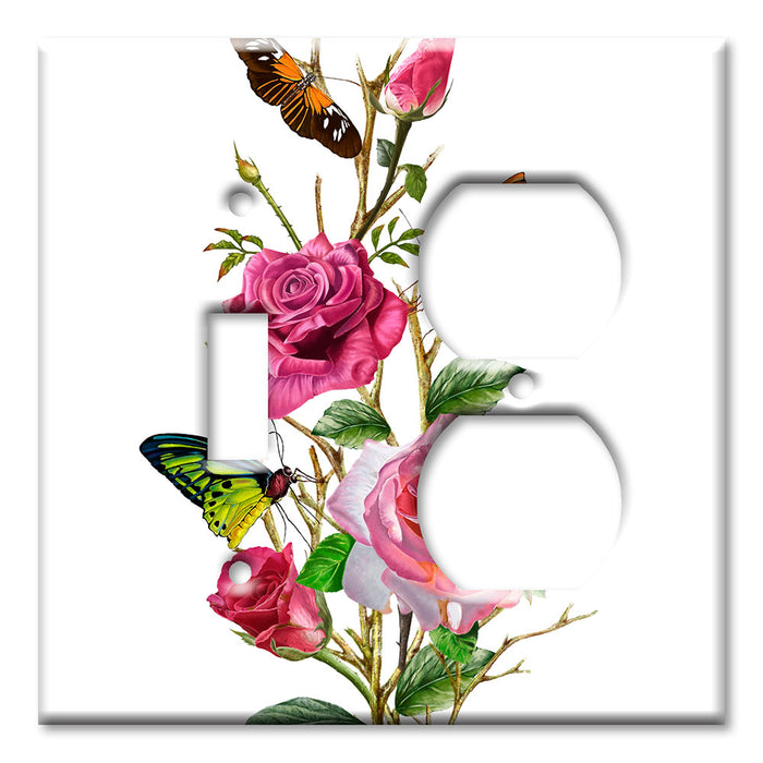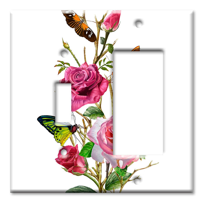 Decorative Printed OVERSIZED Switch Plate - Electrical Switch Cover JUMBO Wall Plate by Art Plates - Butterflies on Roses - 1 Gang Toggle