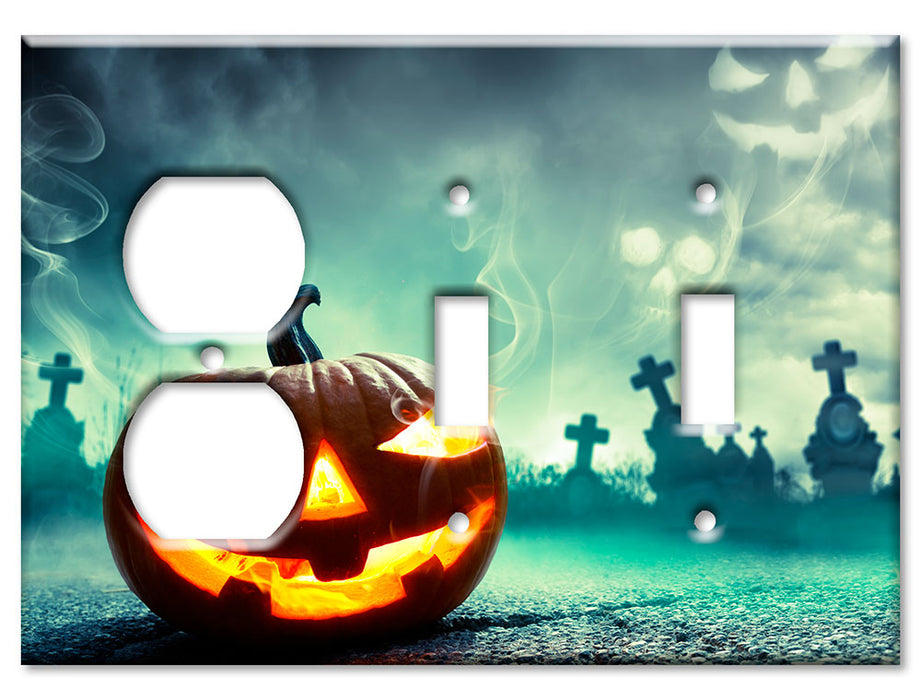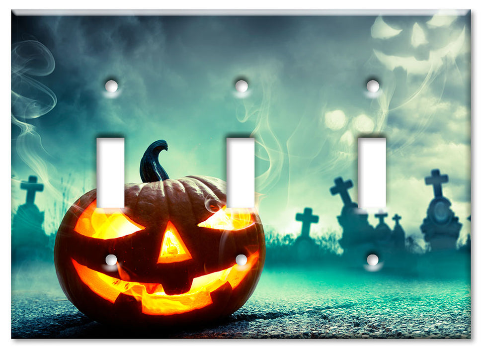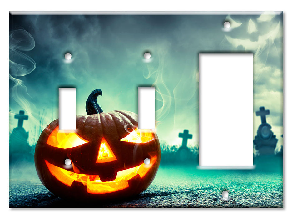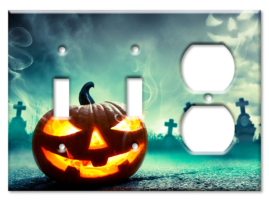 Decorative Printed OVERSIZED Switch Plate - Electrical Switch Cover JUMBO Wall Plate by Art Plates - Scary Jack Lantern - 2 Gang Toggle