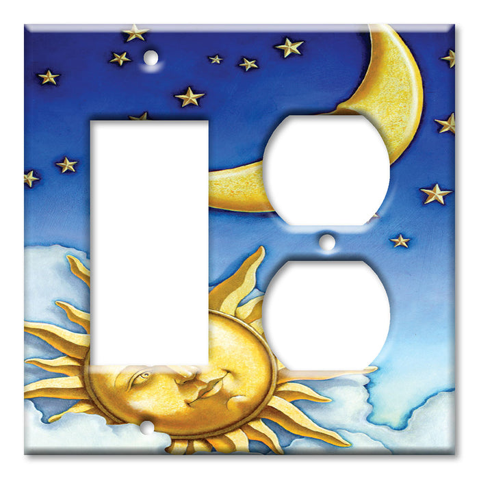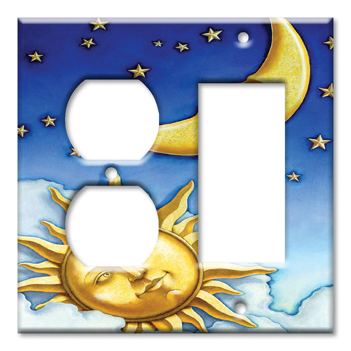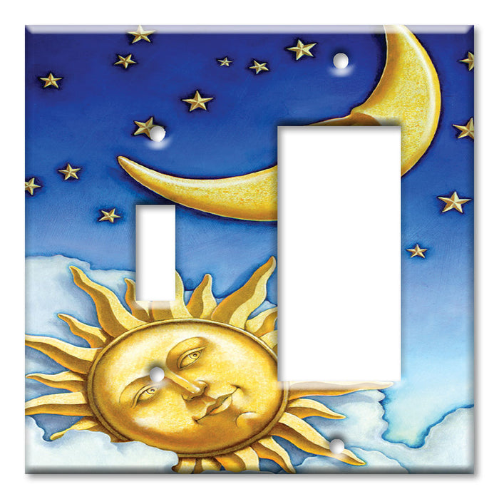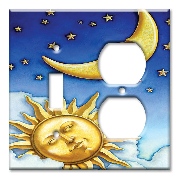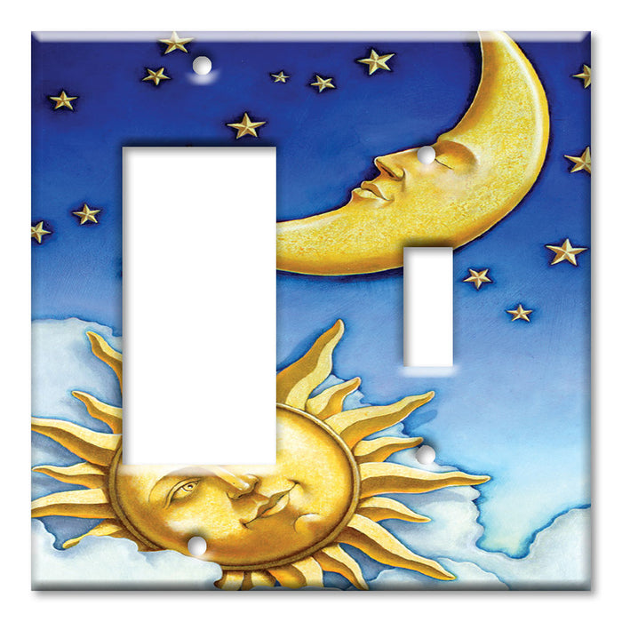 Decorative Printed Switch Plate - Electrical Switch Cover Wall Plate by Art Plates - Moon and Sun II - 2 Gang Blank
