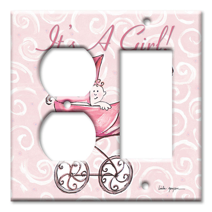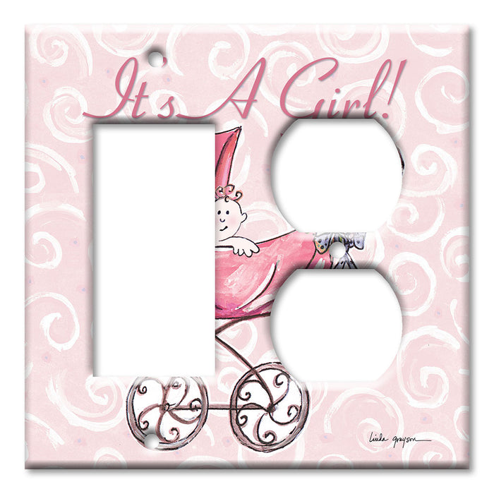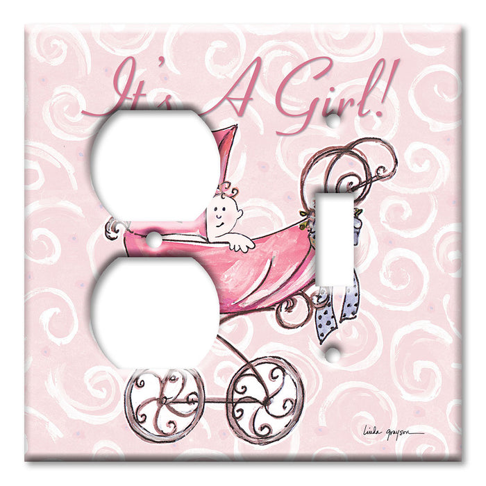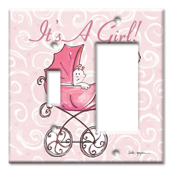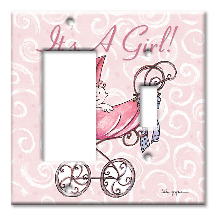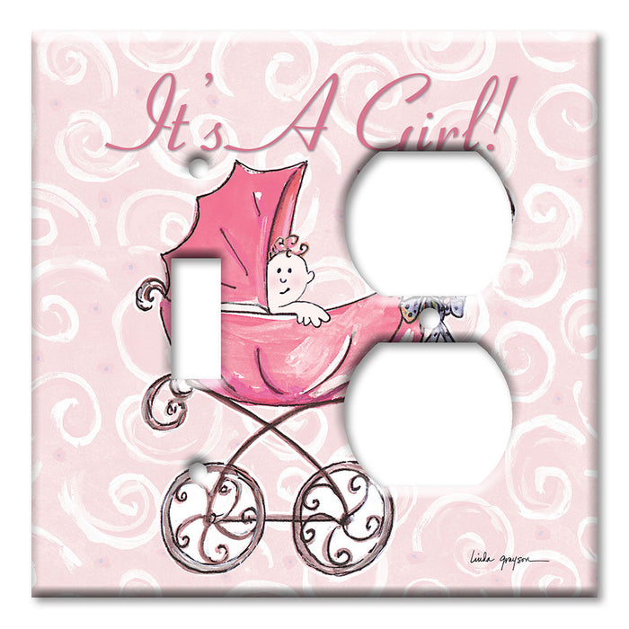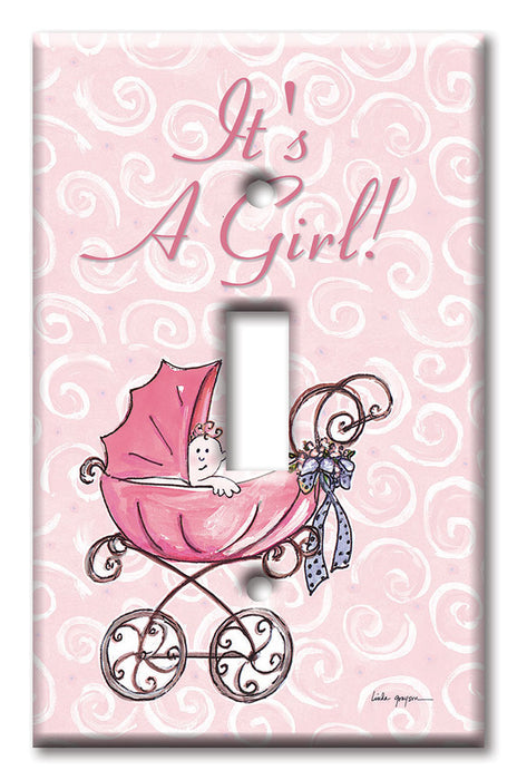 Decorative Printed Switch Plate - Electrical Switch Cover Wall Plate by Art Plates - It' A Girl: Carriage - 1 Gang Toggle