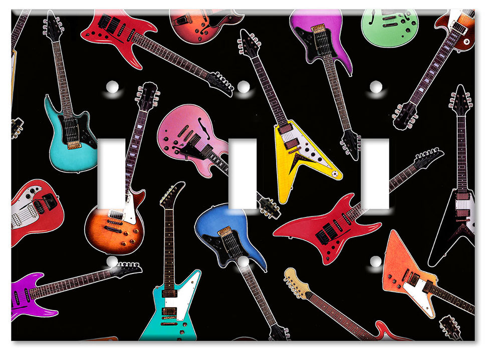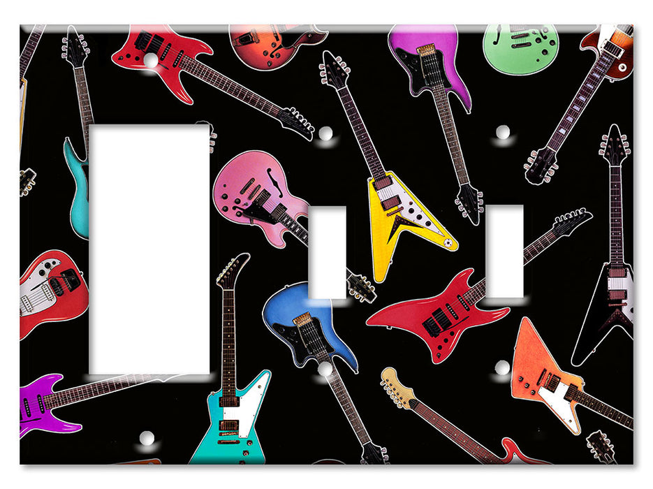 Decorative Printed Switch Plate - Electrical Switch Cover Wall Plate by Art Plates - Electric Guitars - Image by Dan Morris - 1 Gang Toggle