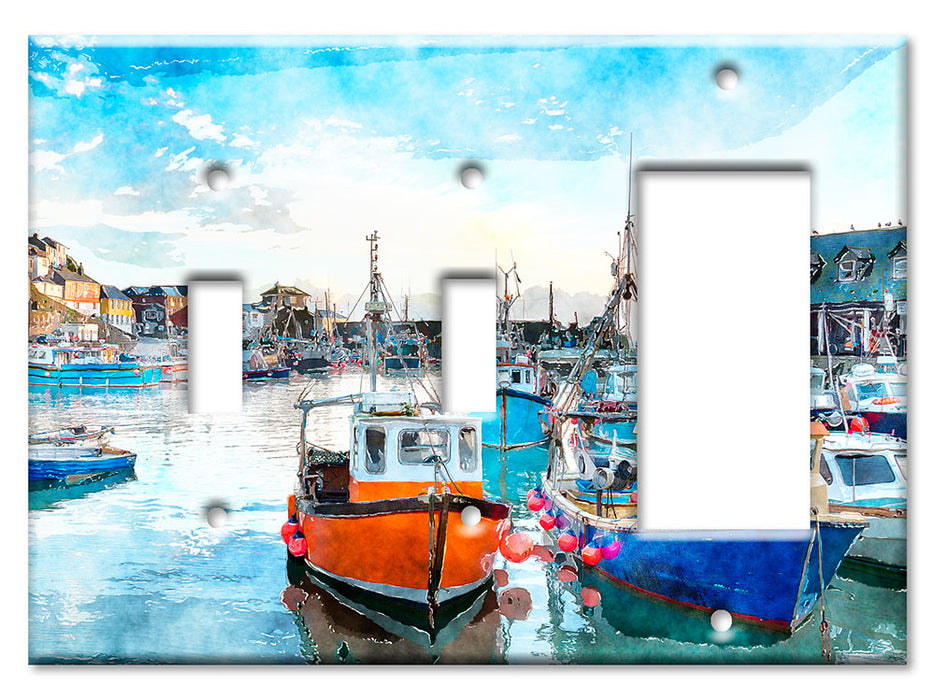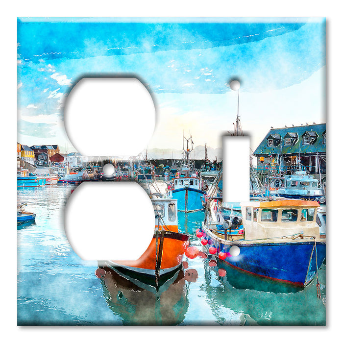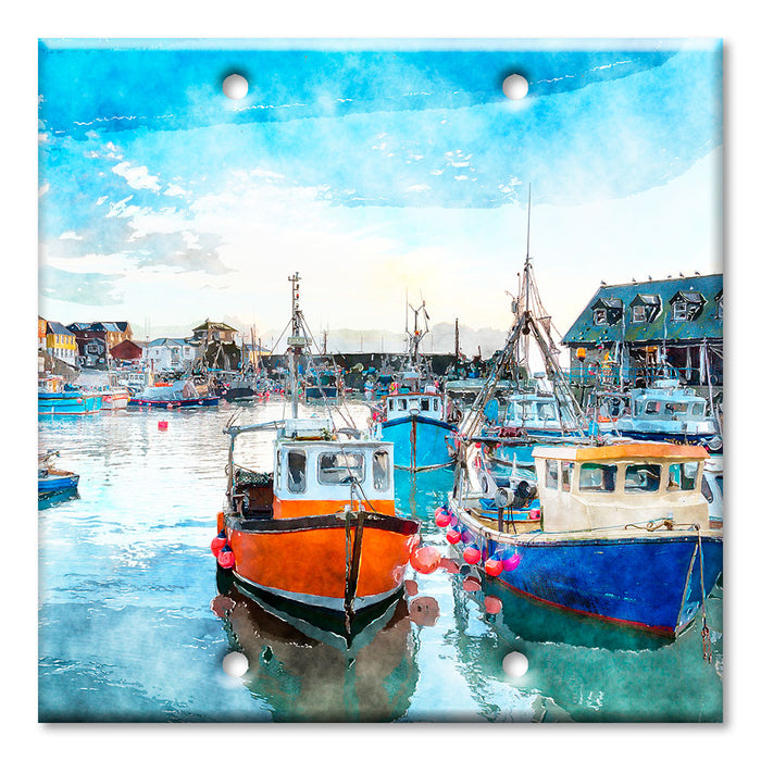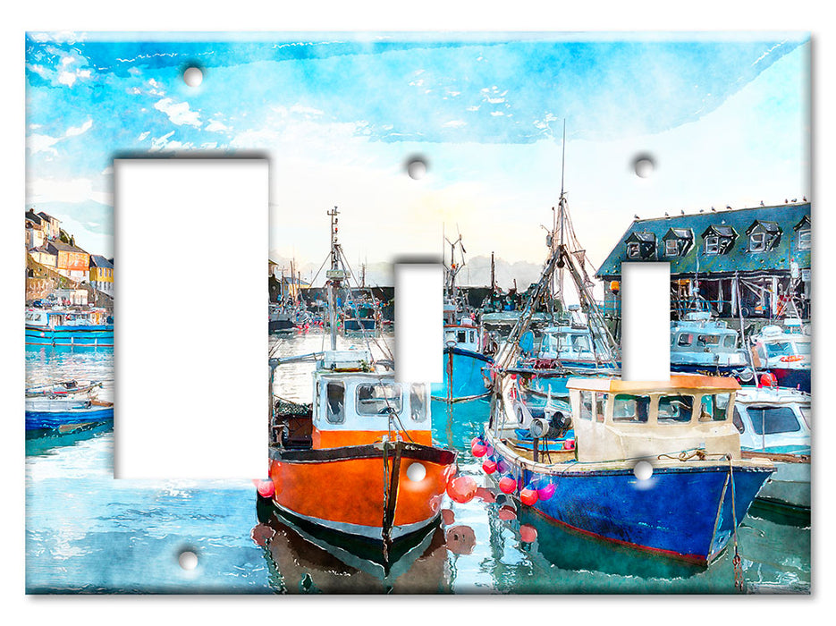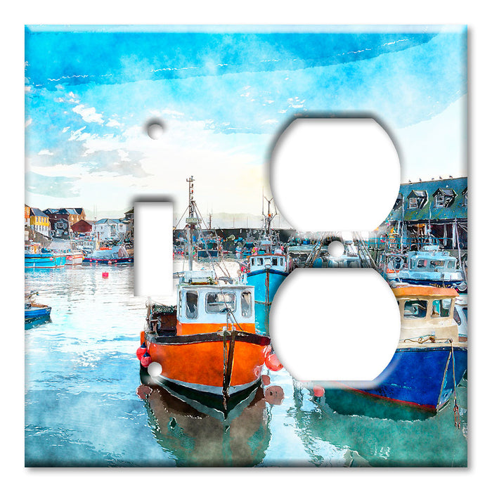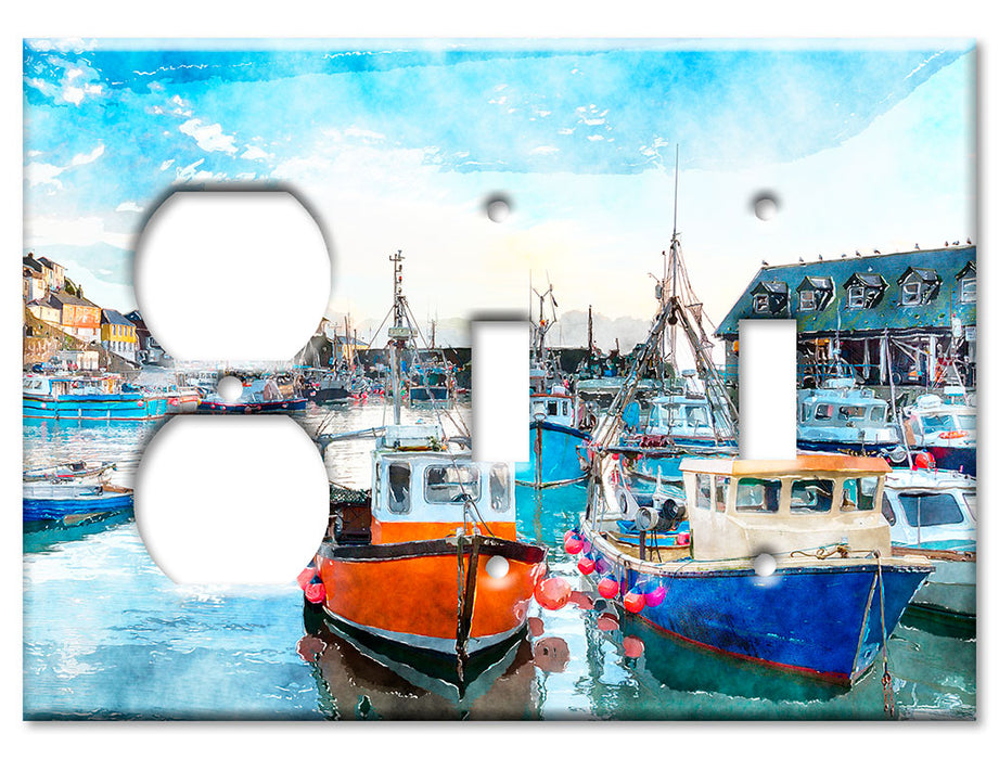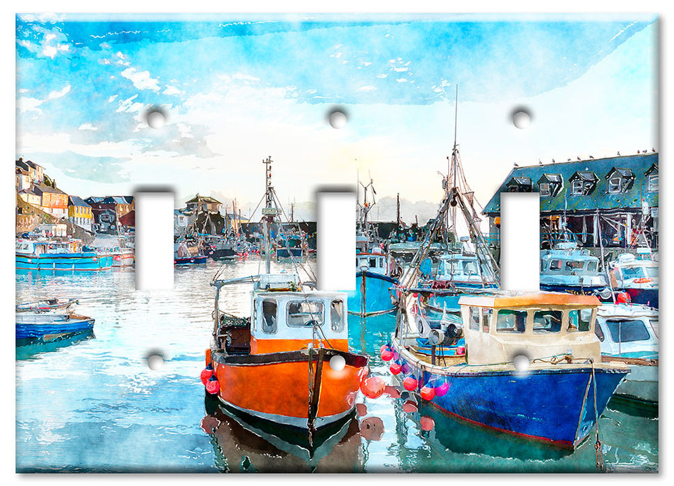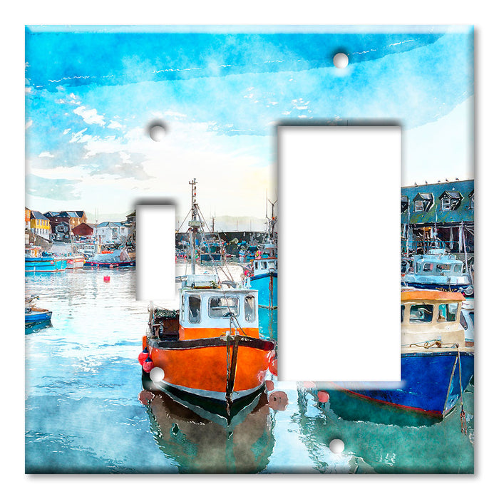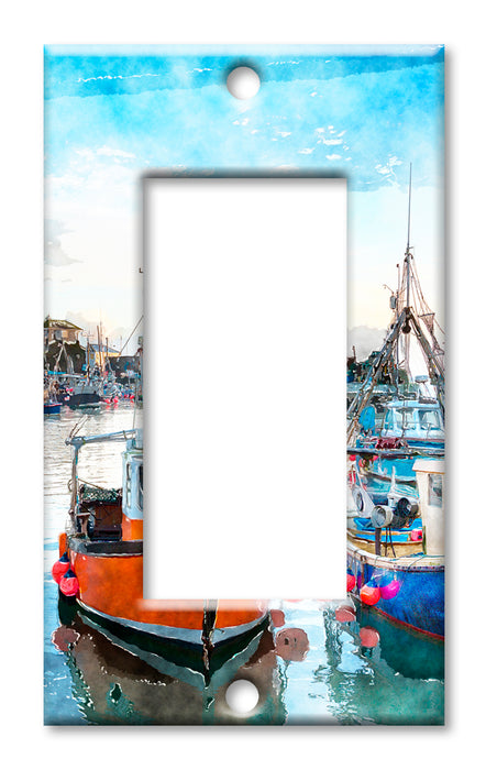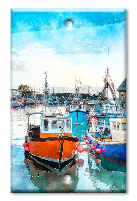 Decorative Printed Switch Plate - Electrical Switch Cover Wall Plate by Art Plates - Fishing Boats In the Bay - 1 Gang Toggle