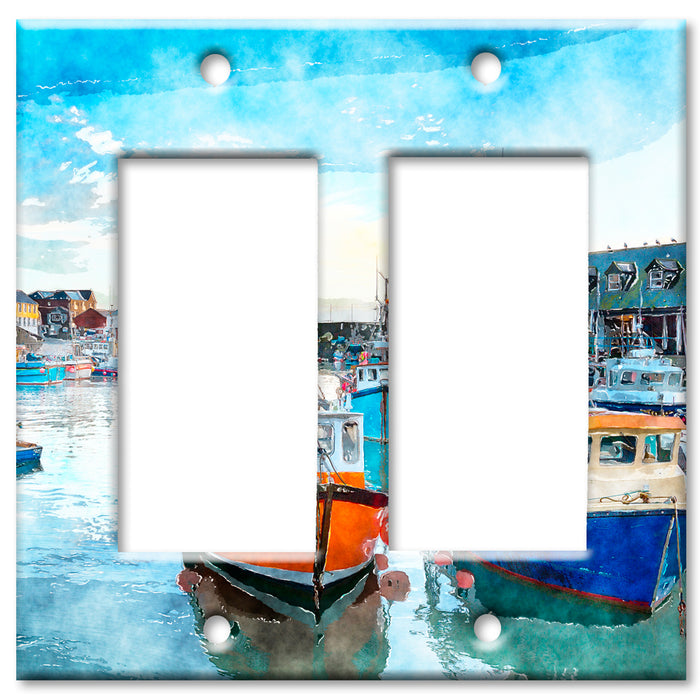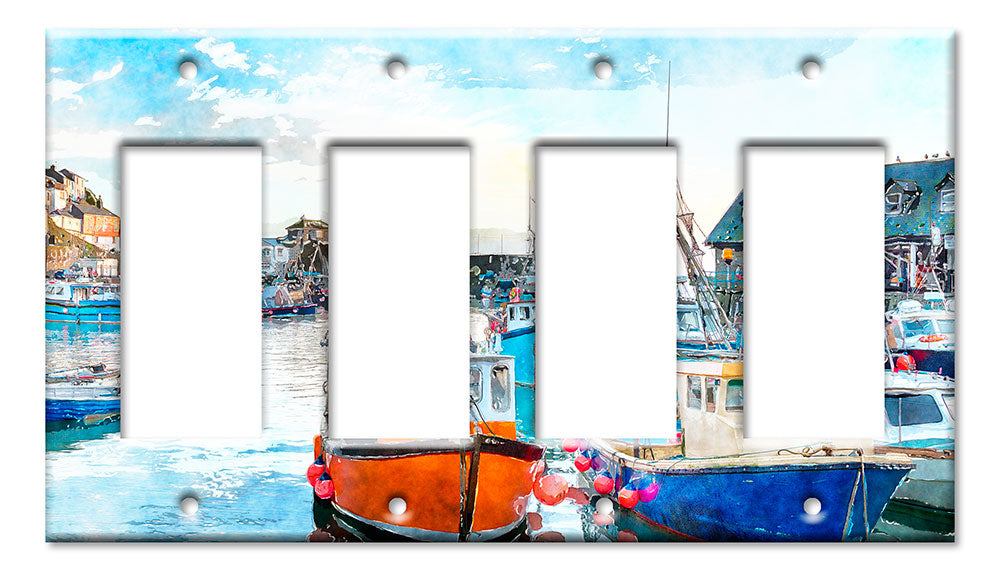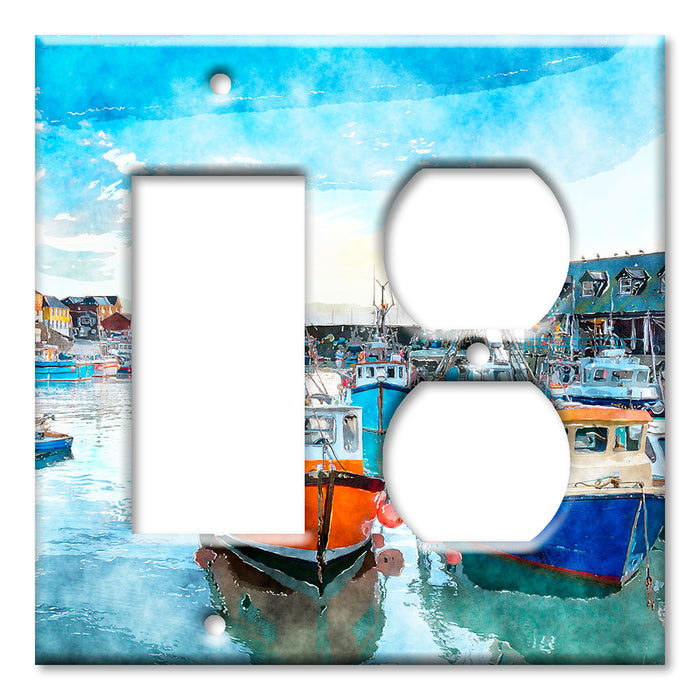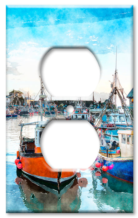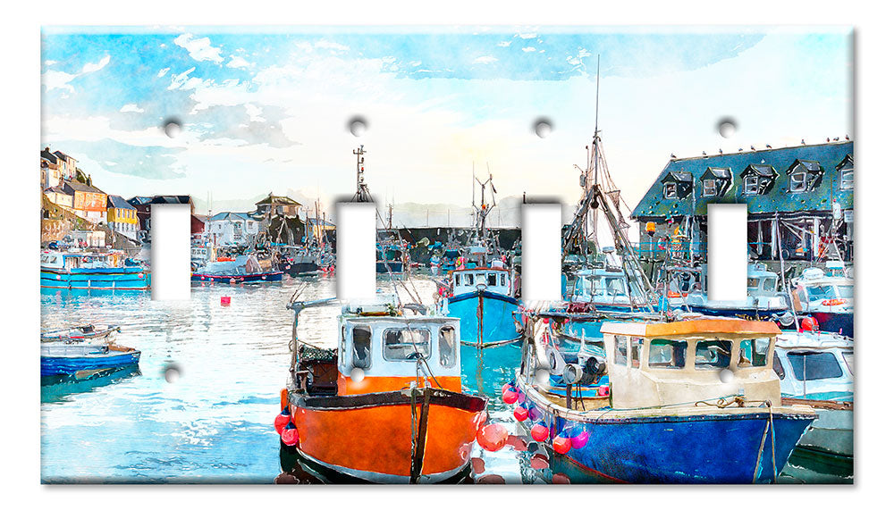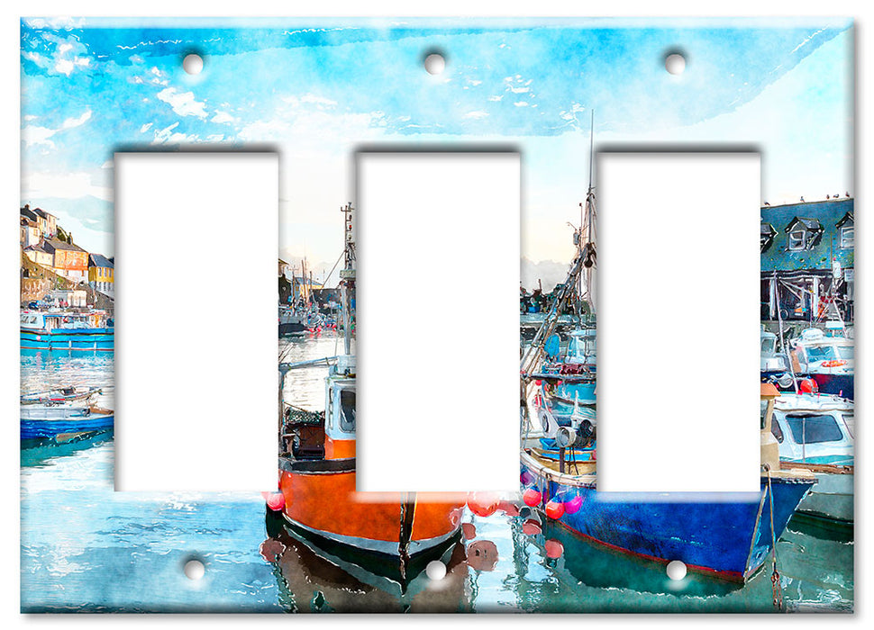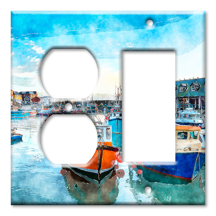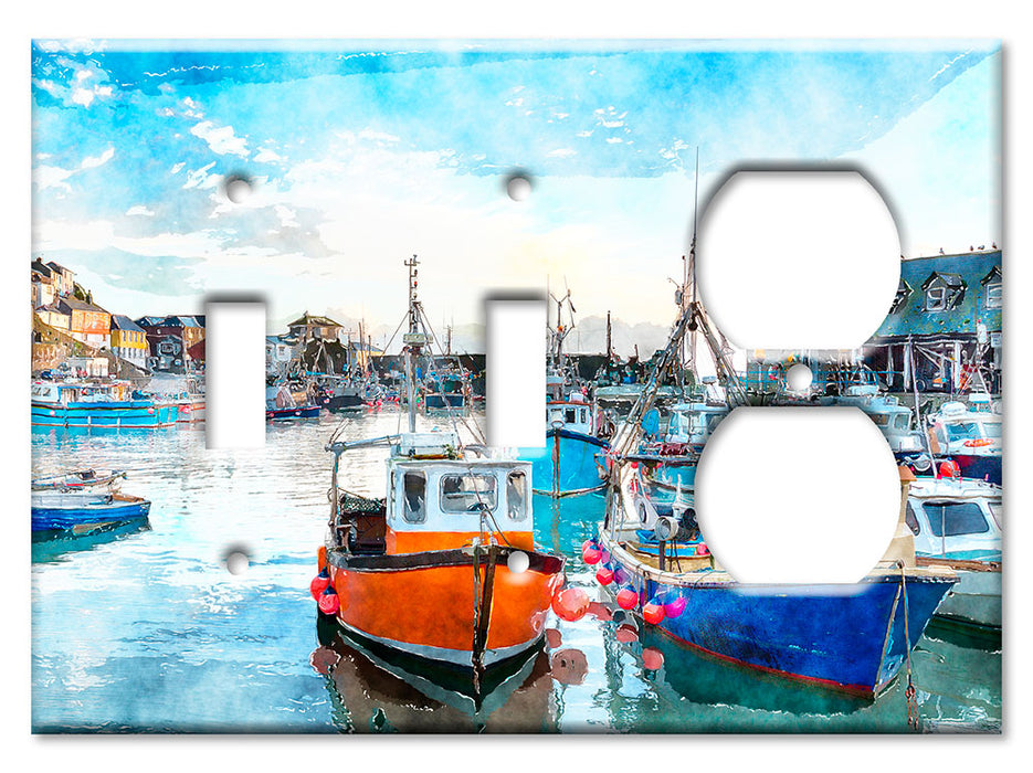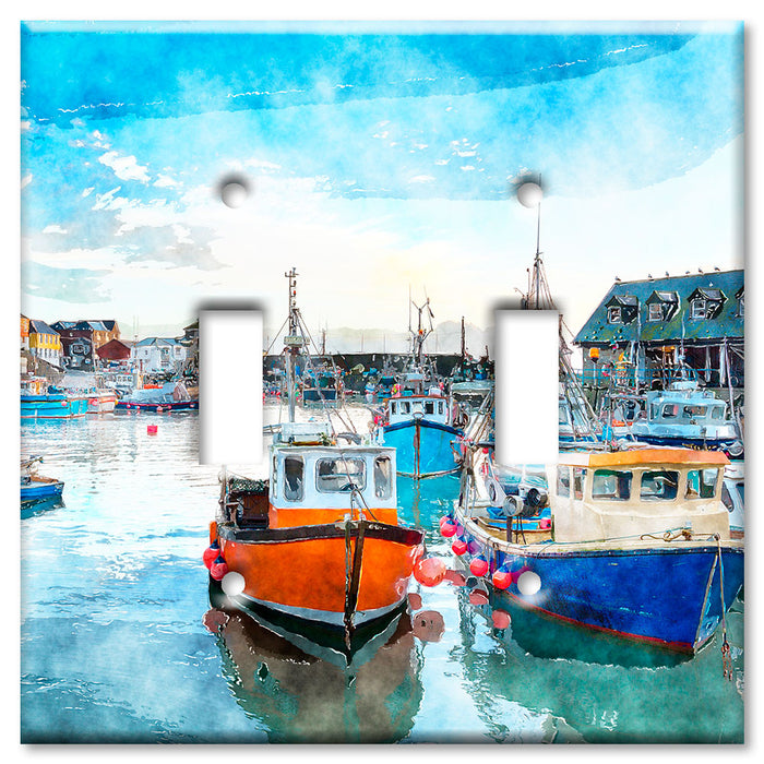 Decorative Printed Switch Plate - Electrical Switch Cover Wall Plate by Art Plates - Fishing Boats In the Bay - 1 Gang Toggle