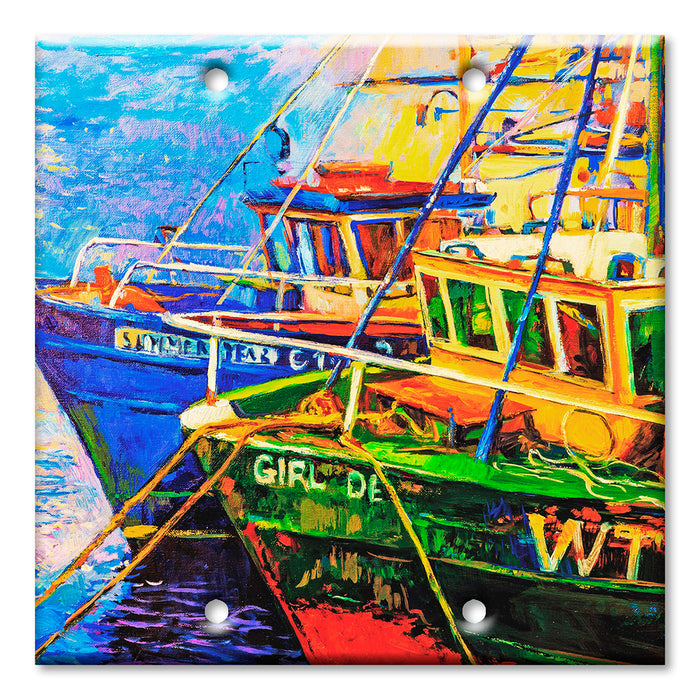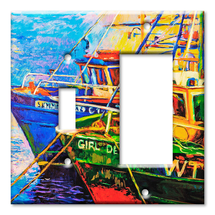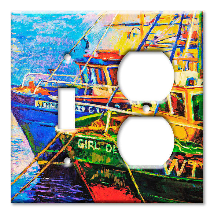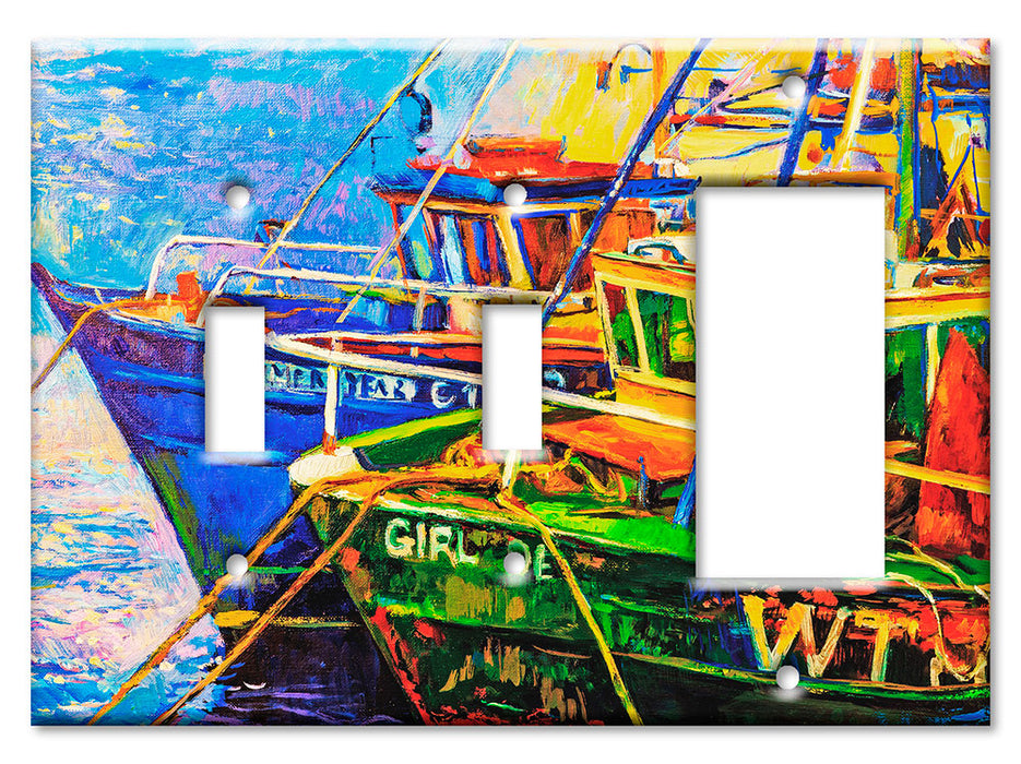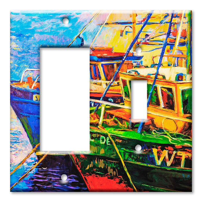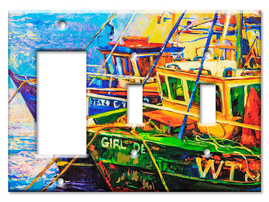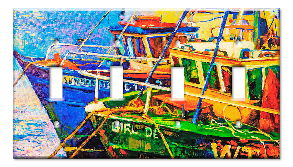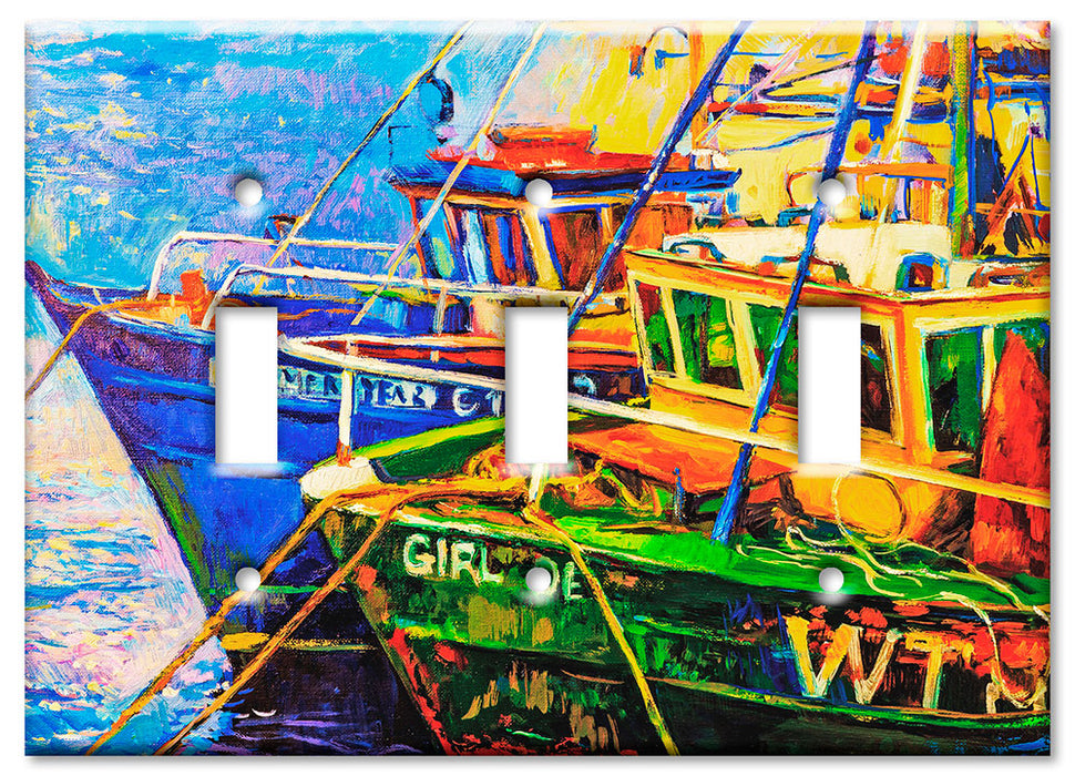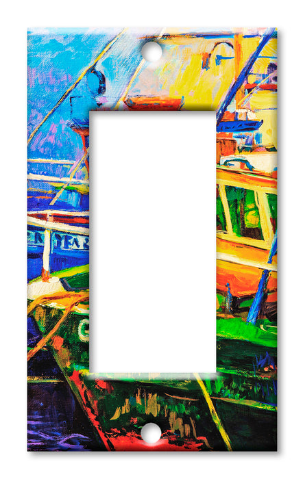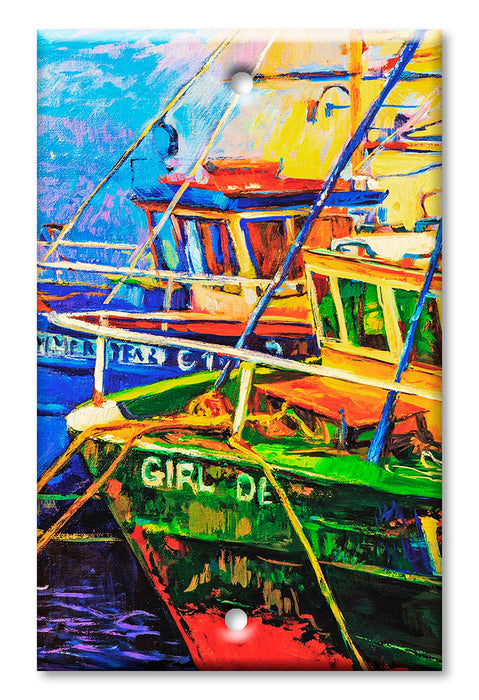Decorative Printed Switch Plate - Electrical Switch Cover Wall Plate by Art Plates - Fishing Boats Tied Up - 1 Gang Toggle
