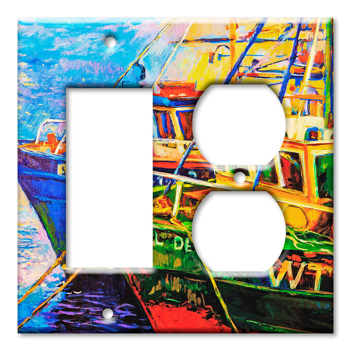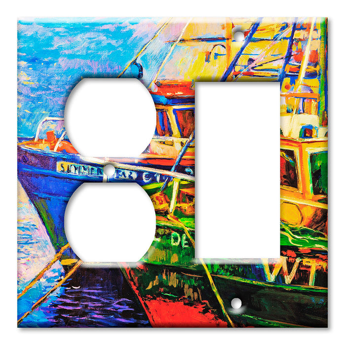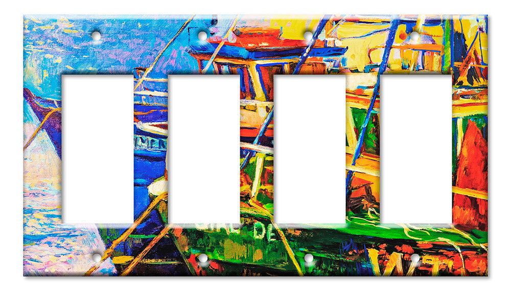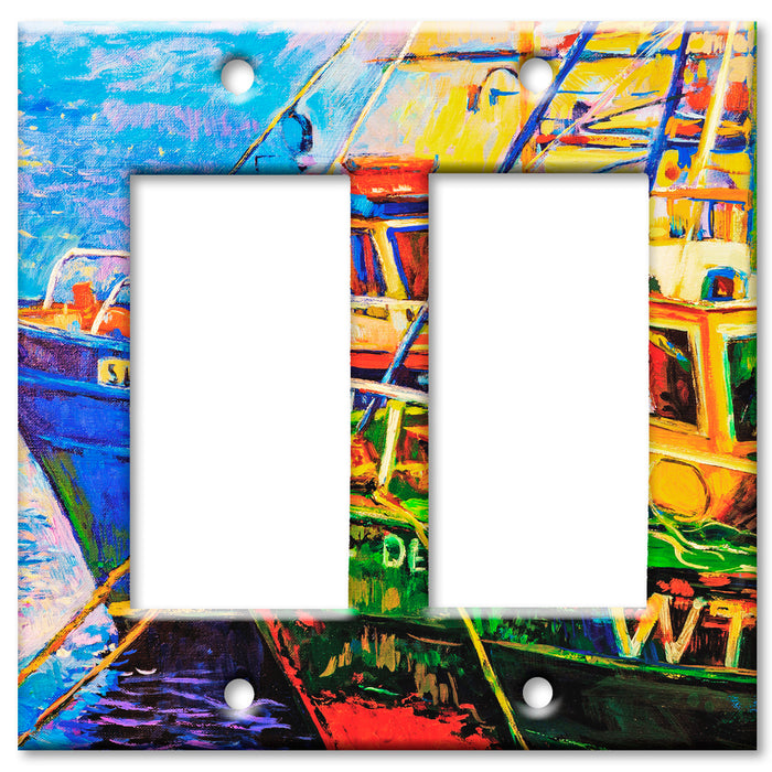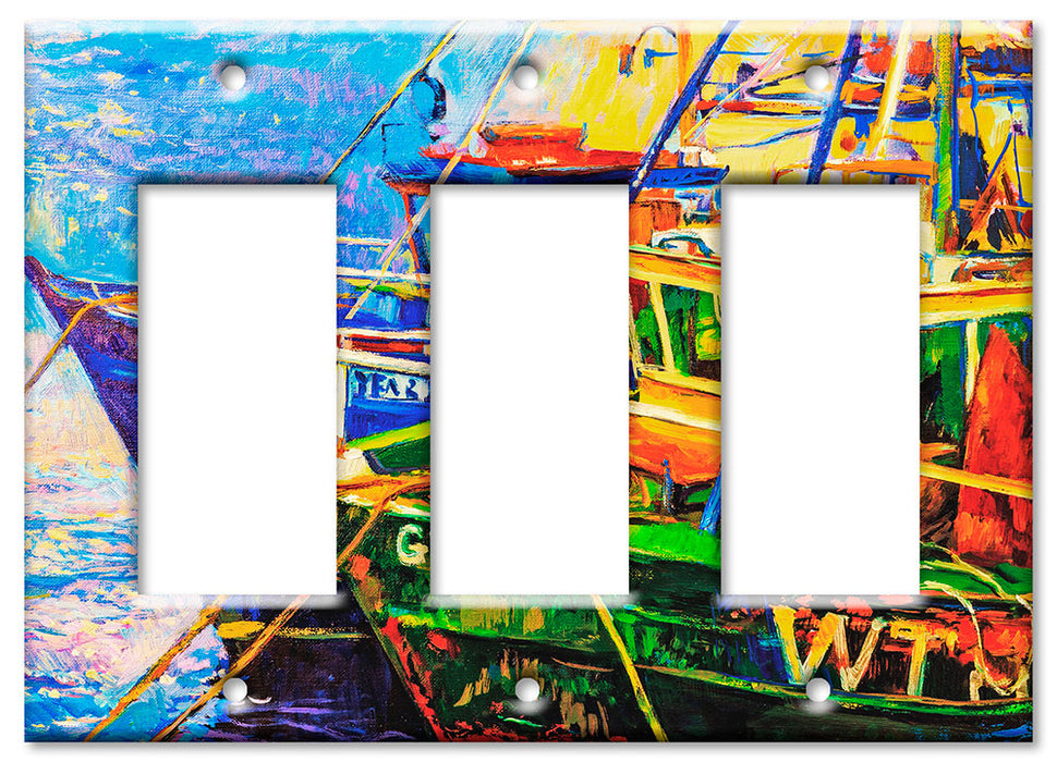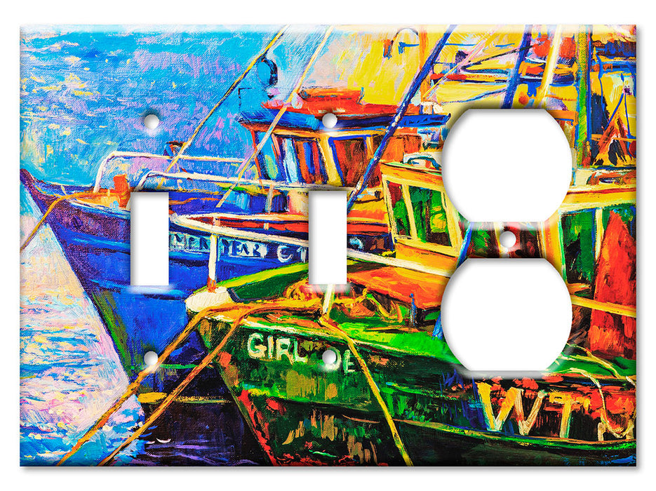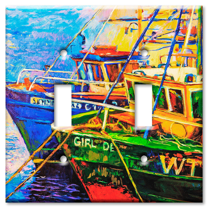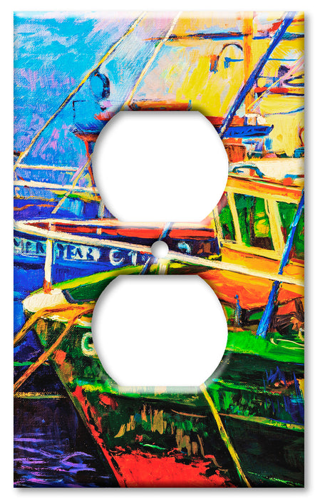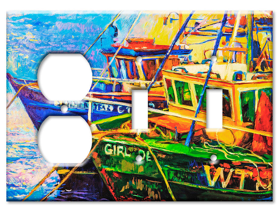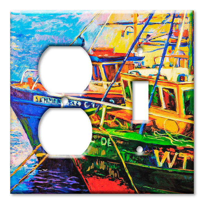 Decorative Printed Switch Plate - Electrical Switch Cover Wall Plate by Art Plates - Fishing Boats Tied Up - 1 Gang Toggle