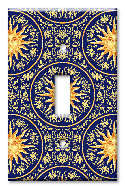 Decorative Printed Switch Plate - Electrical Switch Cover Wall Plate by Art Plates - Golden Sun with Blue Background