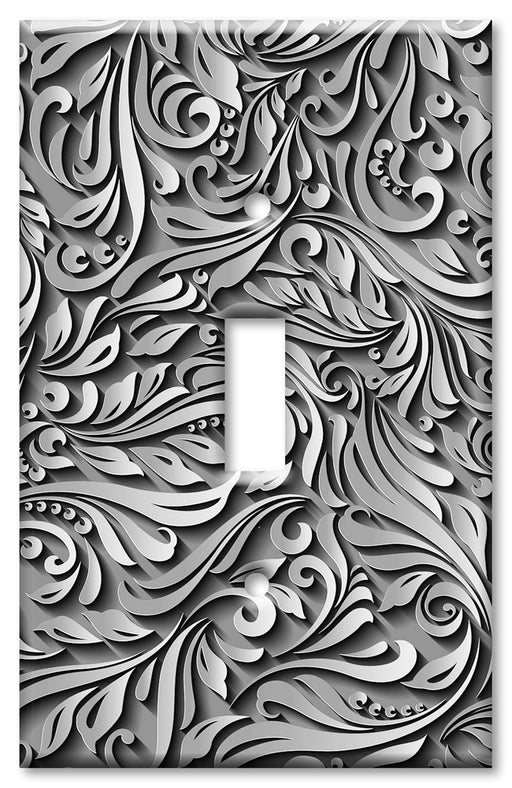 Decorative Printed Switch Plate - Electrical Switch Cover Wall Plate by Art Plates - Grey Scroll Print